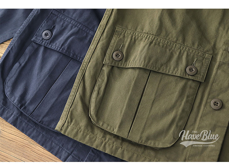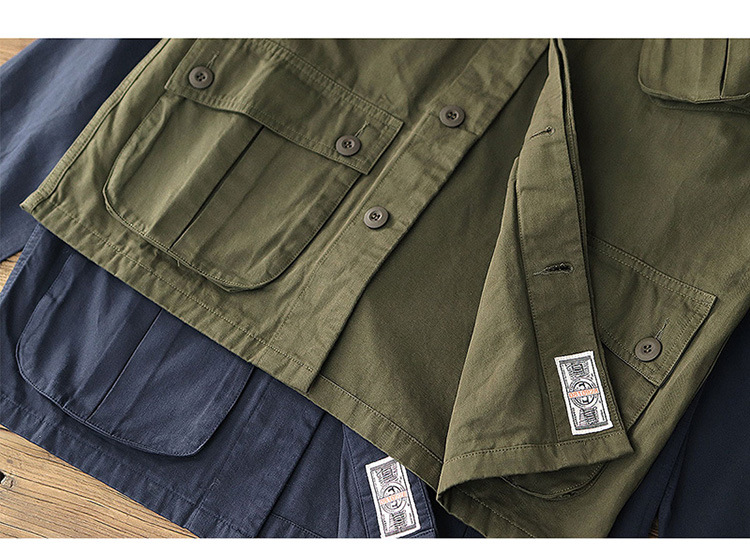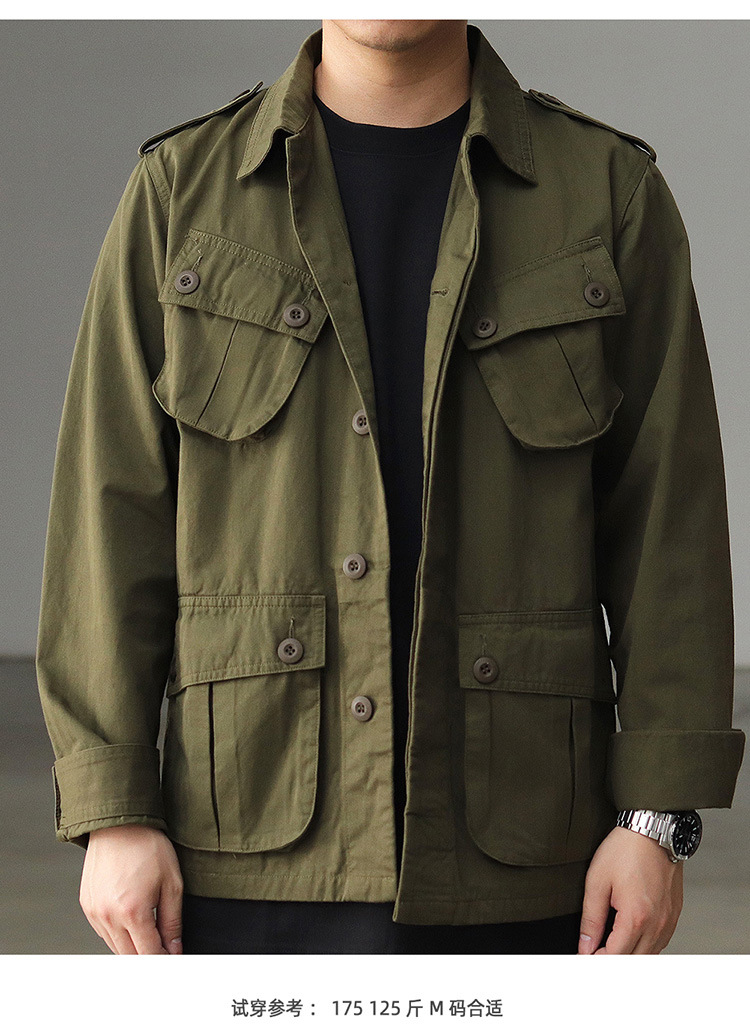 Ami Kaji 제 2 차 세계 대전 정글 재킷 남자 봄과 가을 미국 빈티지 카키 멀티 포켓 작업 재킷