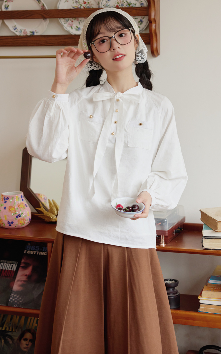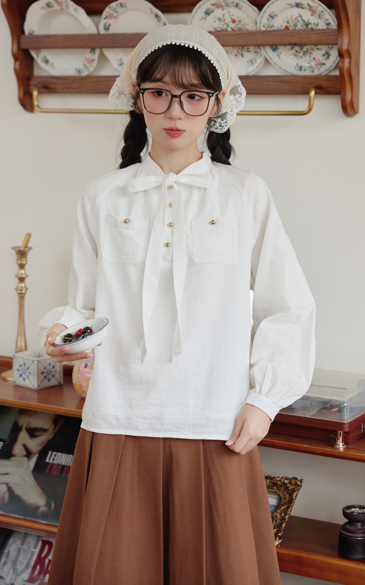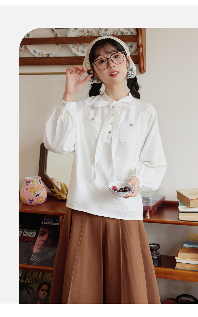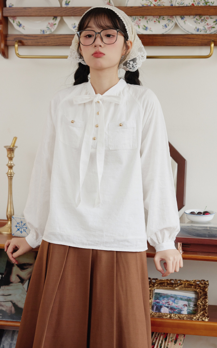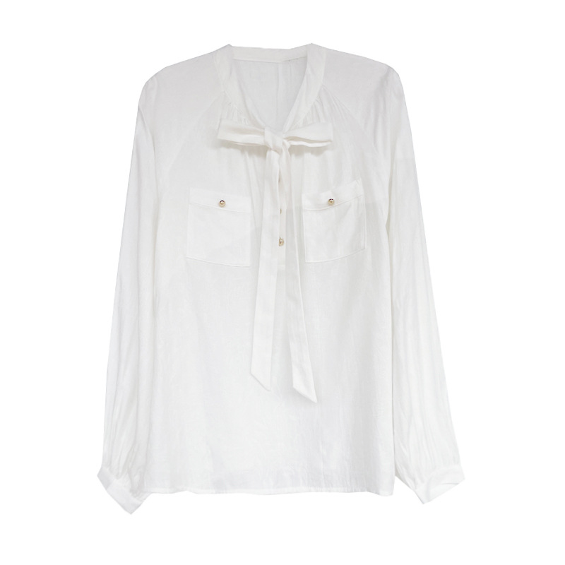 2025 년 초 봄 새로운 프랑스 스타일 우아한 부동 Led 주름 디자인 작은 금 버클 풀오버 긴 소매 흰색 셔츠스토어 가기