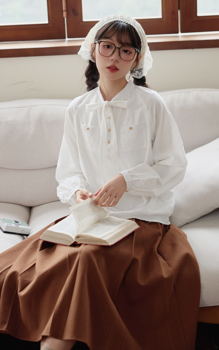 2025 년 초 봄 새로운 프랑스 스타일 우아한 부동 Led 주름 디자인 작은 금 버클 풀오버 긴 소매 흰색 셔츠