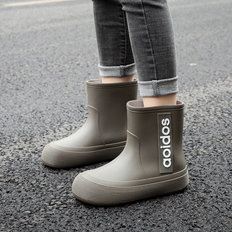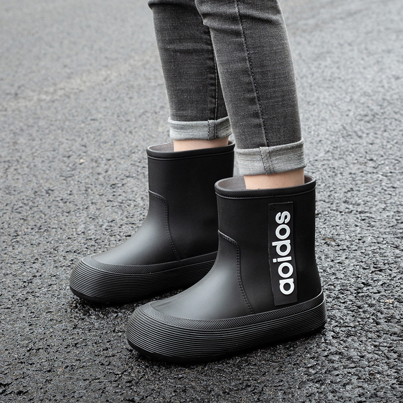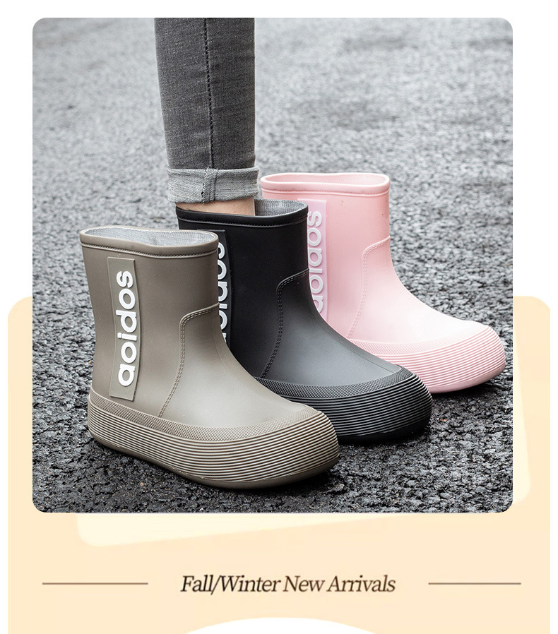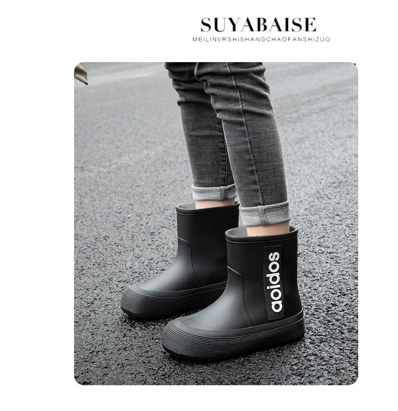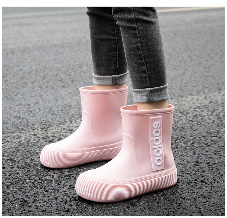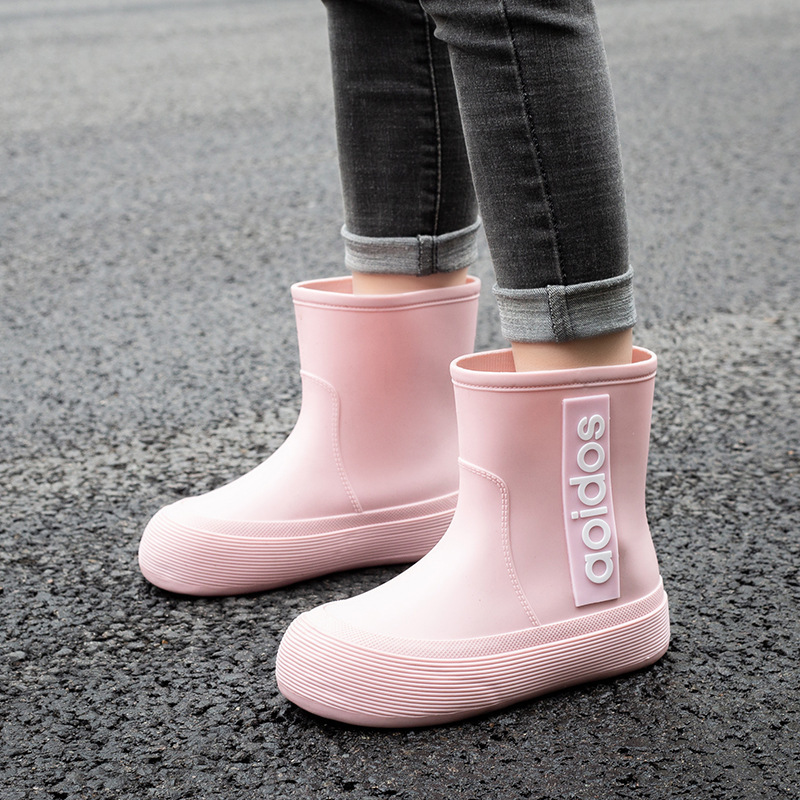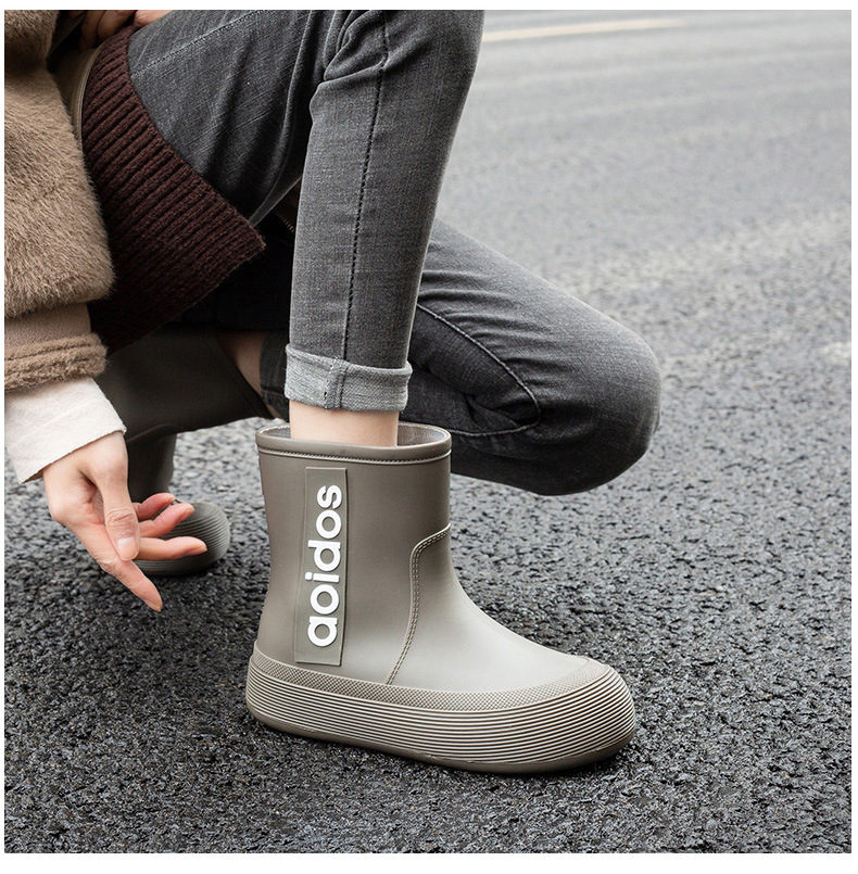 여성 성인 새 국경 한국식 미드 튜브 방수 미끄럼 방지 장화 사계절 외부 착용 주방 작업 신발 고무 신발