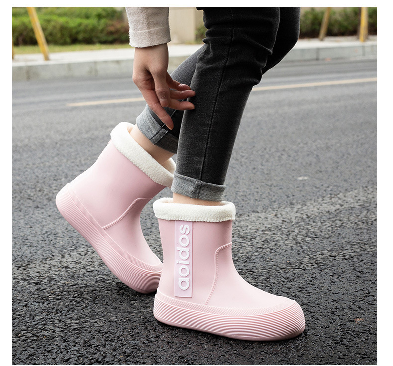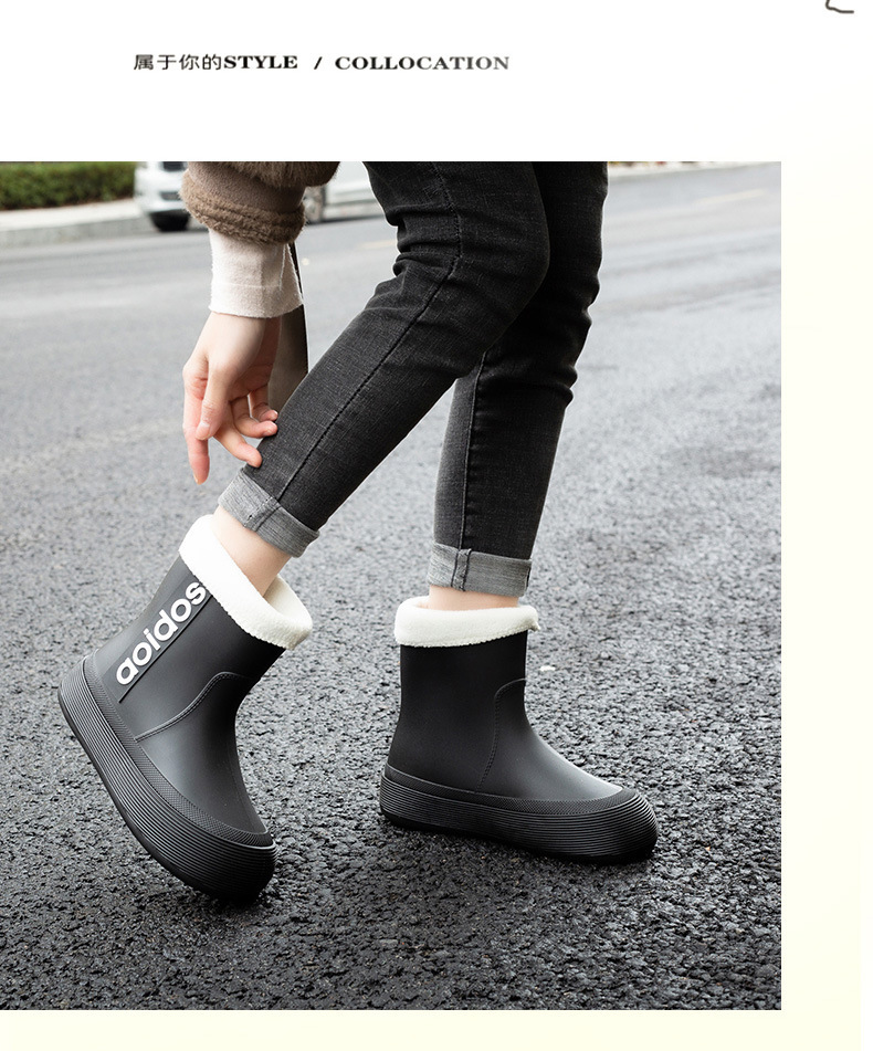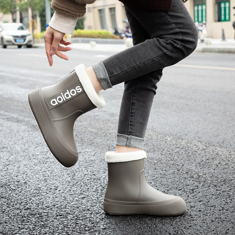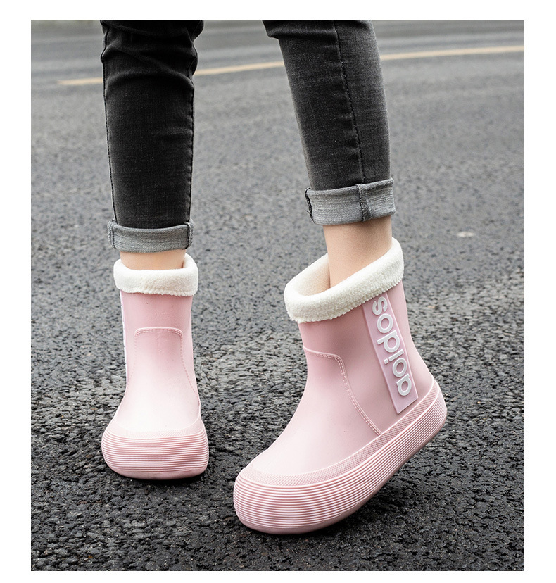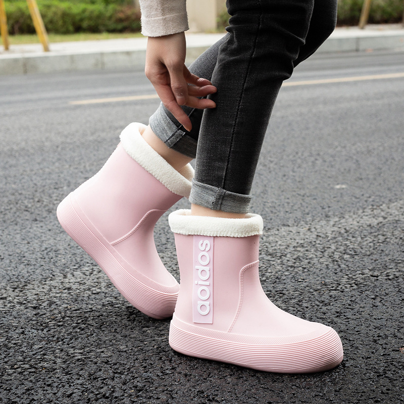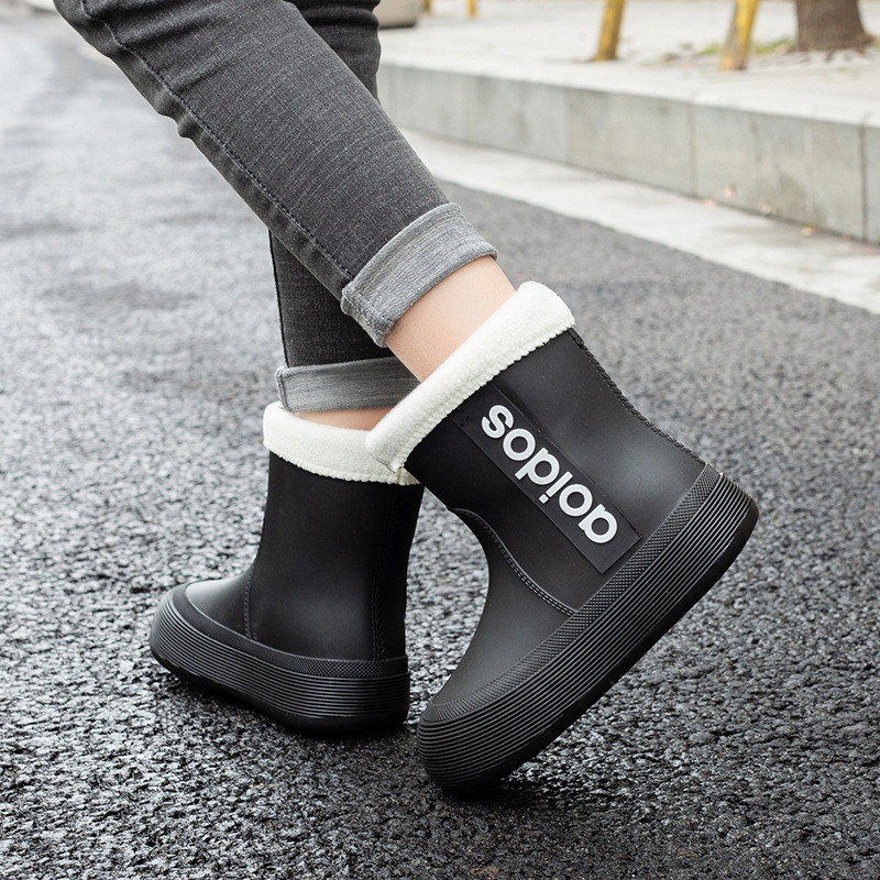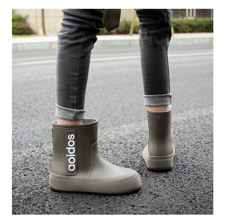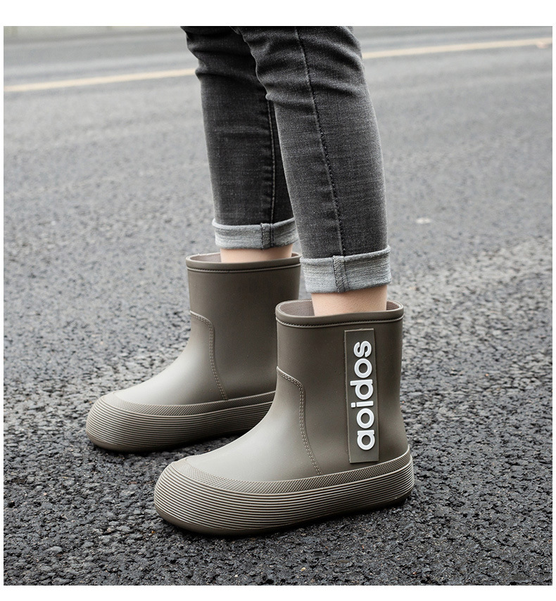 여성 성인 새 국경 한국식 미드 튜브 방수 미끄럼 방지 장화 사계절 외부 착용 주방 작업 신발 고무 신발