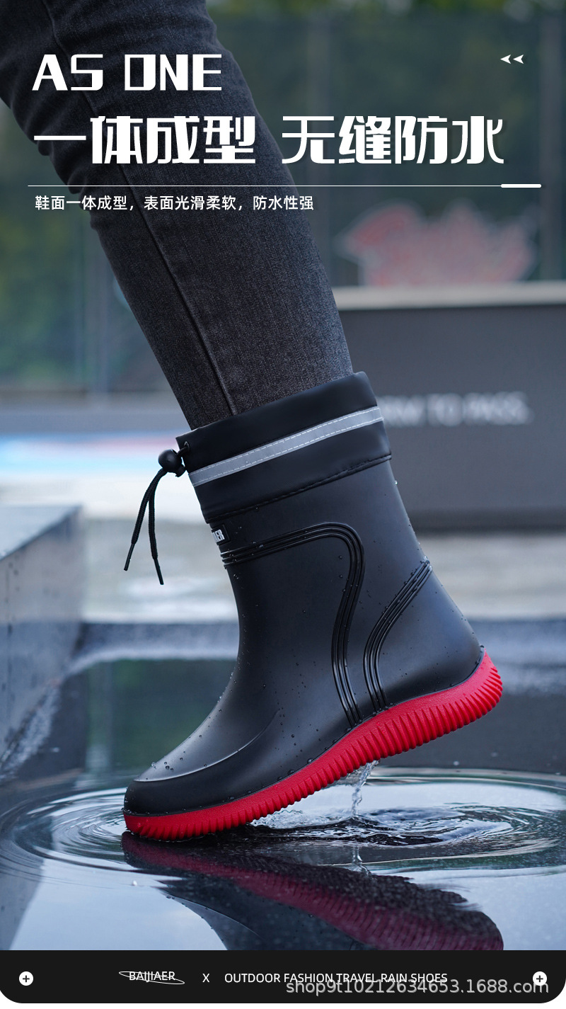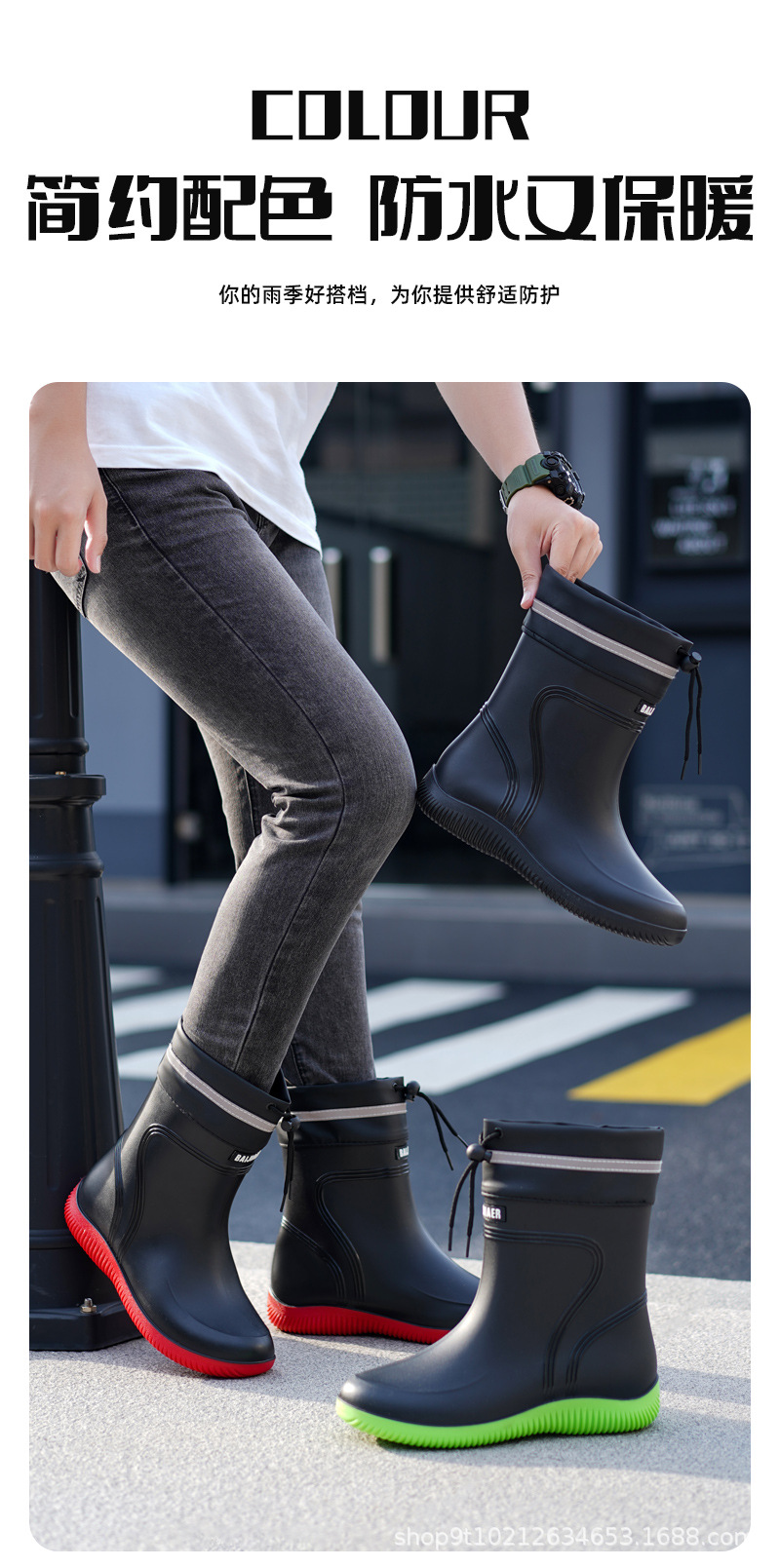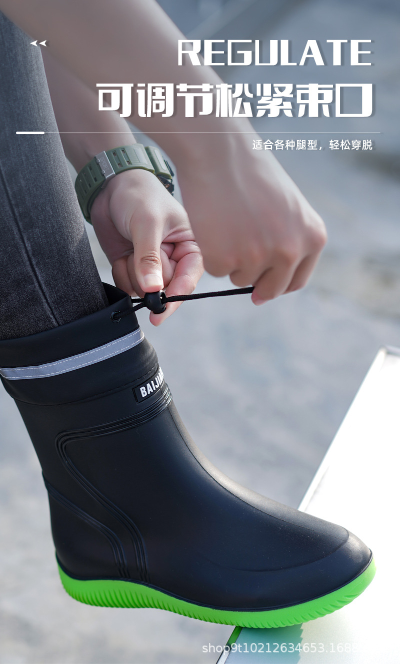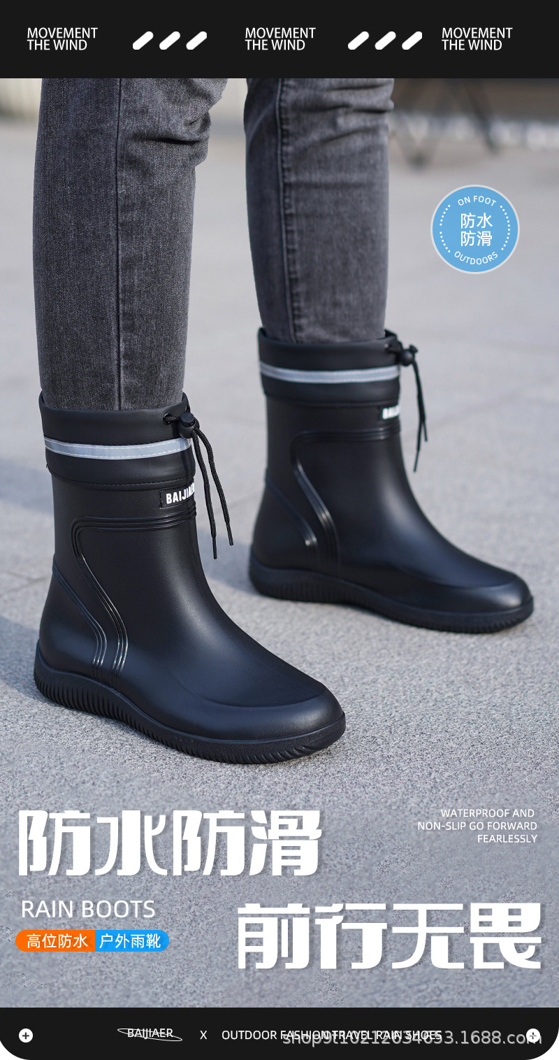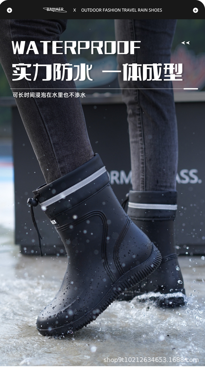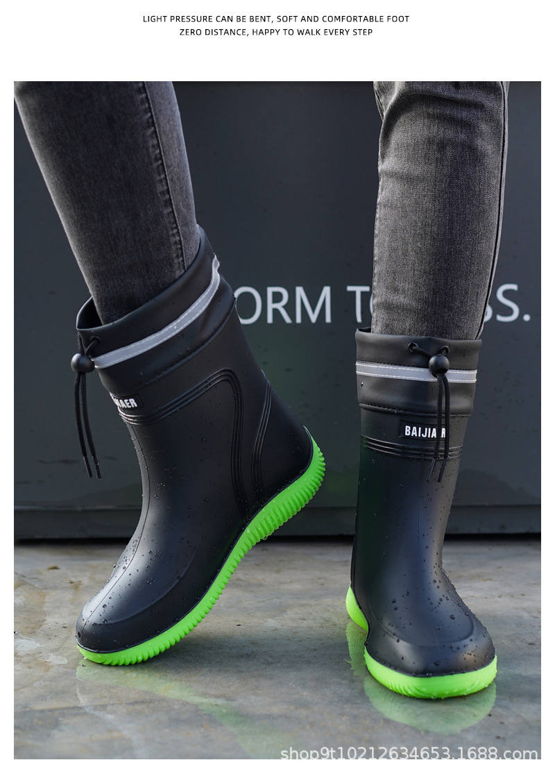 비 부츠 남자의 새로운 스타일 방수 신발 중간 튜브 미끄럼 비 장화 거들 워터 부츠 작업 고무 신발 남성용스토어 가기