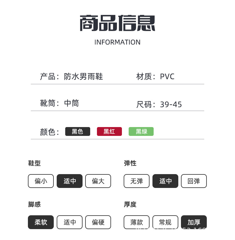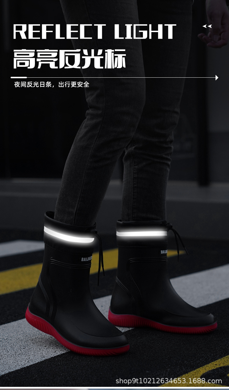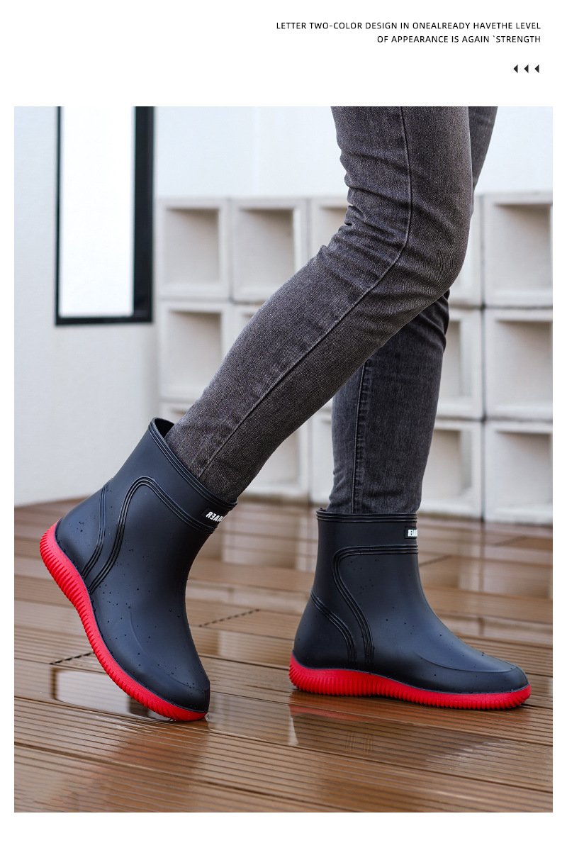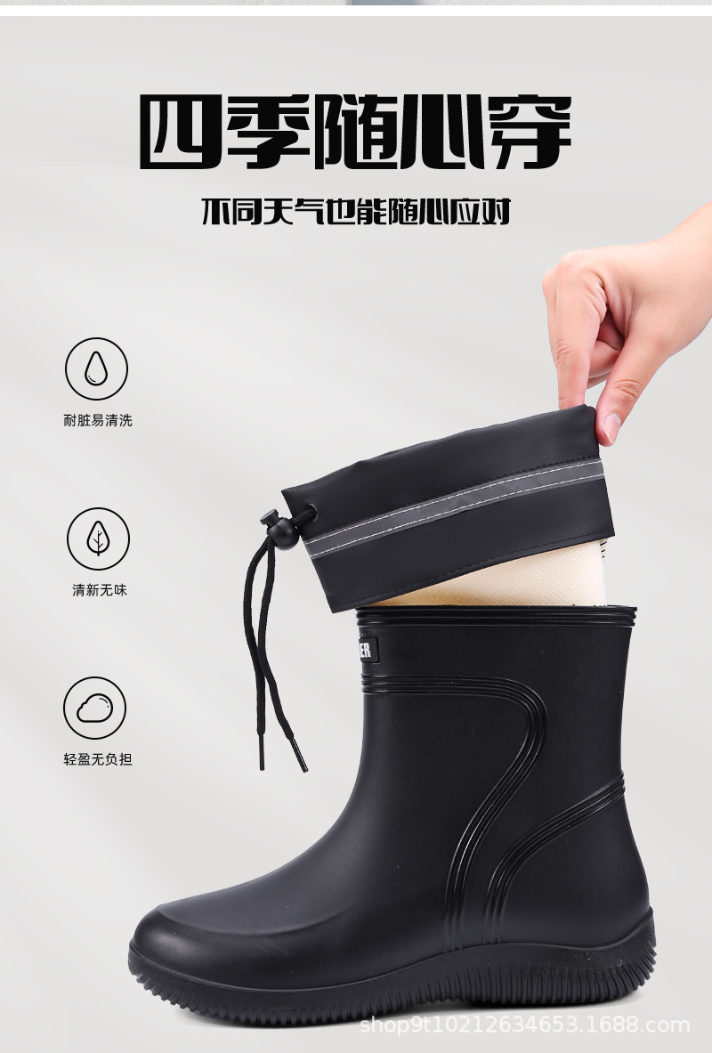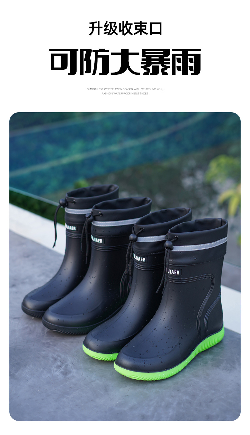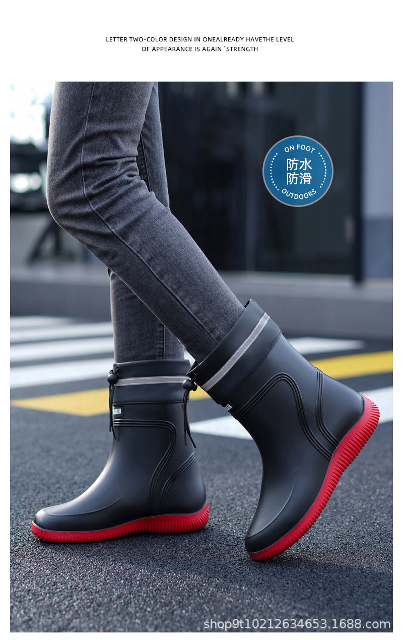 비 부츠 남자의 새로운 스타일 방수 신발 중간 튜브 미끄럼 비 장화 거들 워터 부츠 작업 고무 신발 남성용스토어 가기