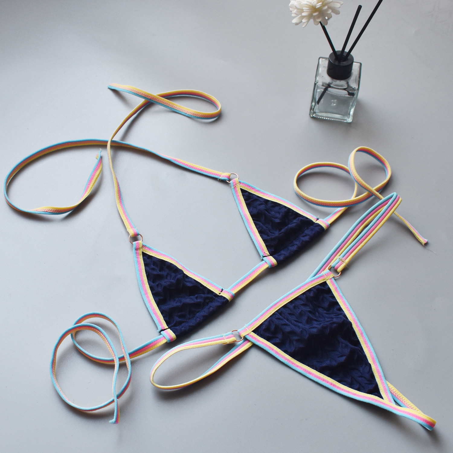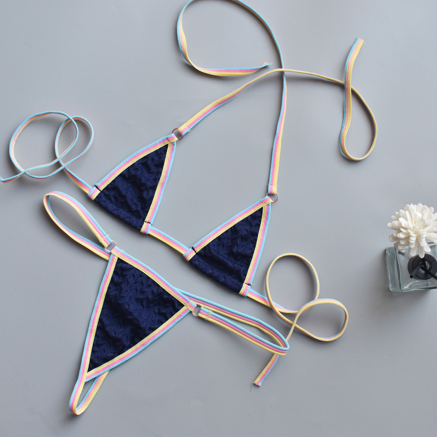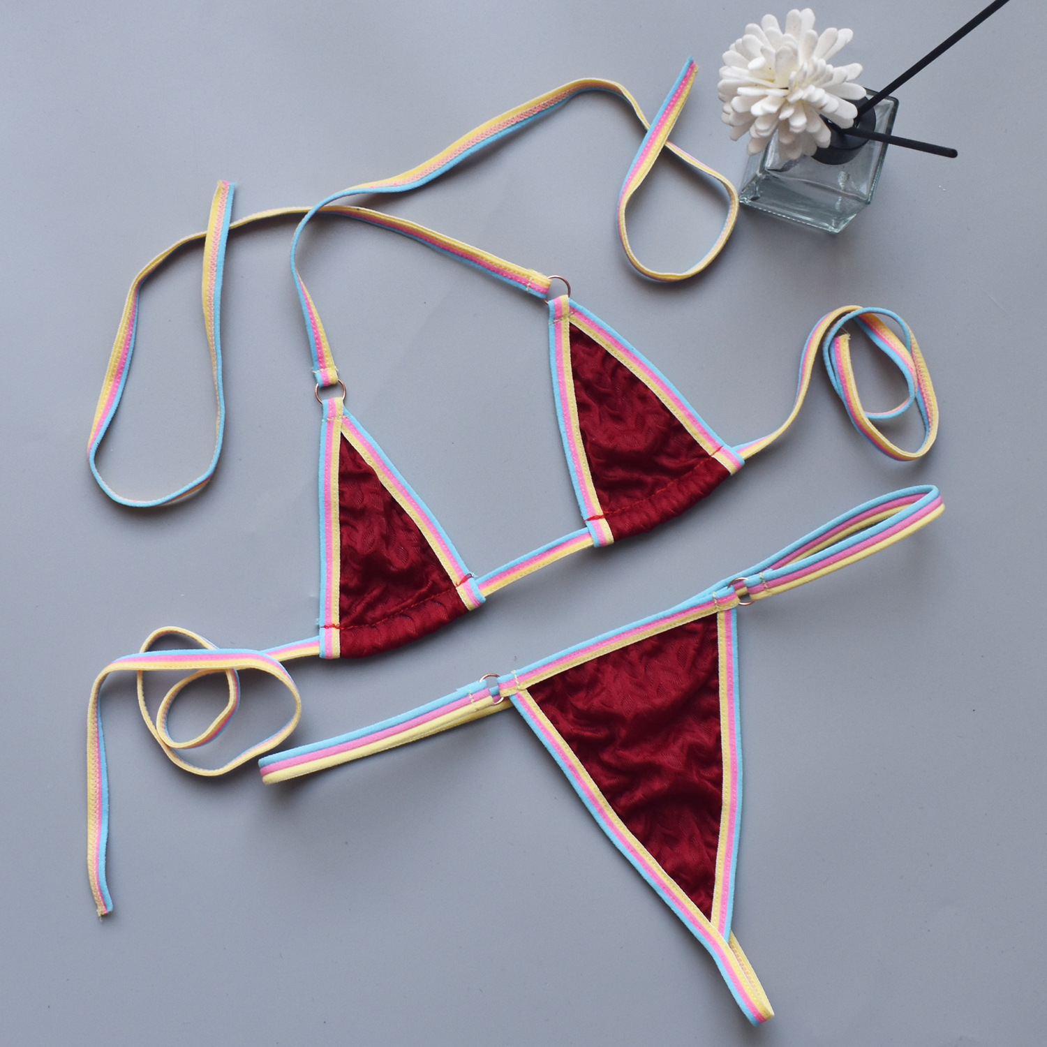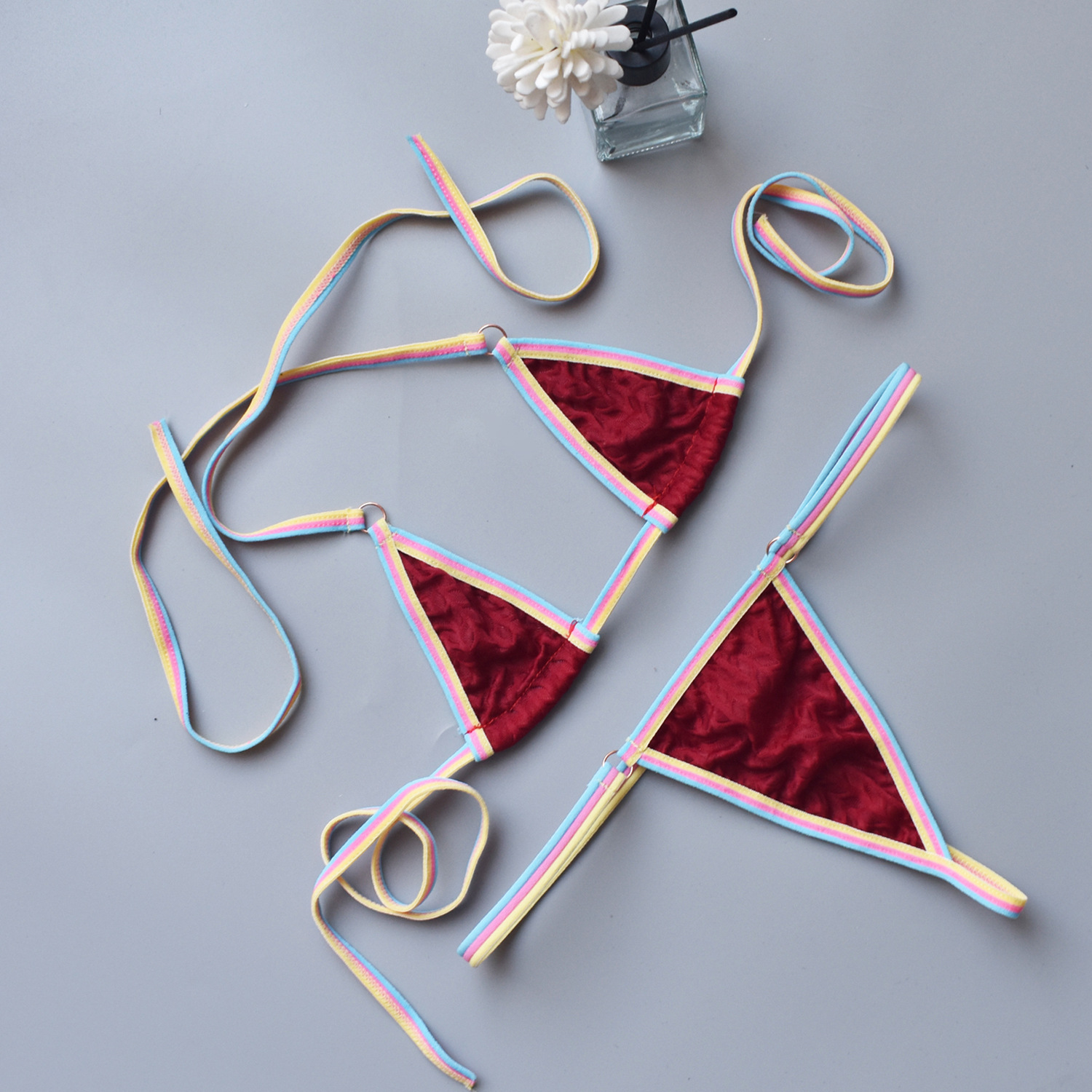 국경 간 섹시한 속옷 속옷 세트 낮은 허리 끈 3 점 여성의 재미 매달려 목 비키니 V013