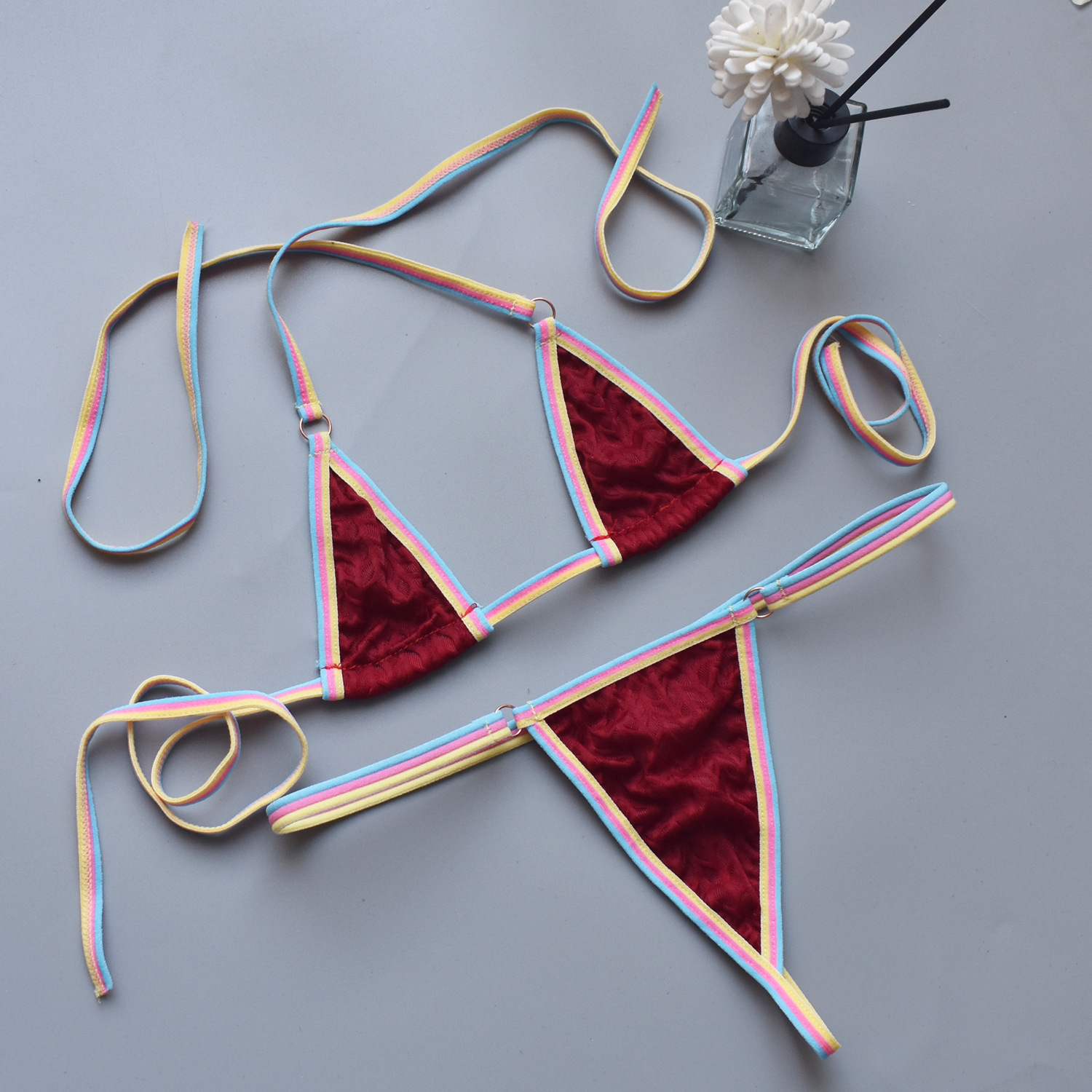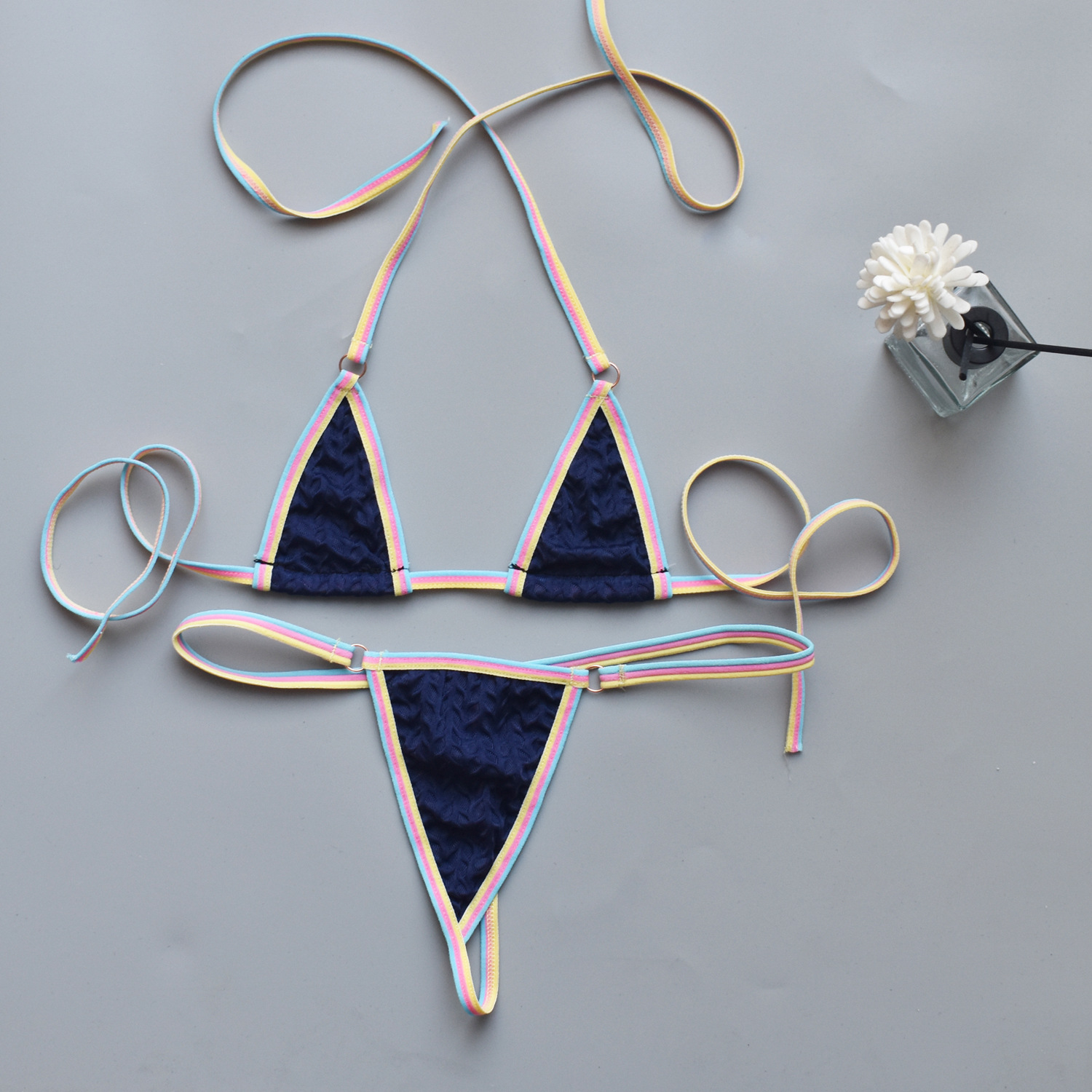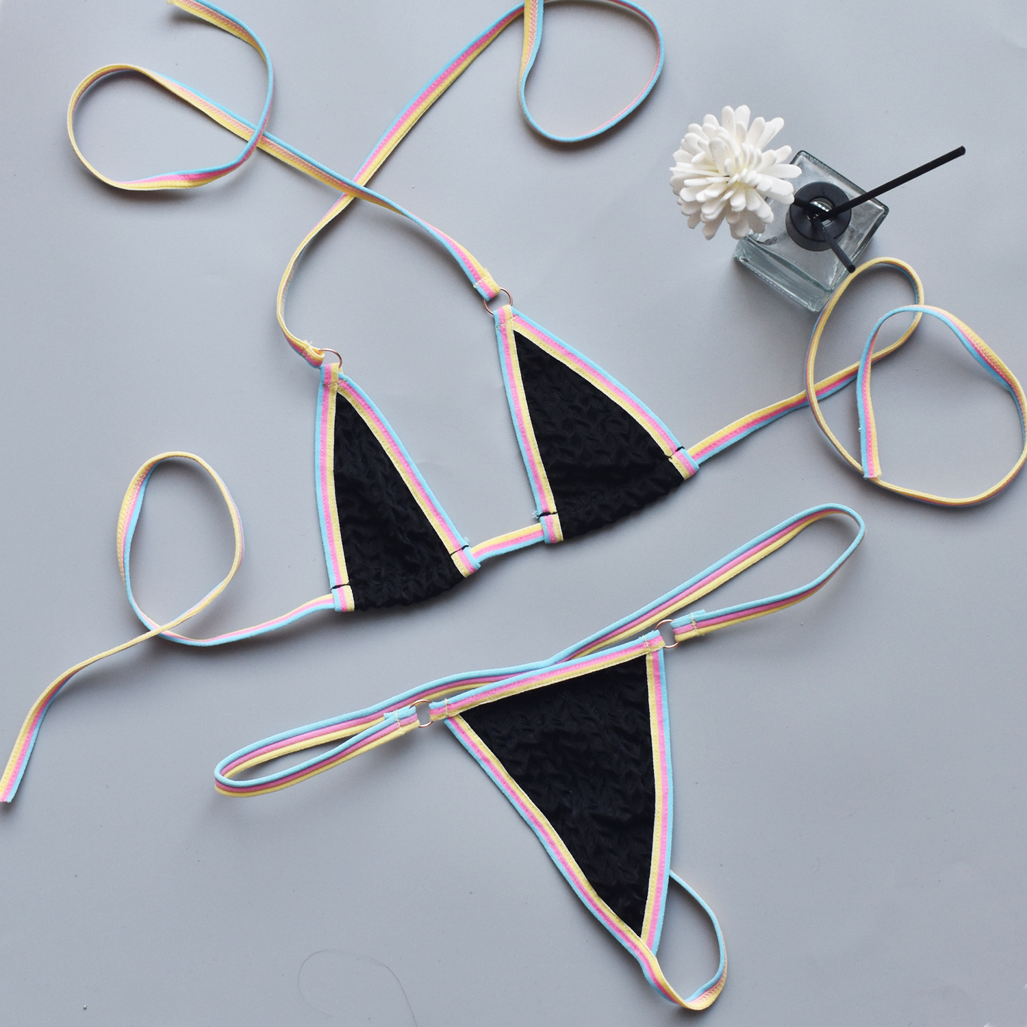 국경 간 섹시한 속옷 속옷 세트 낮은 허리 끈 3 점 여성의 재미 매달려 목 비키니 V013