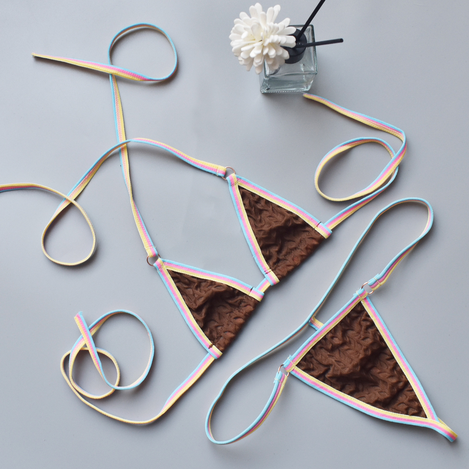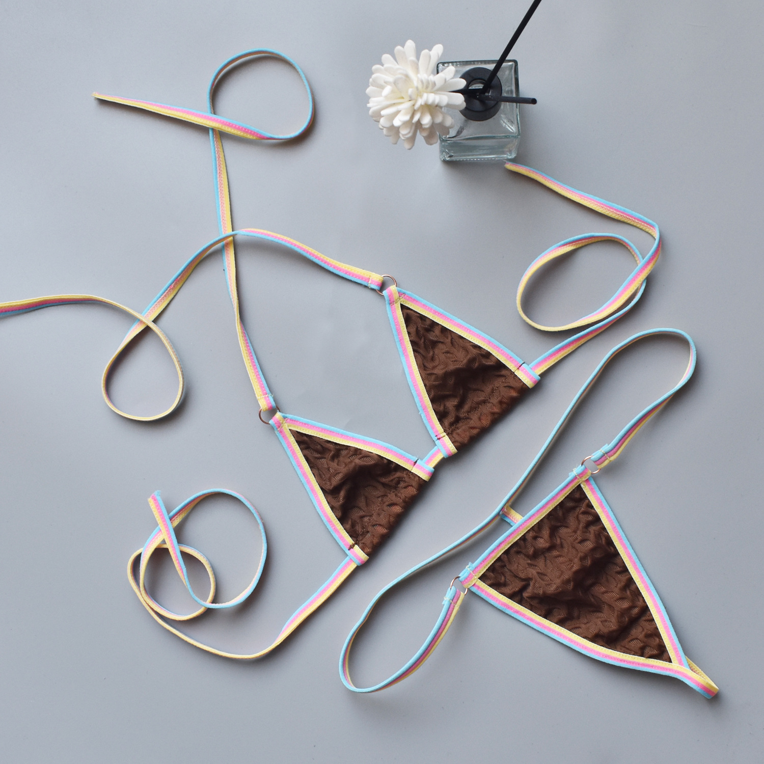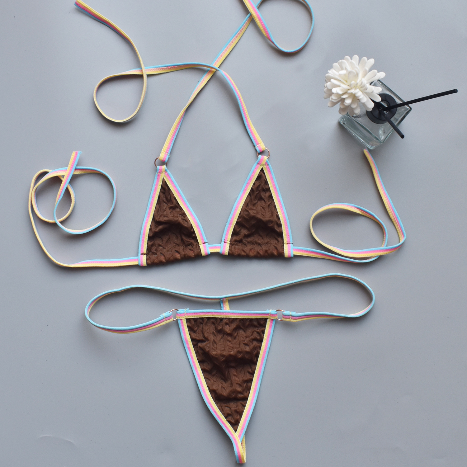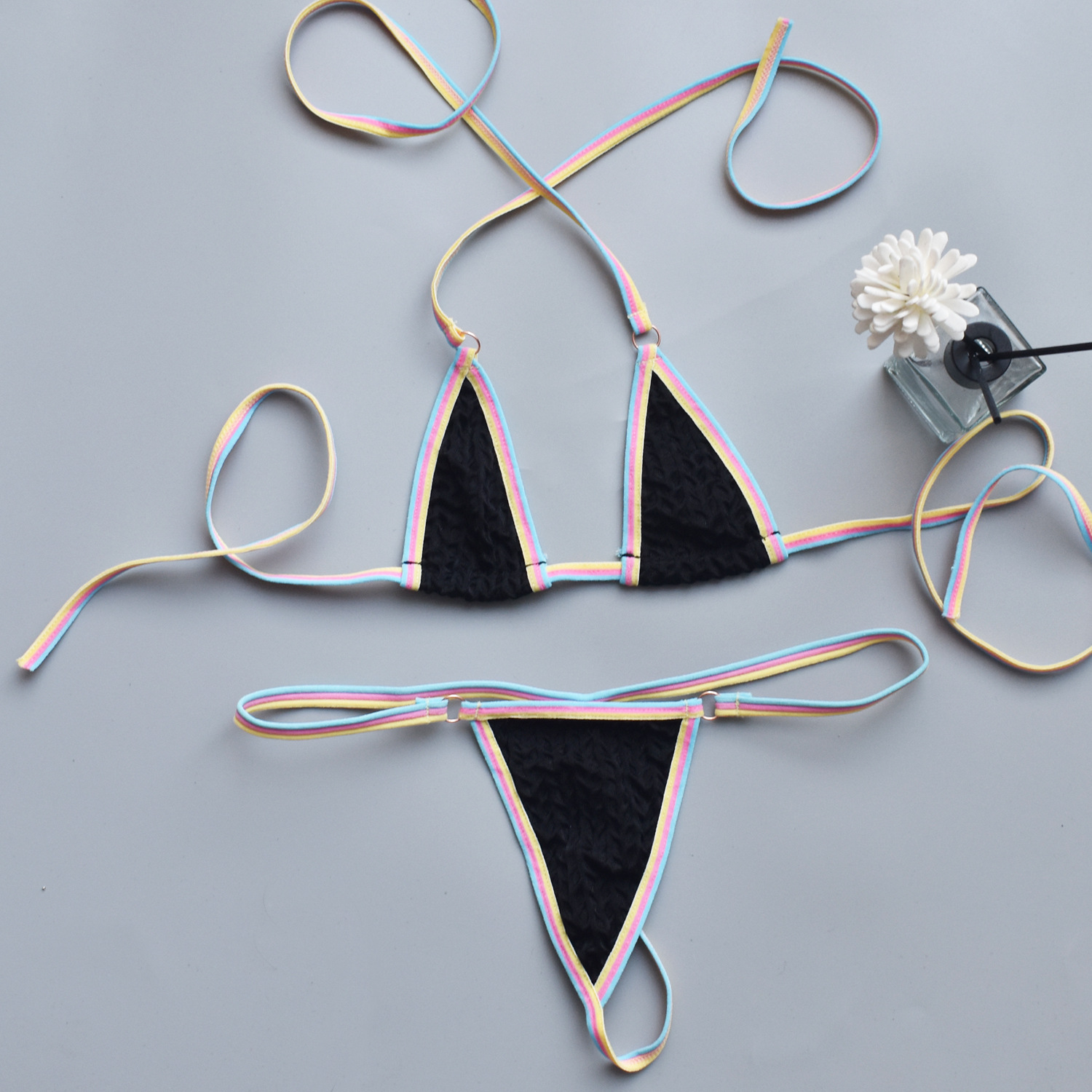 국경 간 섹시한 속옷 속옷 세트 낮은 허리 끈 3 점 여성의 재미 매달려 목 비키니 V013