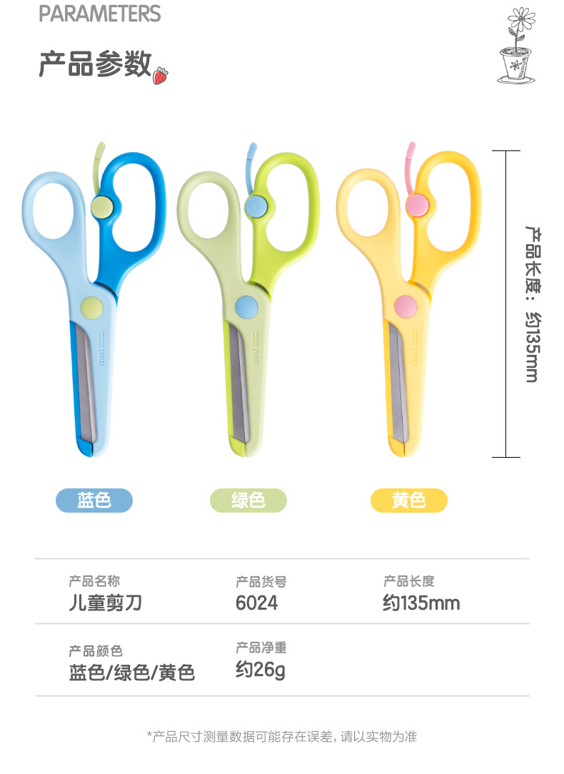 델리 어린이 가위 둥근 머리 안전 손으로 자른 작은 가위 초등학생은 손을 다치지 않습니다 유치원 문구 가위스토어 가기