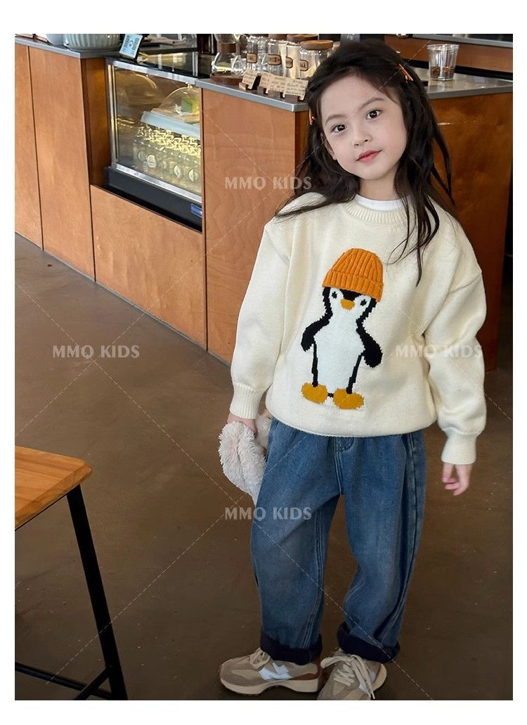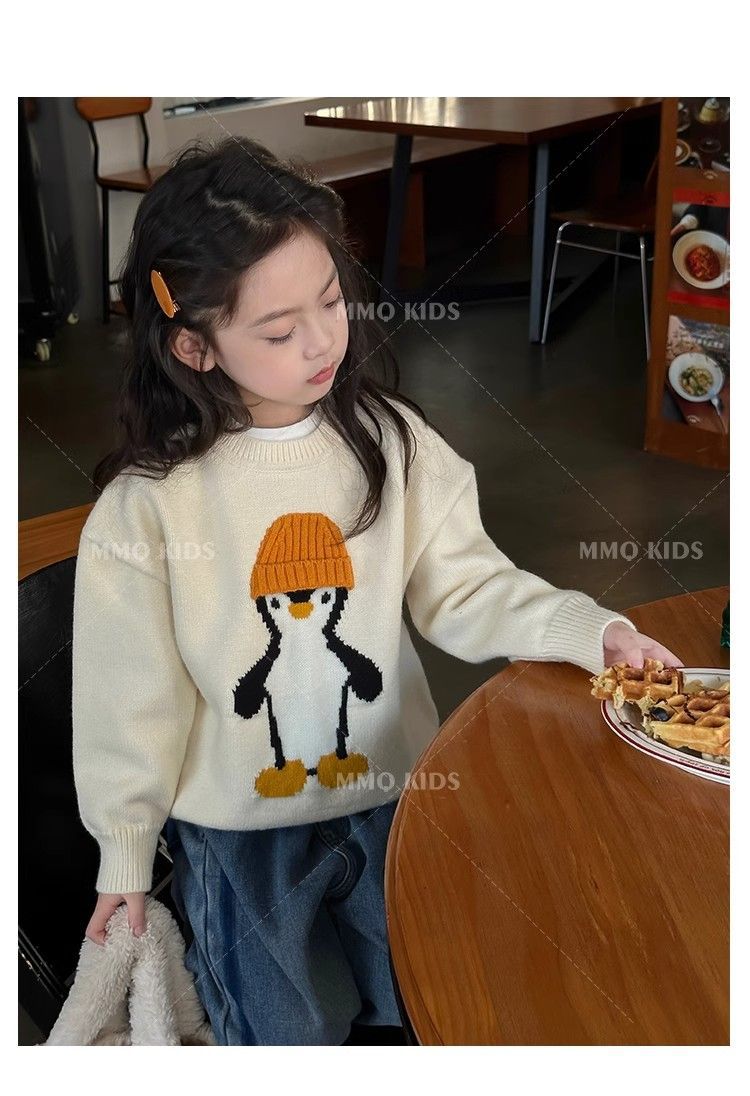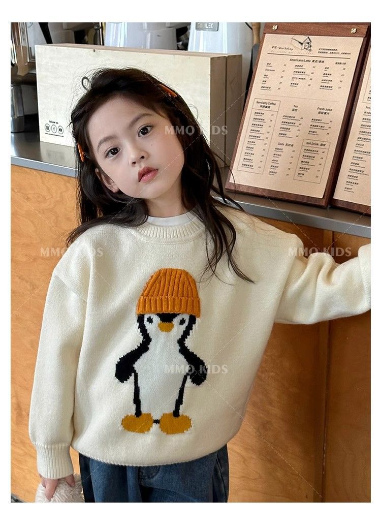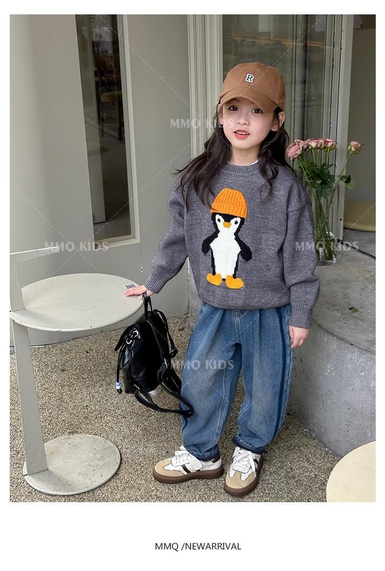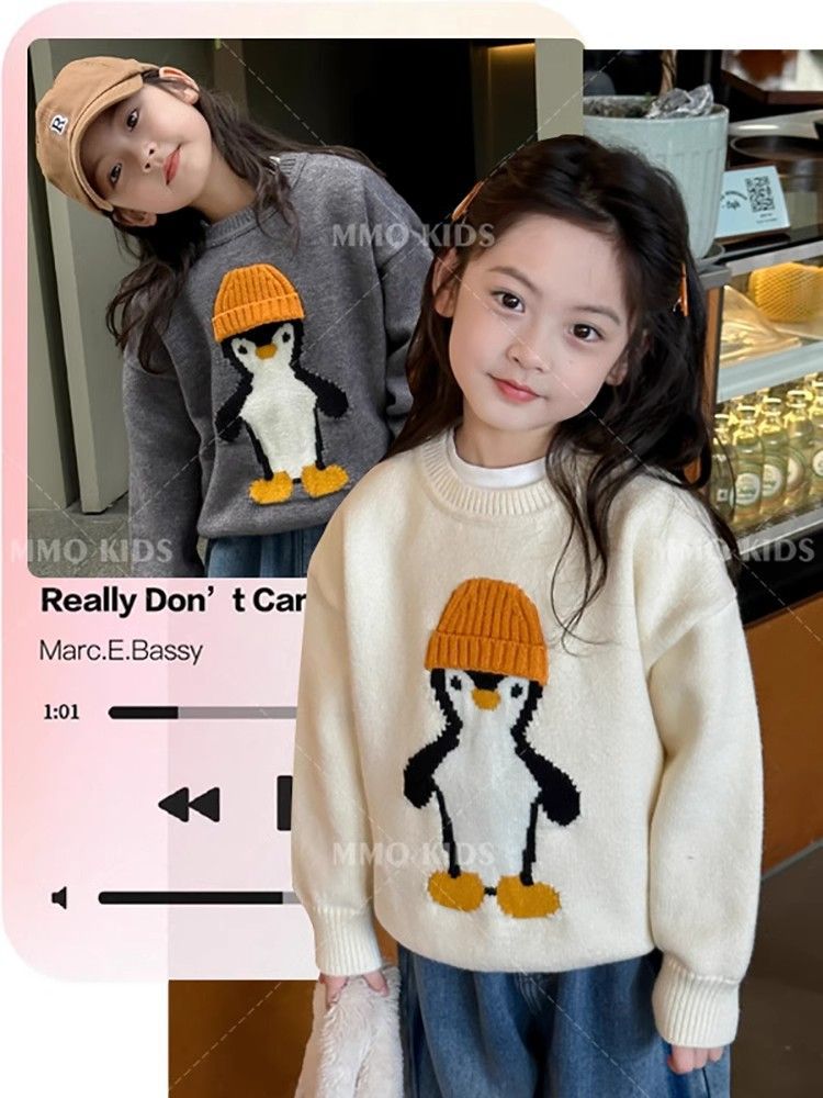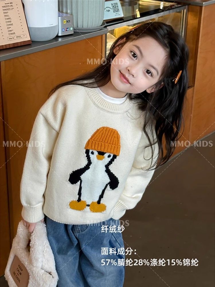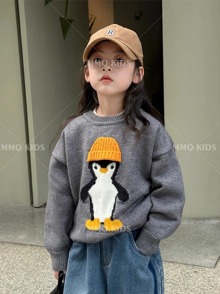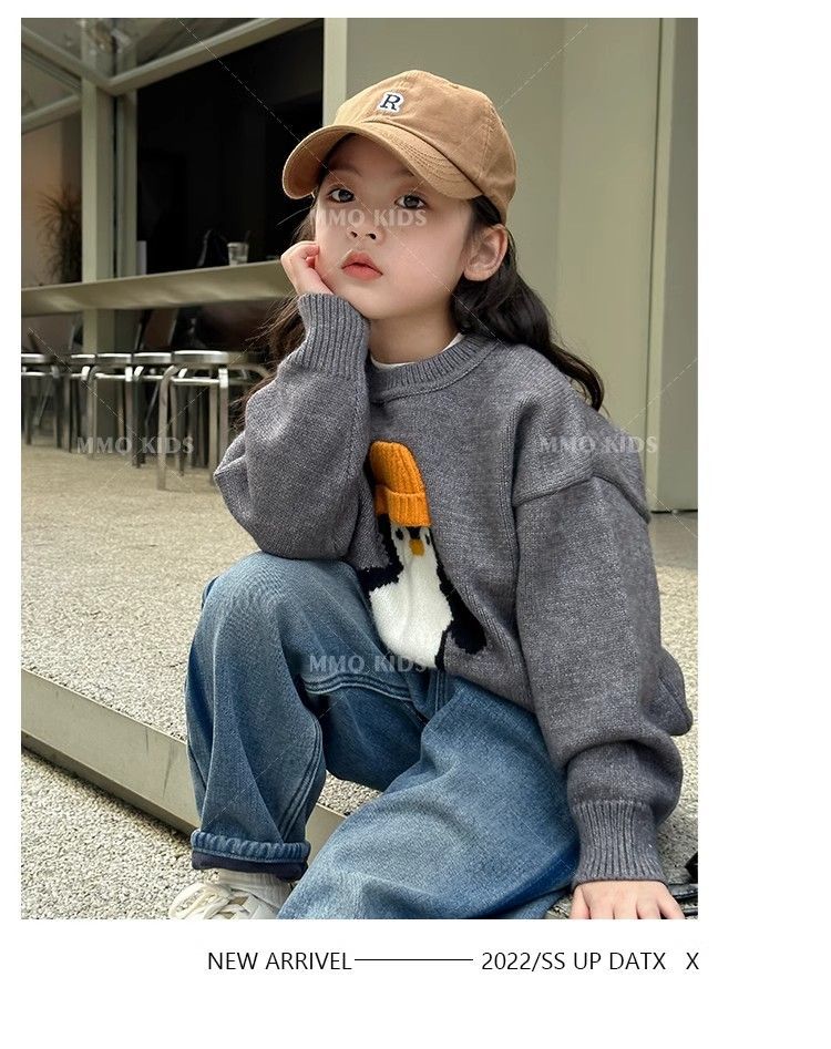 여자 한국 스타일 캐주얼 올 매치 라운드 넥 니트 스웨터 가을과 겨울 새로운 서양 스타일 유행 만화 긴 소매 스웨터스토어 가기