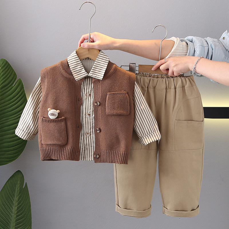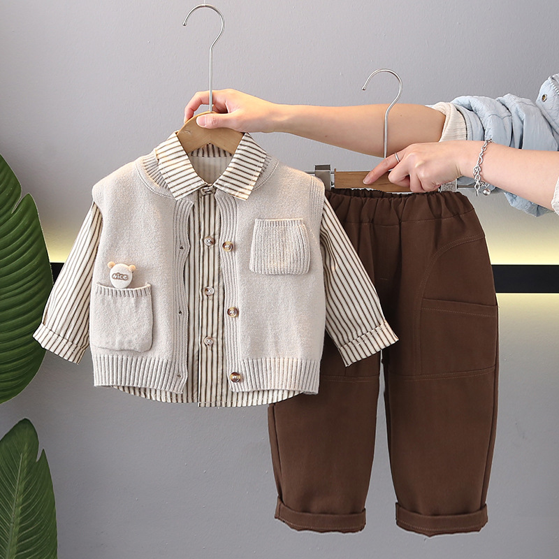 소년의 봄과 가을 세트 2025 새로운 아동복 아기의 봄 착용 어린이 서양식 스웨터 조끼 3 조각 유행스토어 가기