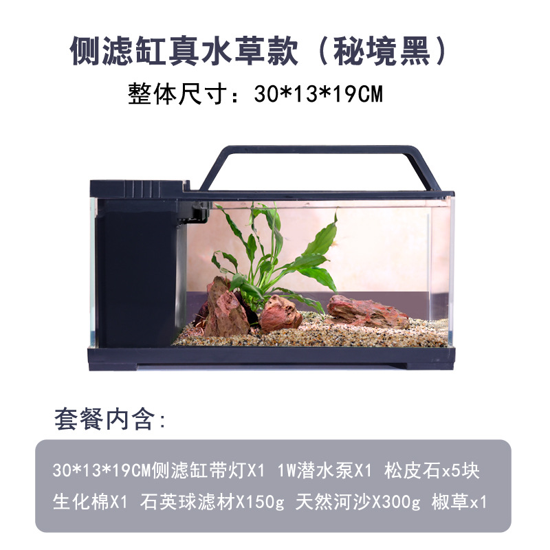 측면 필터 탱크, 조명 및 필터가 포함된 소형 데스크탑, 자체 순환, 게으른 어항, 생태 조경, 초백색 어항스토어 가기