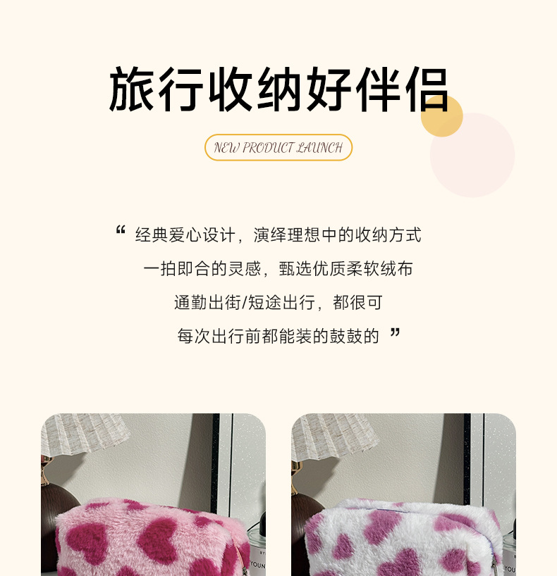 크로스보더 러브 메이크업 백, 귀엽고 푹신한 대용량 세면도구 가방, 휴대용 고급스러운 여행용 수납 가방스토어 가기