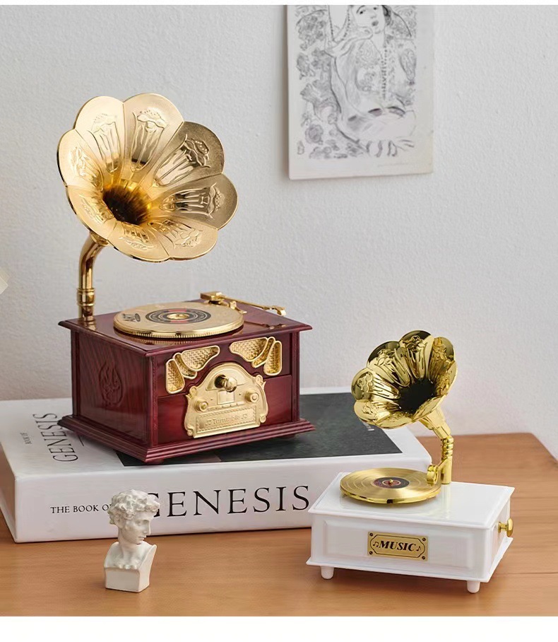 유럽 복고풍 레코드 축음기 태엽 뮤직 박스 홈 거실 바 카페 뮤직 박스 장식 장식품