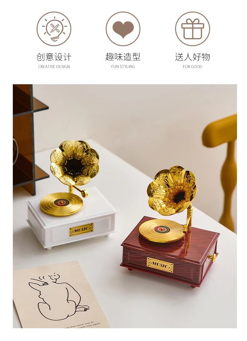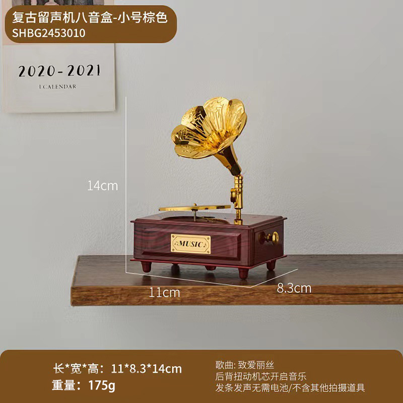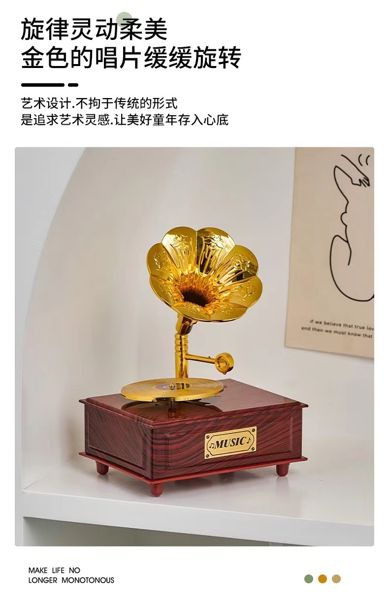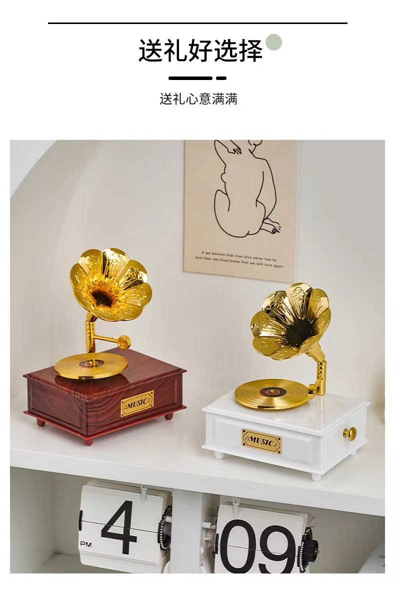 유럽 복고풍 레코드 축음기 태엽 뮤직 박스 홈 거실 바 카페 뮤직 박스 장식 장식품스토어 가기