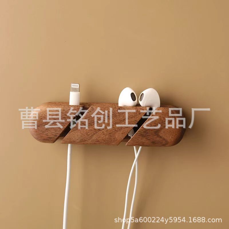 블랙 호두 솔리드 우드 데스크탑 케이블 데이터 케이블 마무리 고정 이어폰 클립 와이어 스토리지 케이블 주최자 허브