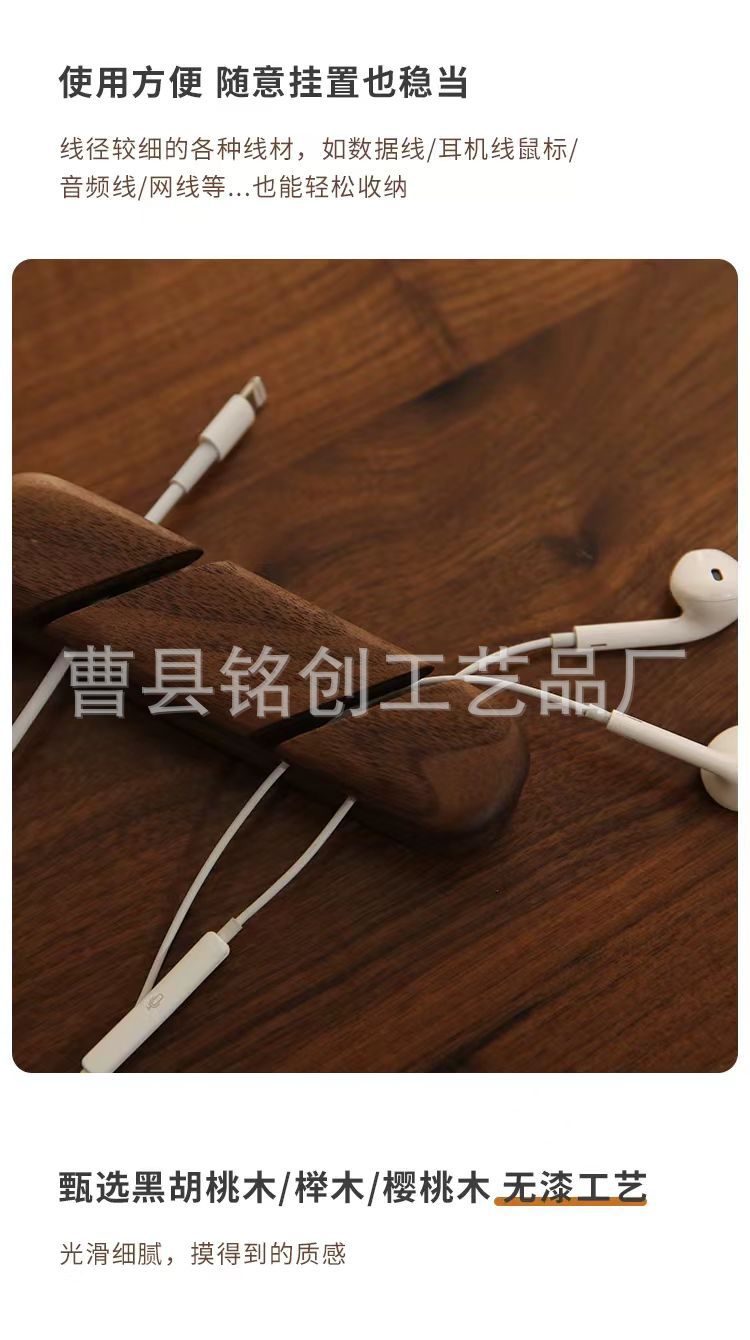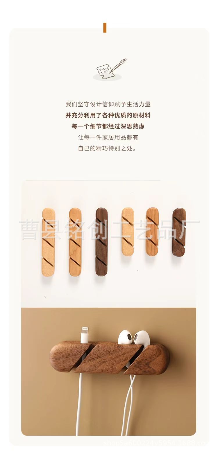 블랙 호두 솔리드 우드 데스크탑 케이블 데이터 케이블 마무리 고정 이어폰 클립 와이어 스토리지 케이블 주최자 허브스토어 가기