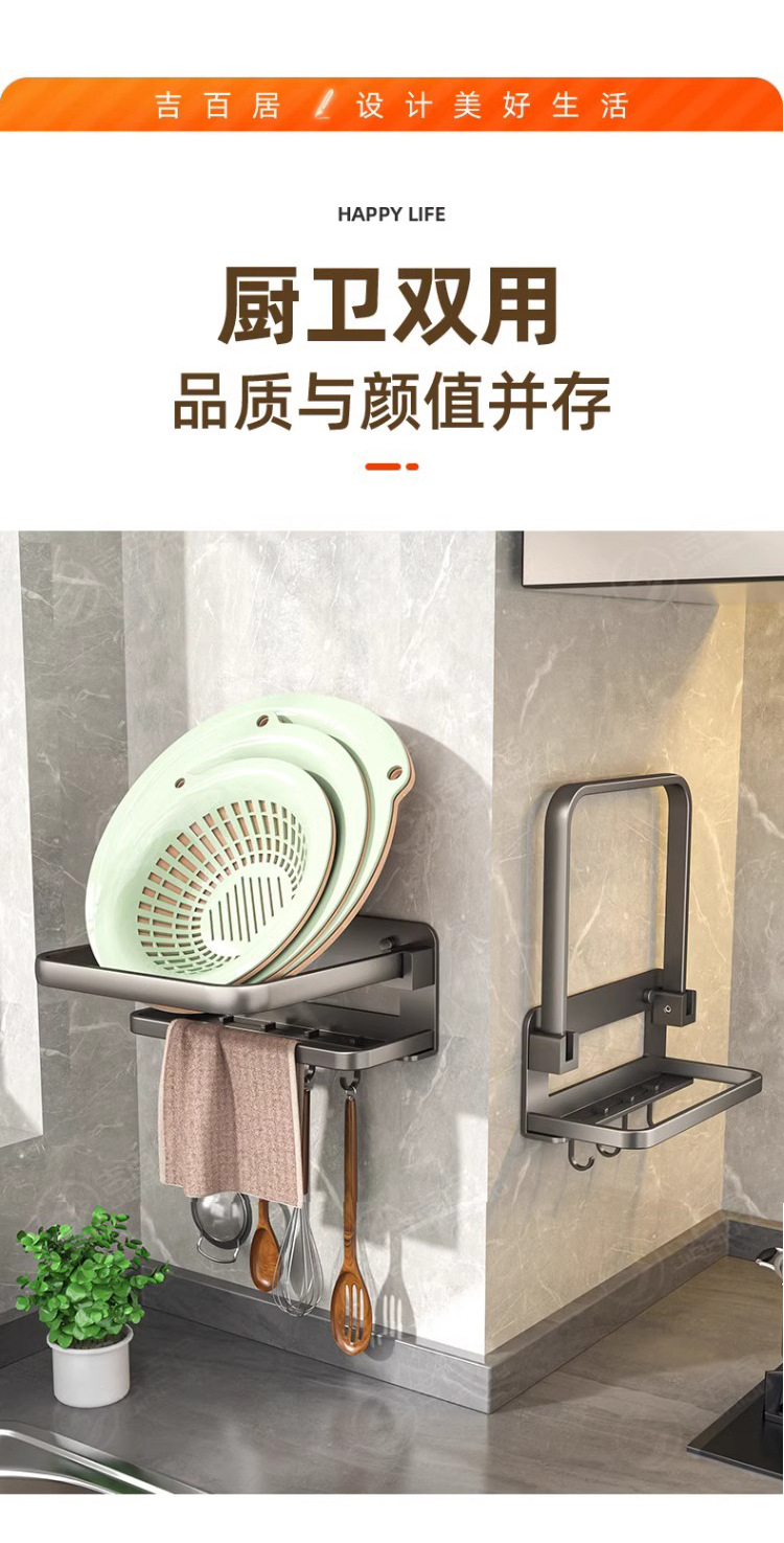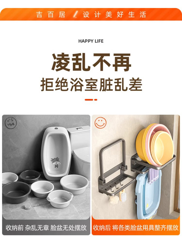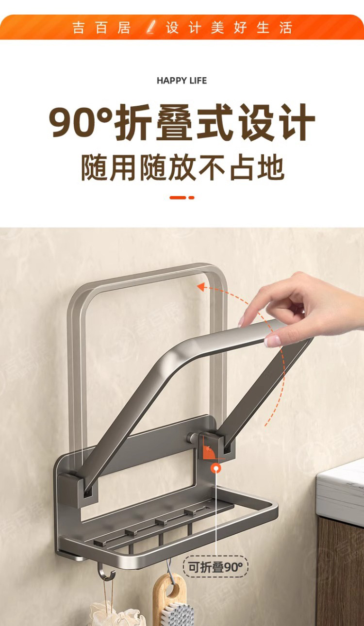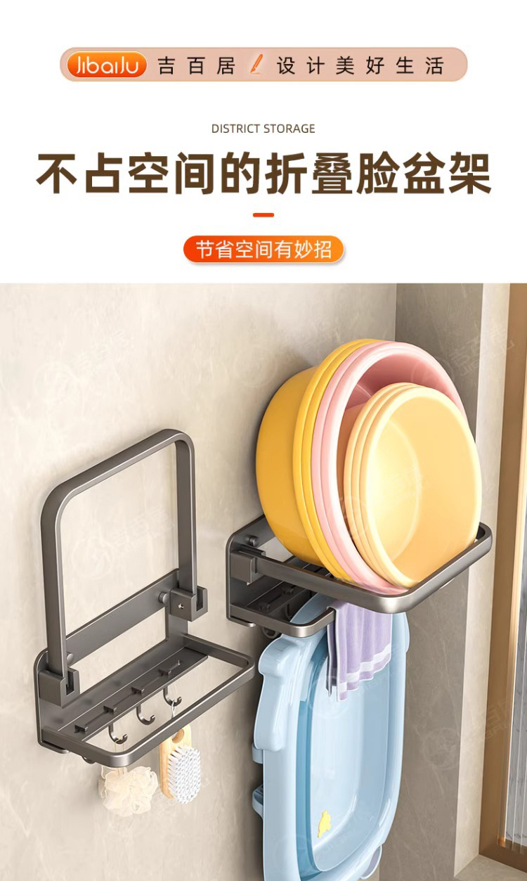 소스 공장 접이식 세면대 저장 랙 펀치없는 화장실 분지 랙 가정용 욕실 벽 교수형 분지 저장 랙