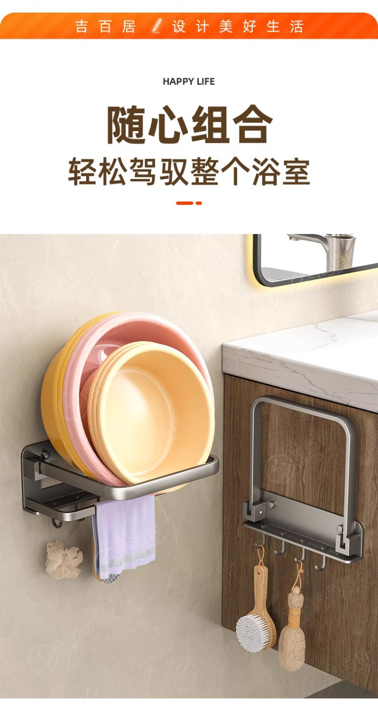 소스 공장 접이식 세면대 저장 랙 펀치없는 화장실 분지 랙 가정용 욕실 벽 교수형 분지 저장 랙스토어 가기