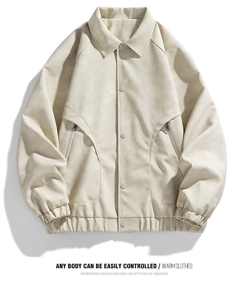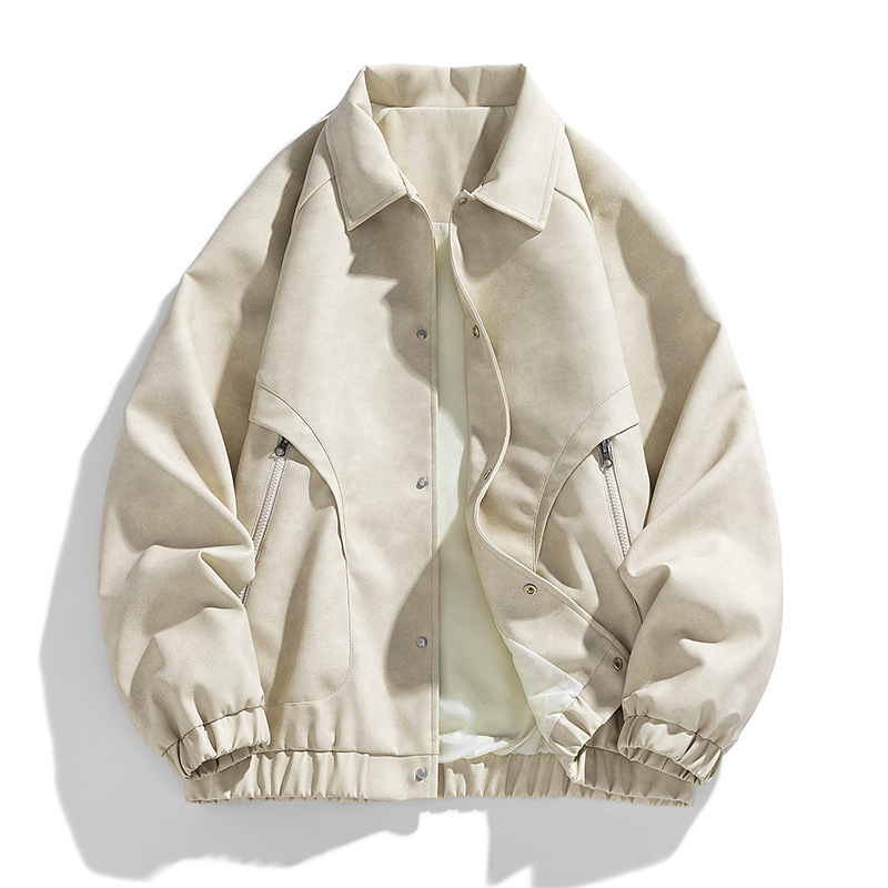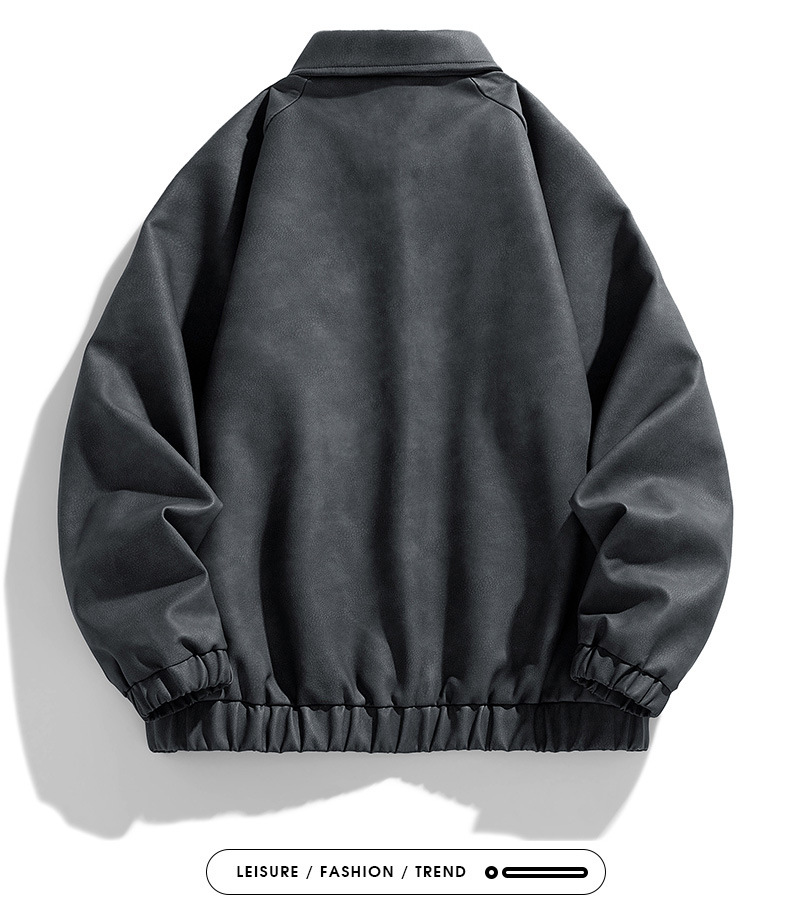 M-8XL 대형 작업복 PU 가죽 남성 재킷 옷깃 오토바이 뚱뚱한 옷 미국 스타일 거리 느슨한 유행 재킷