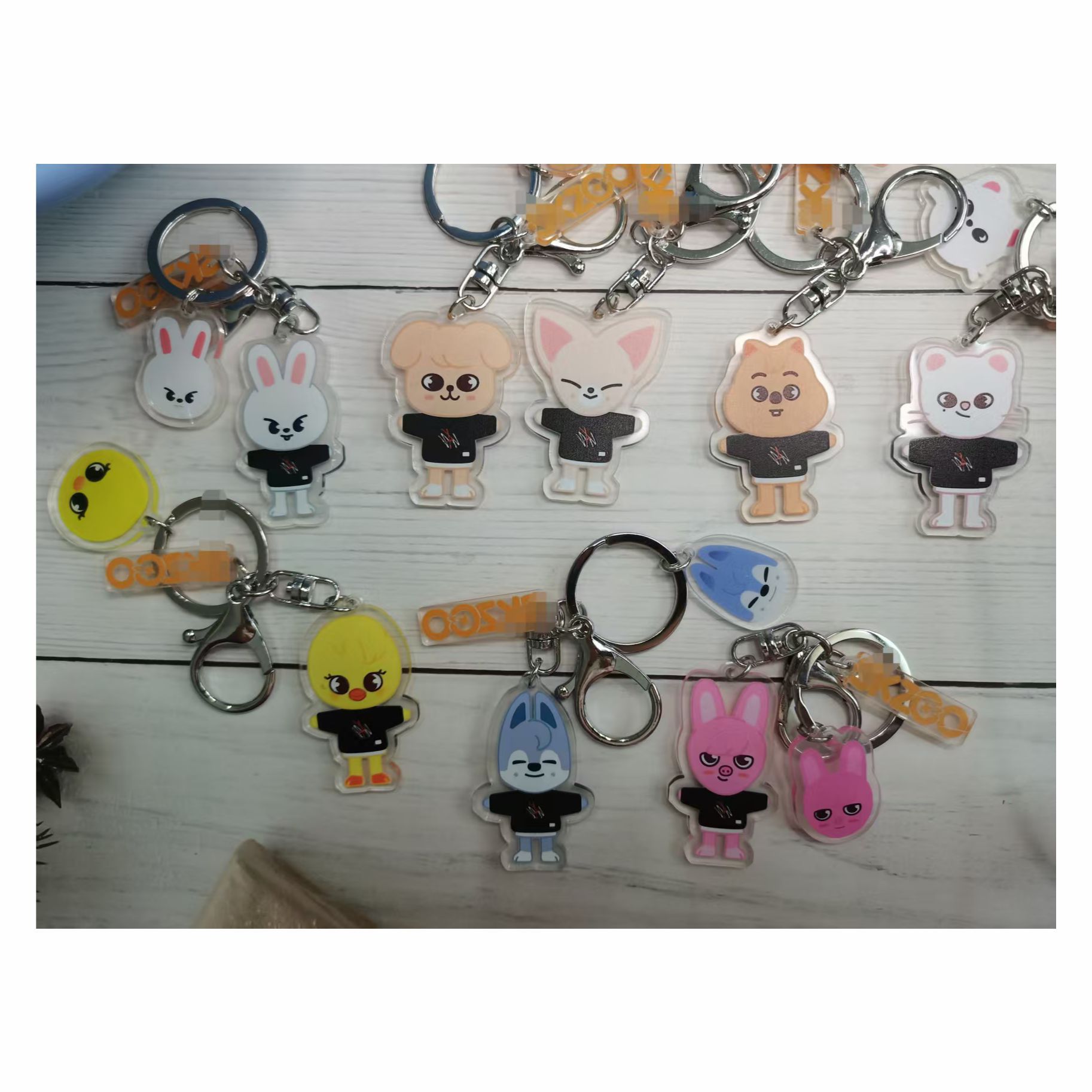 스트레이 키즈 만화 스타일 아크릴 양면 키체인 액세서리 장식품 주변 키홀더