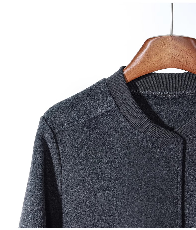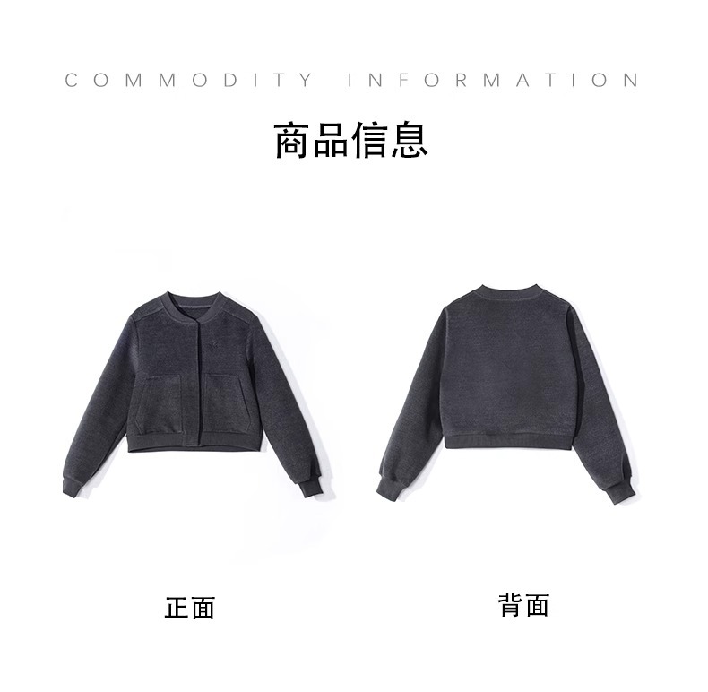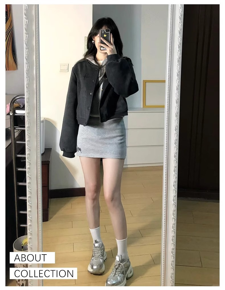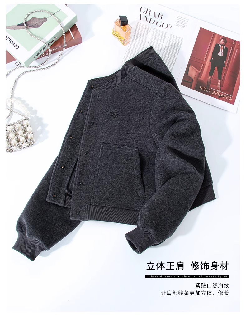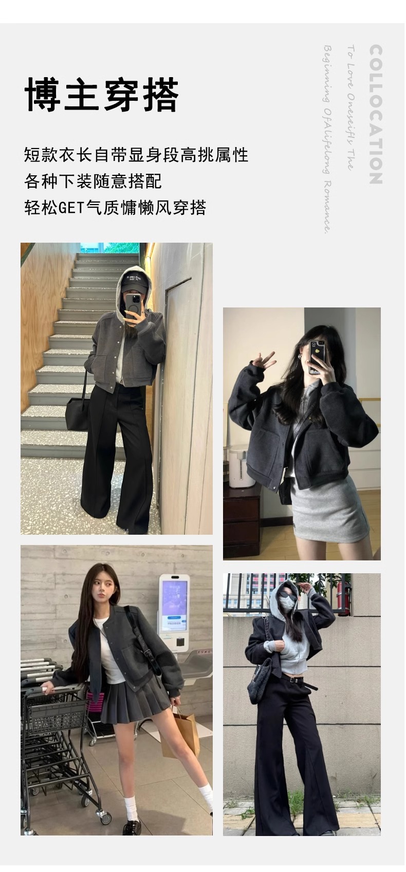 봄과 가을 여성용 회색 짧은 야구 재킷, 버튼 스타일 플러스 벨벳 두꺼운 어깨 재킷, 작은 모직 스웨트 셔츠스토어 가기