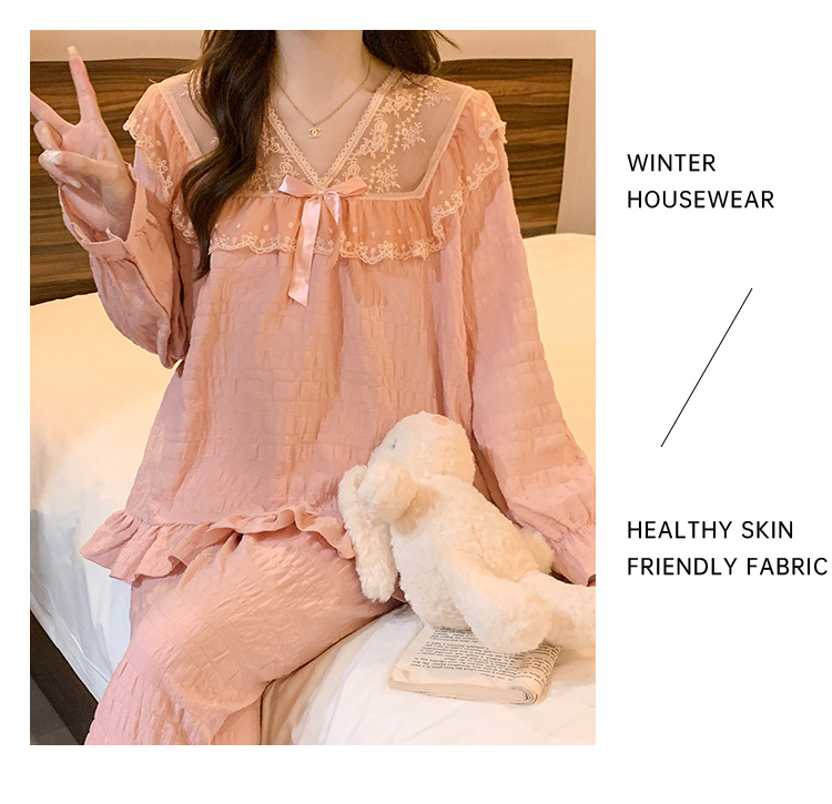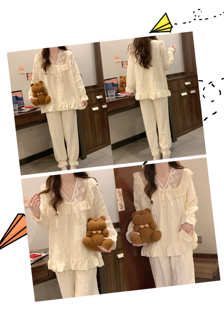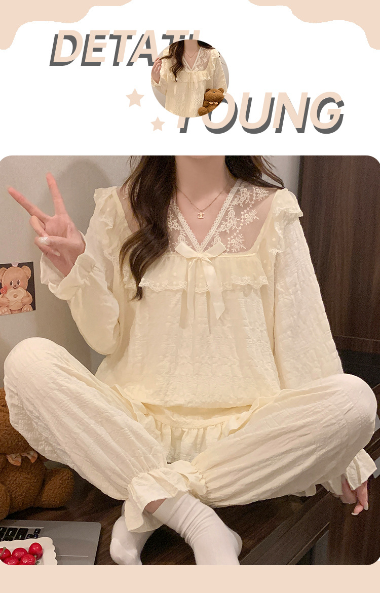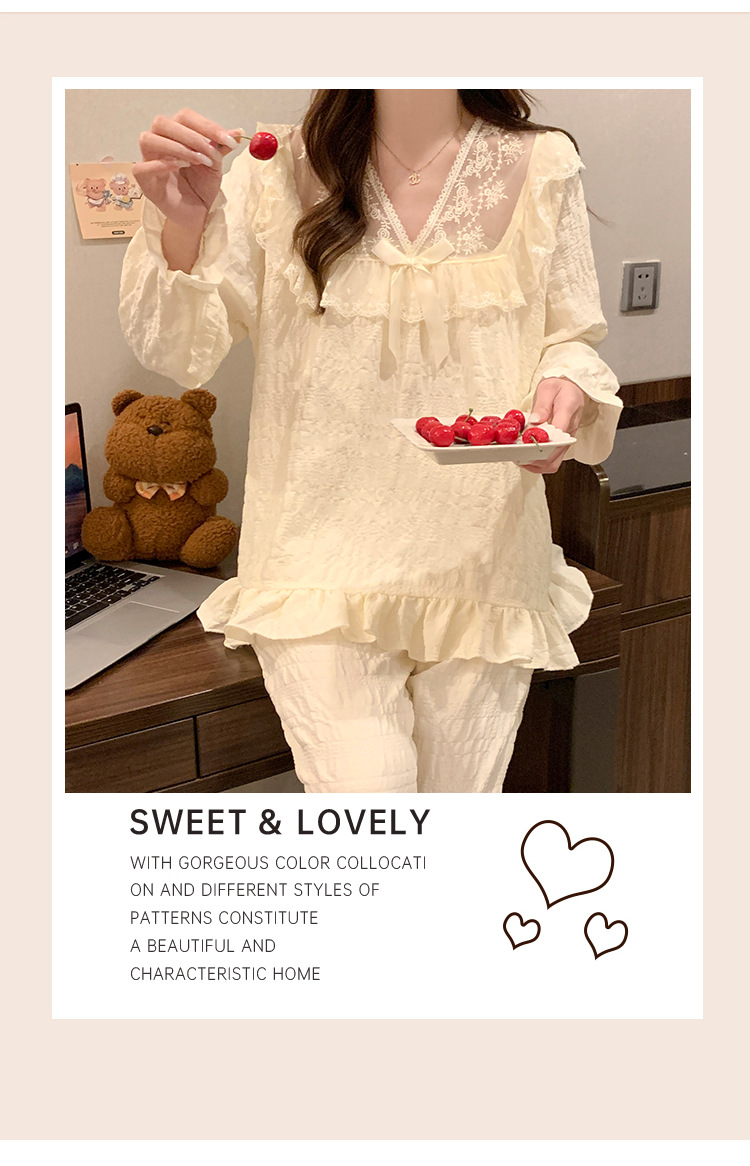 국경 간 파자마 여성 봄과 가을 새로운 긴팔 얇은 한국 스타일 레이스 레이스 간단한 캐주얼 여성 홈 의류 세트
