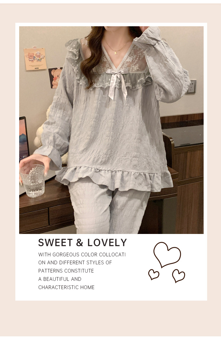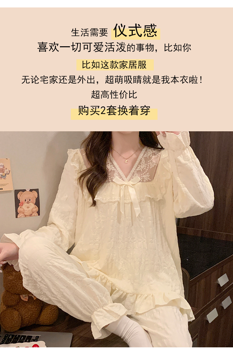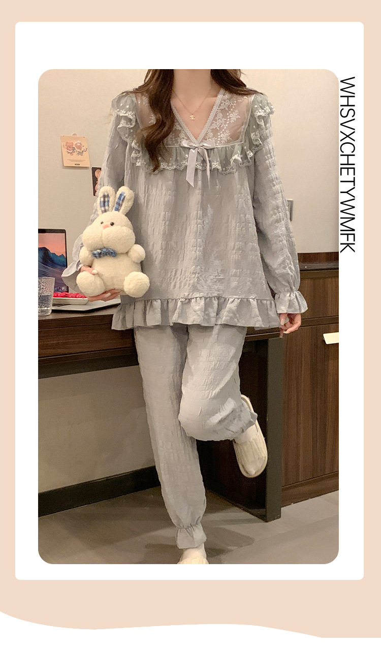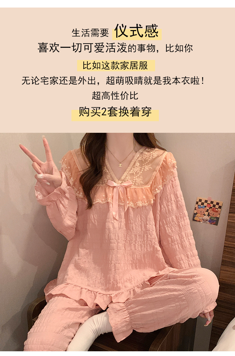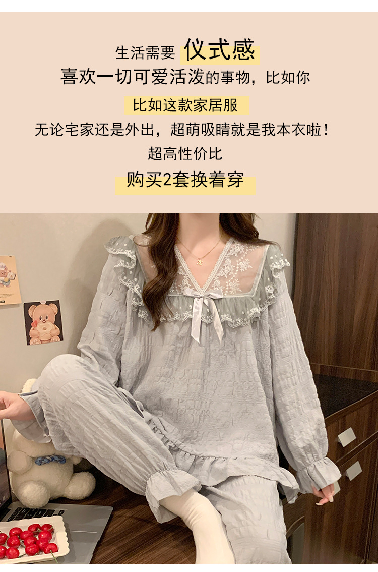 국경 간 파자마 여성 봄과 가을 새로운 긴팔 얇은 한국 스타일 레이스 레이스 간단한 캐주얼 여성 홈 의류 세트스토어 가기