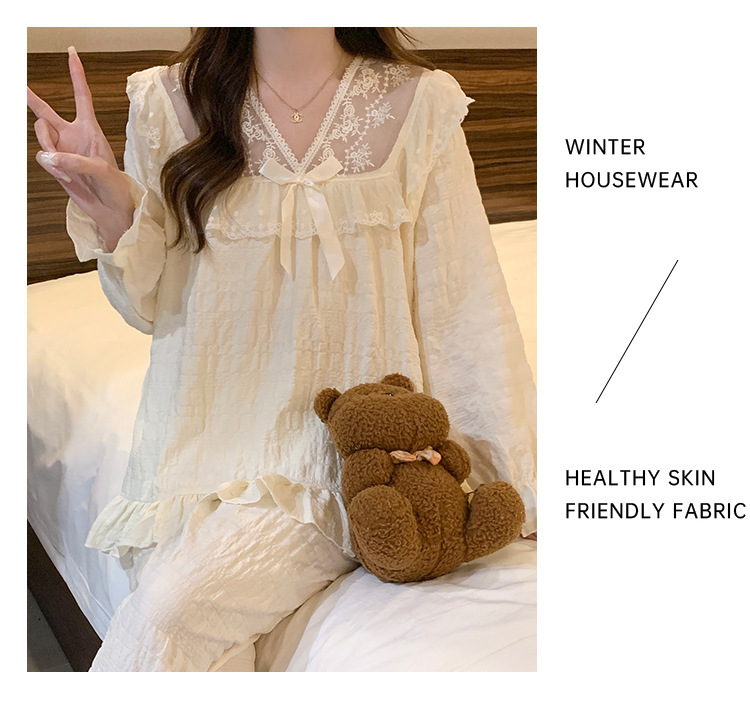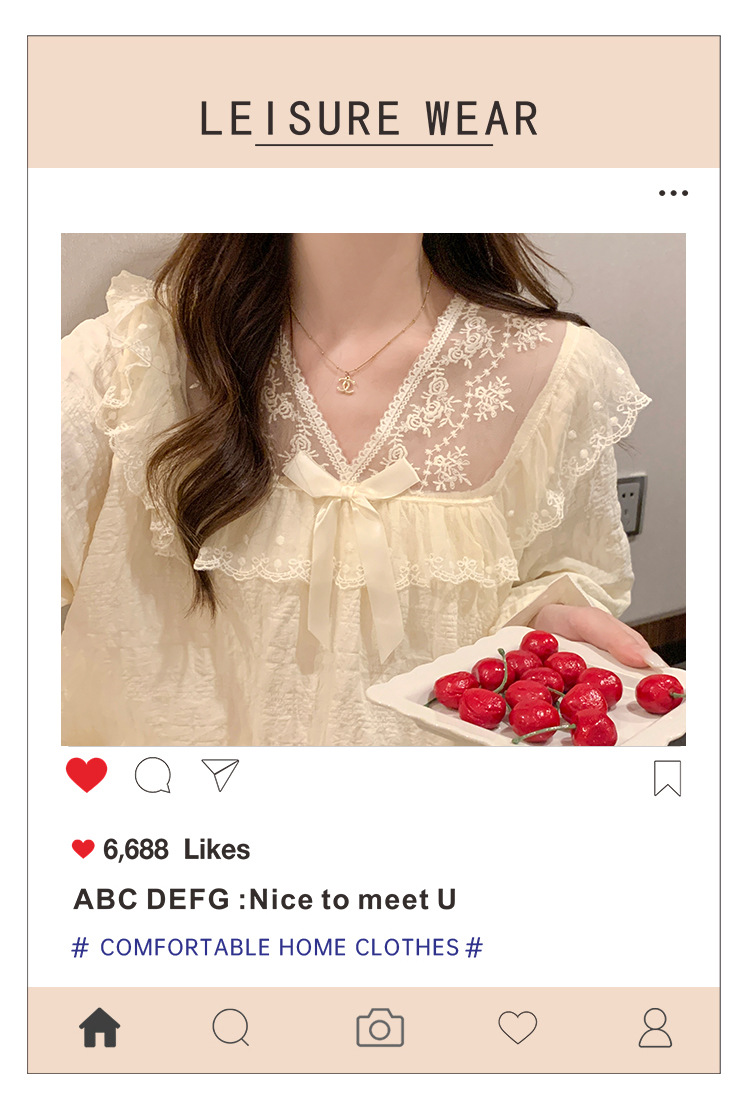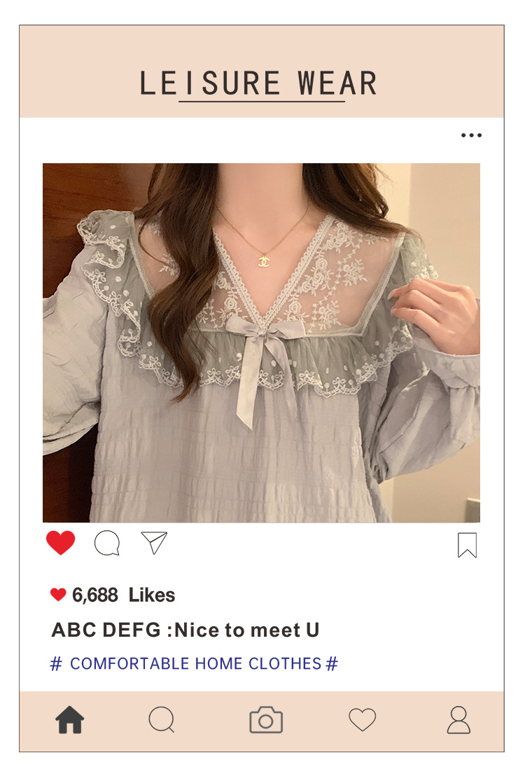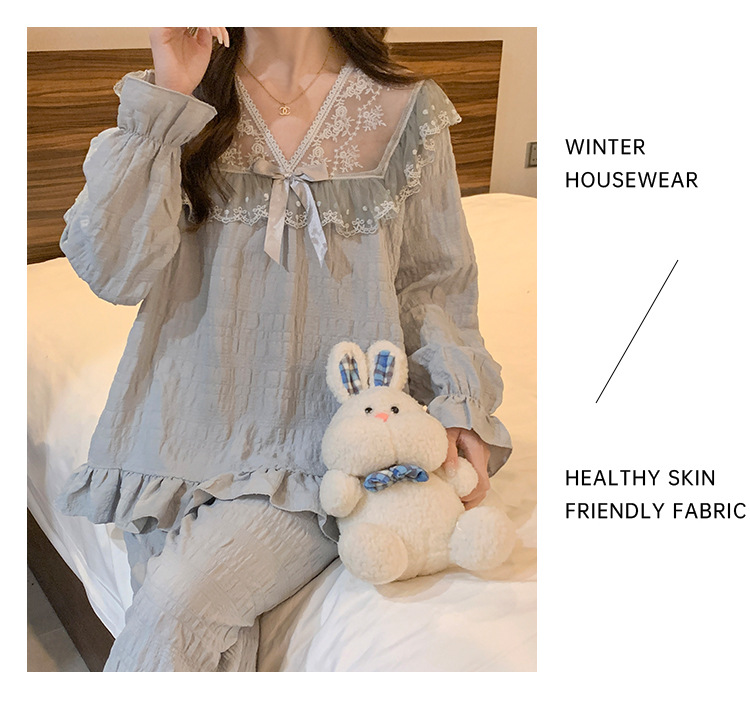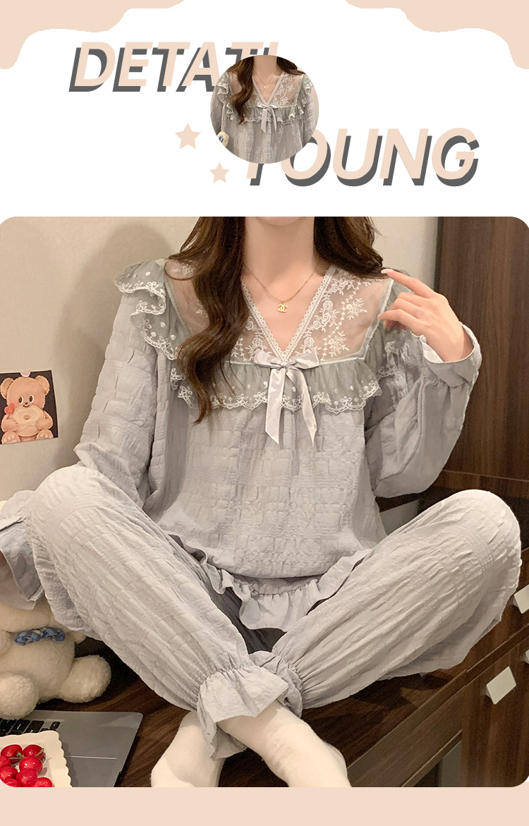 국경 간 파자마 여성 봄과 가을 새로운 긴팔 얇은 한국 스타일 레이스 레이스 간단한 캐주얼 여성 홈 의류 세트스토어 가기