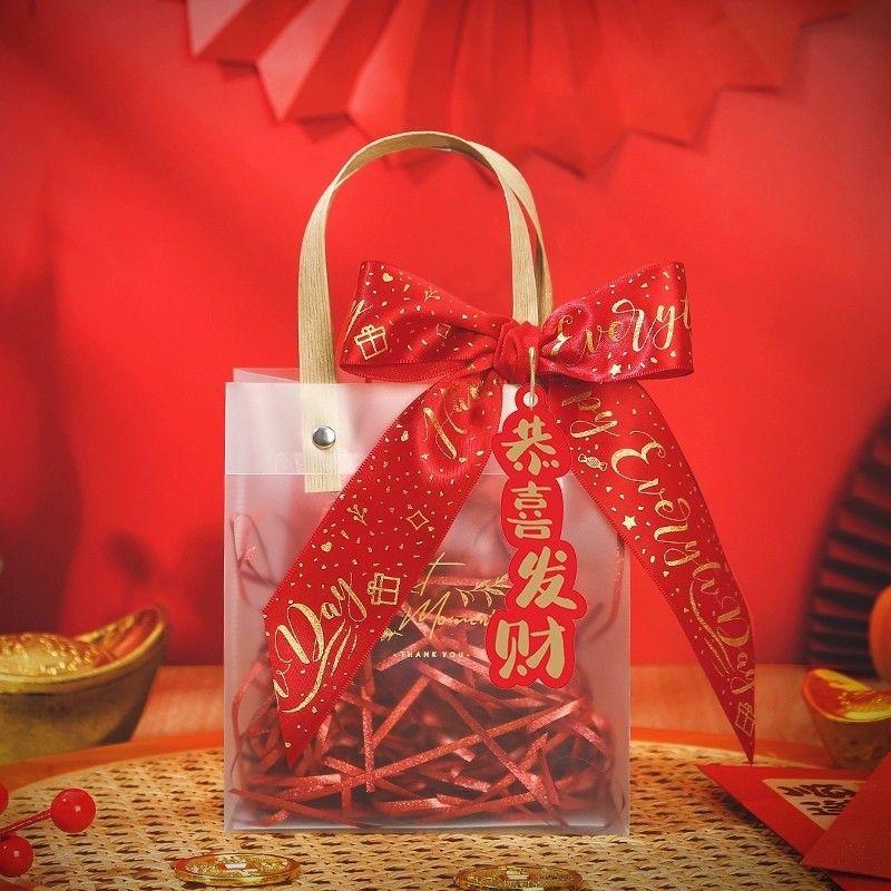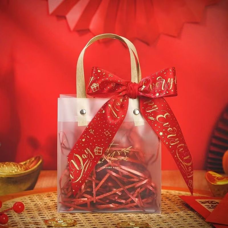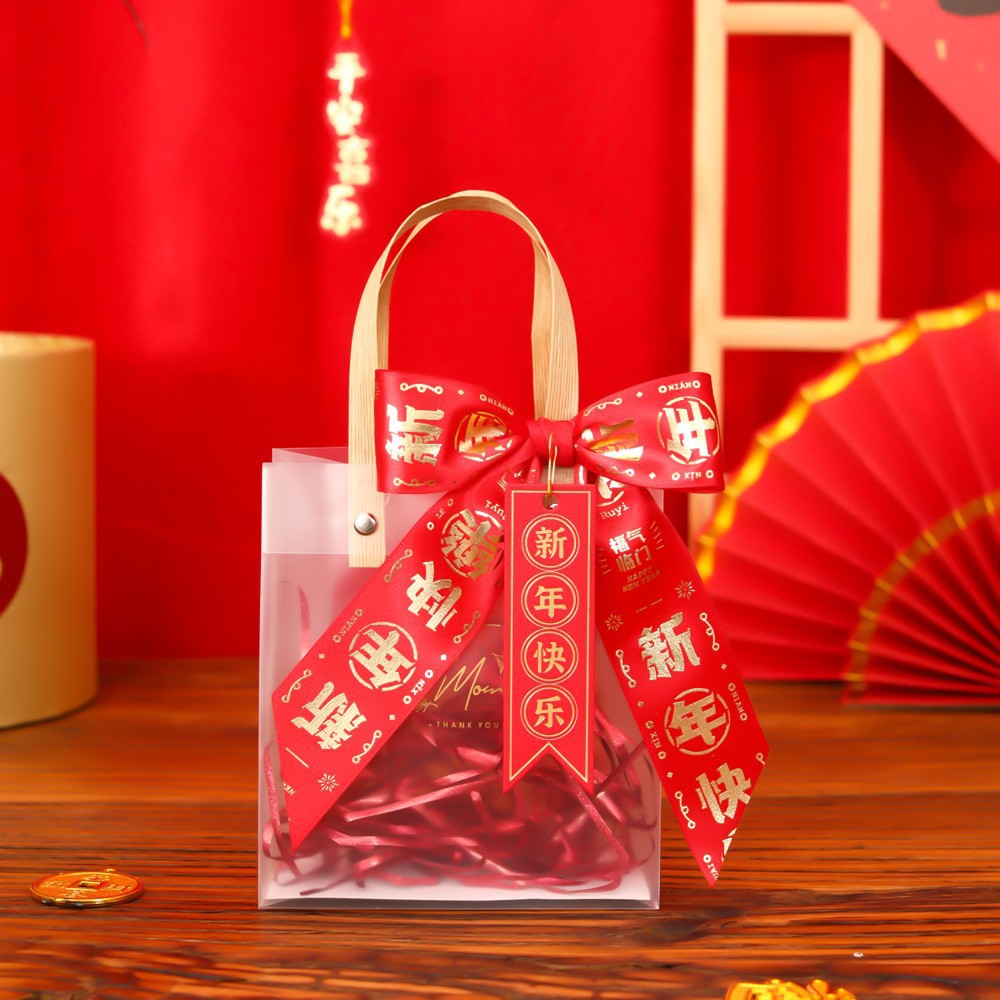 • 새해 리본 + 선물 가방, PP 반투명, 소형 [높이 16 너비 7 길이 14] cm