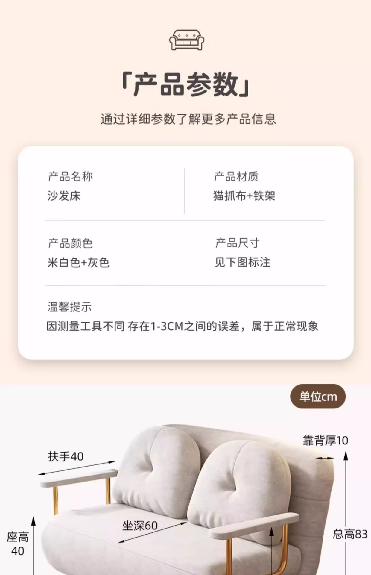 접이식 소파베드, 소형 공간에도 적합한 다기능 싱글 침대 겸용 소파, 공간 절약형스토어 가기