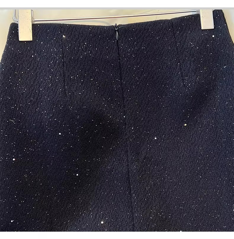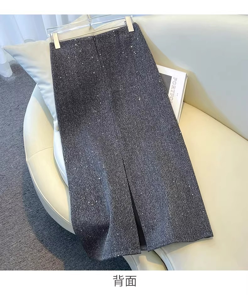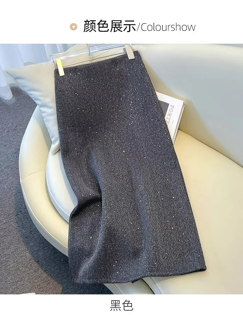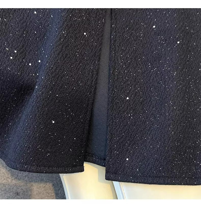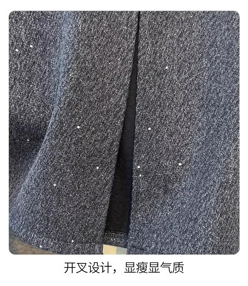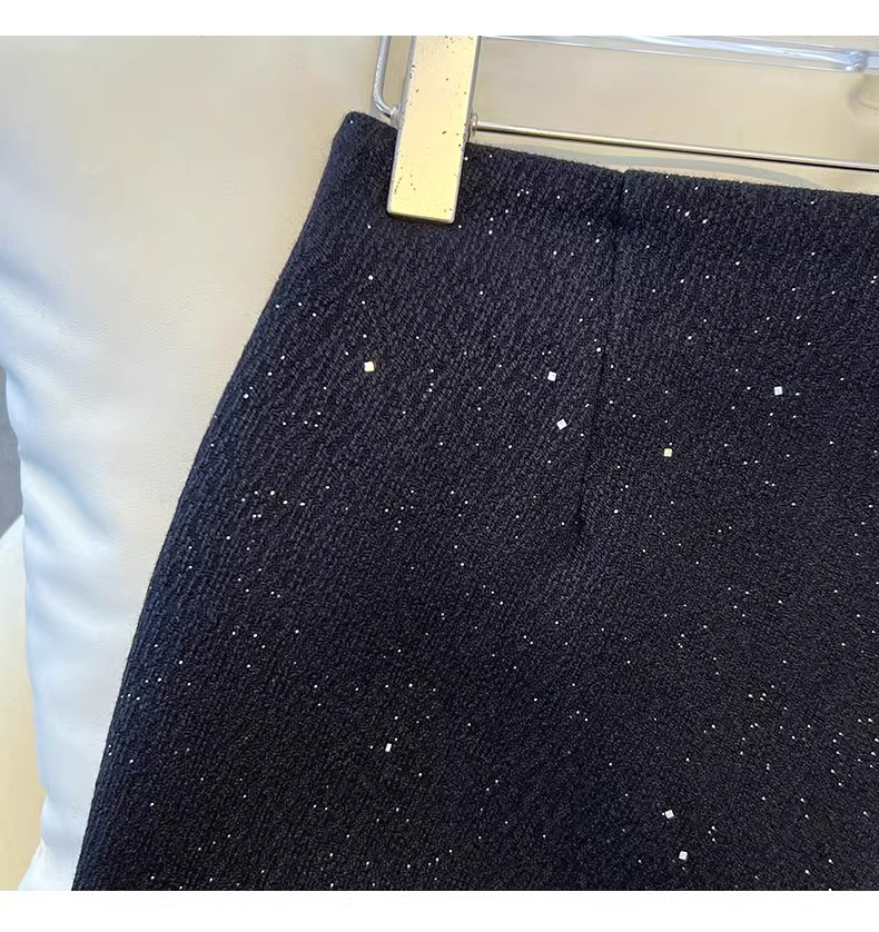 블랙 모직 스커트 여성용 가을 겨울 2025 신상 하이웨이스트 미디 기장 힙 스커트 캐시미어 스팽글 A라인 스커트스토어 가기