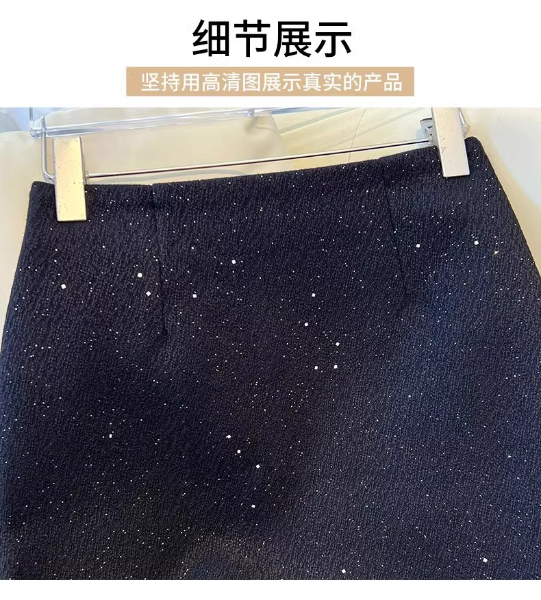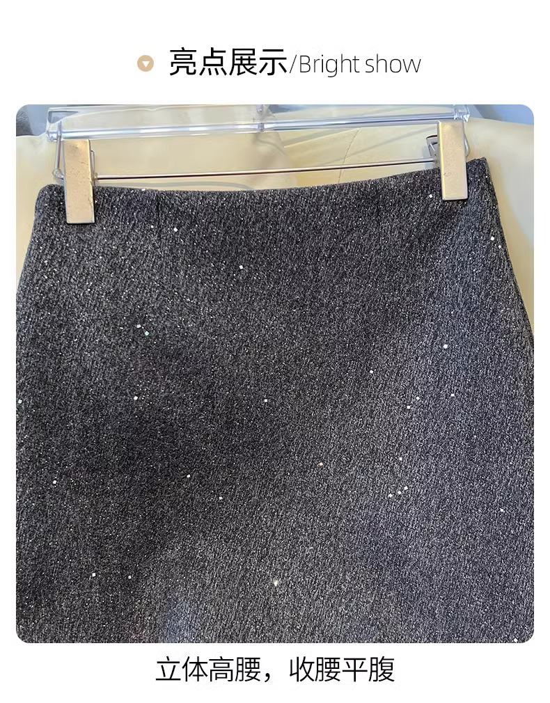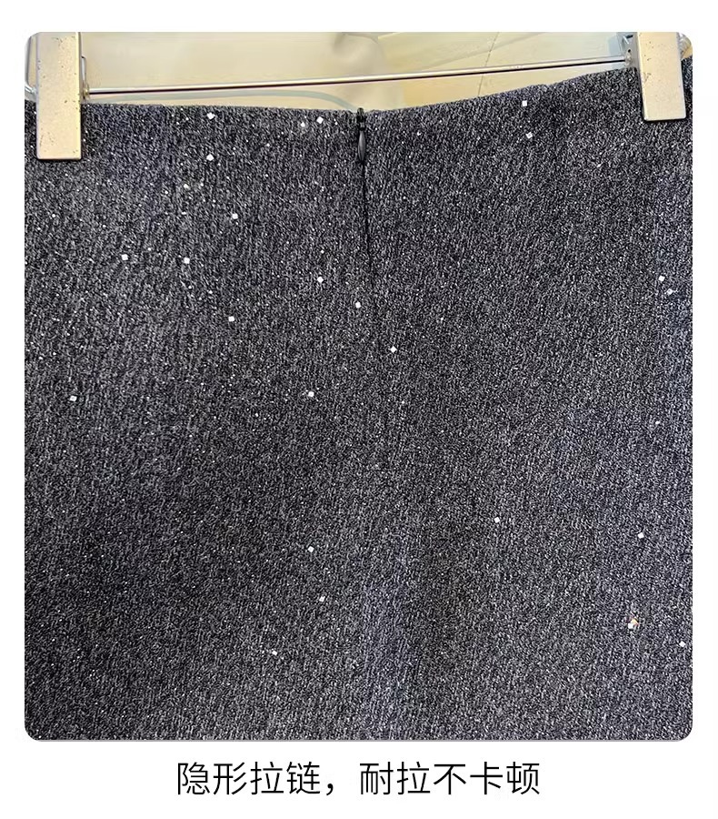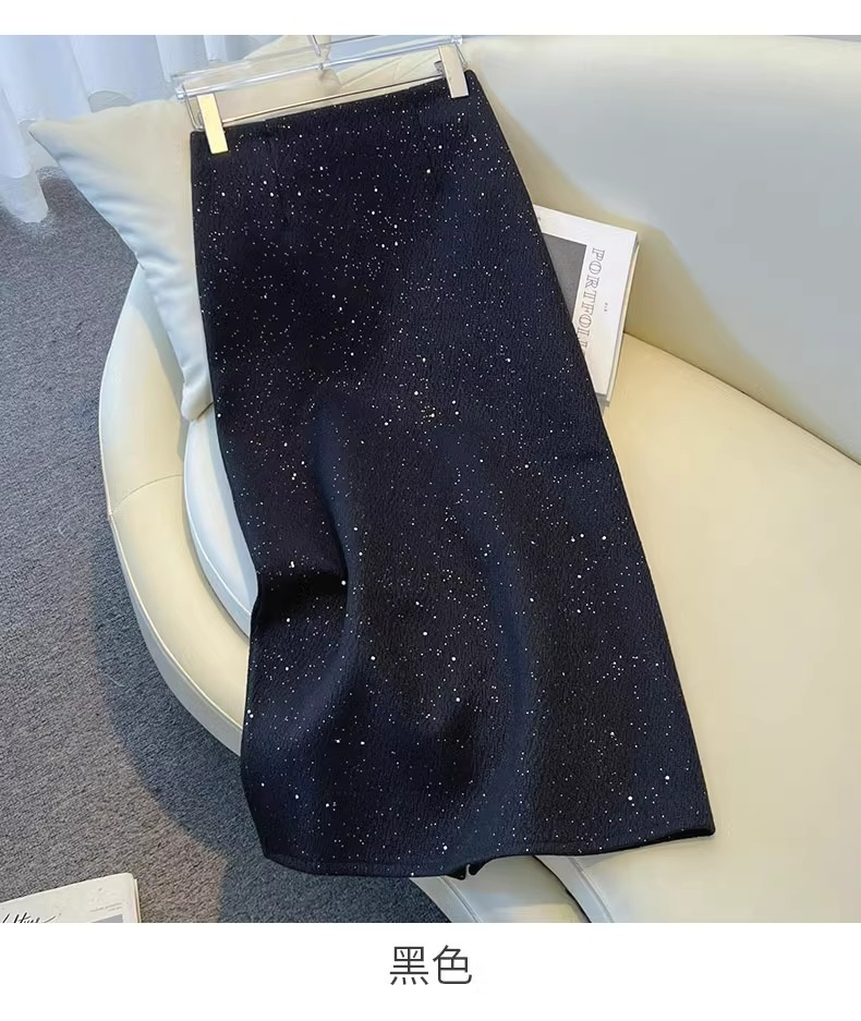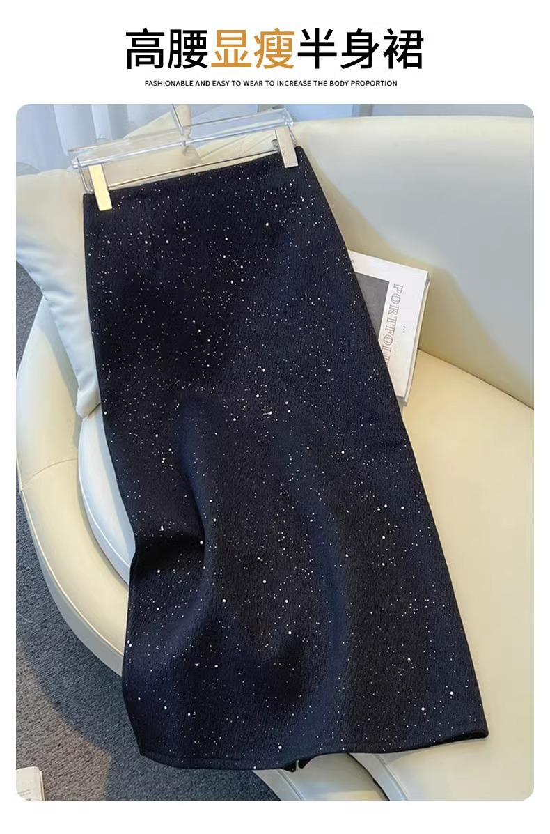 블랙 모직 스커트 여성용 가을 겨울 2025 신상 하이웨이스트 미디 기장 힙 스커트 캐시미어 스팽글 A라인 스커트스토어 가기