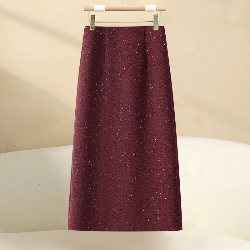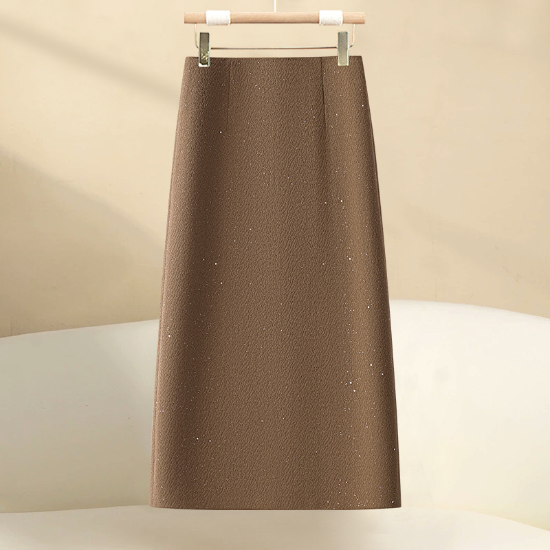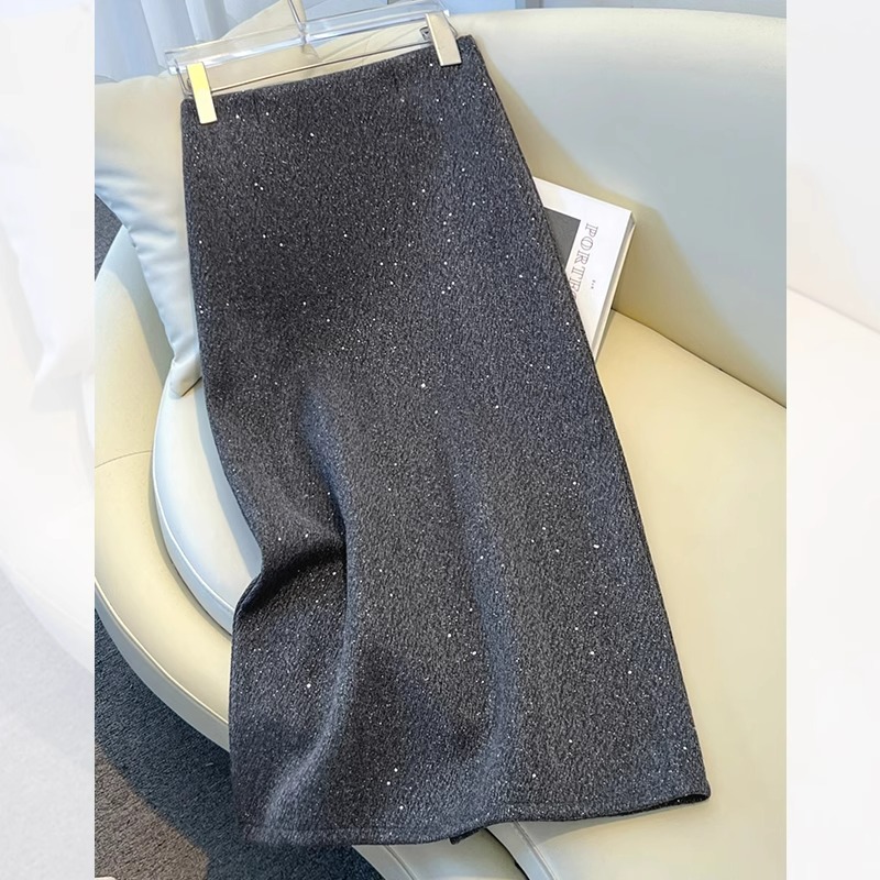 블랙 모직 스커트 여성용 가을 겨울 2025 신상 하이웨이스트 미디 기장 힙 스커트 캐시미어 스팽글 A라인 스커트