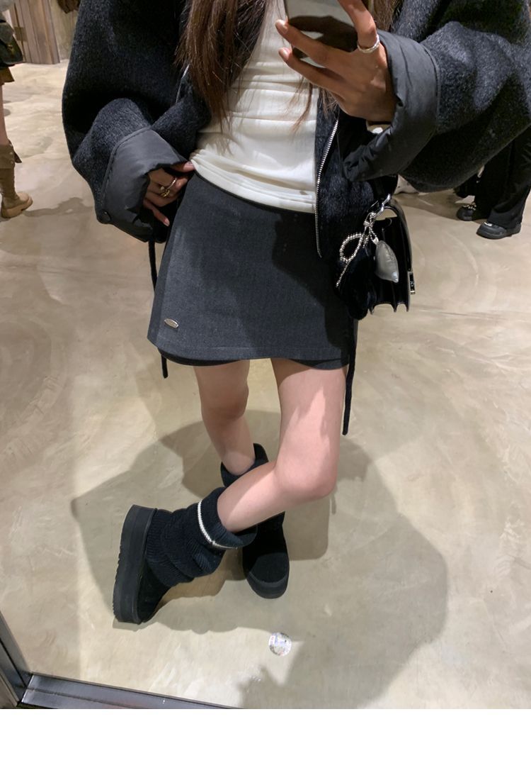 한국 스타일 패션 가짜 투피스 양모 스커트 여성 인스타그램 이른 봄 새 스타일 레트로 올매치 사이드 지퍼 스커트
