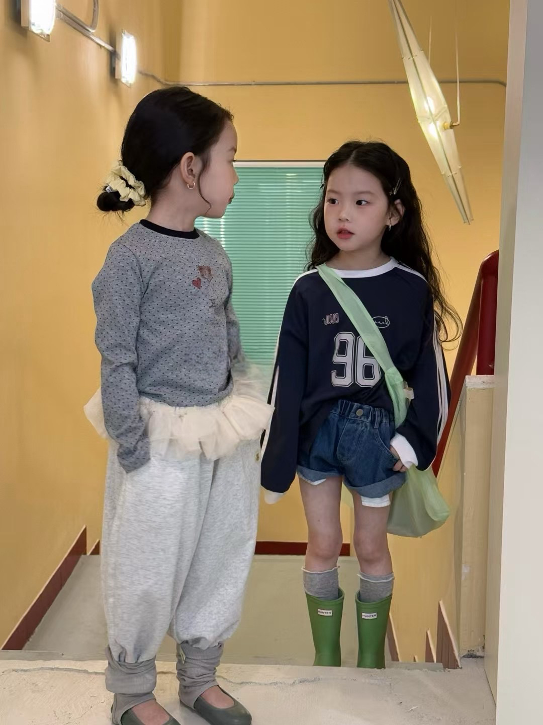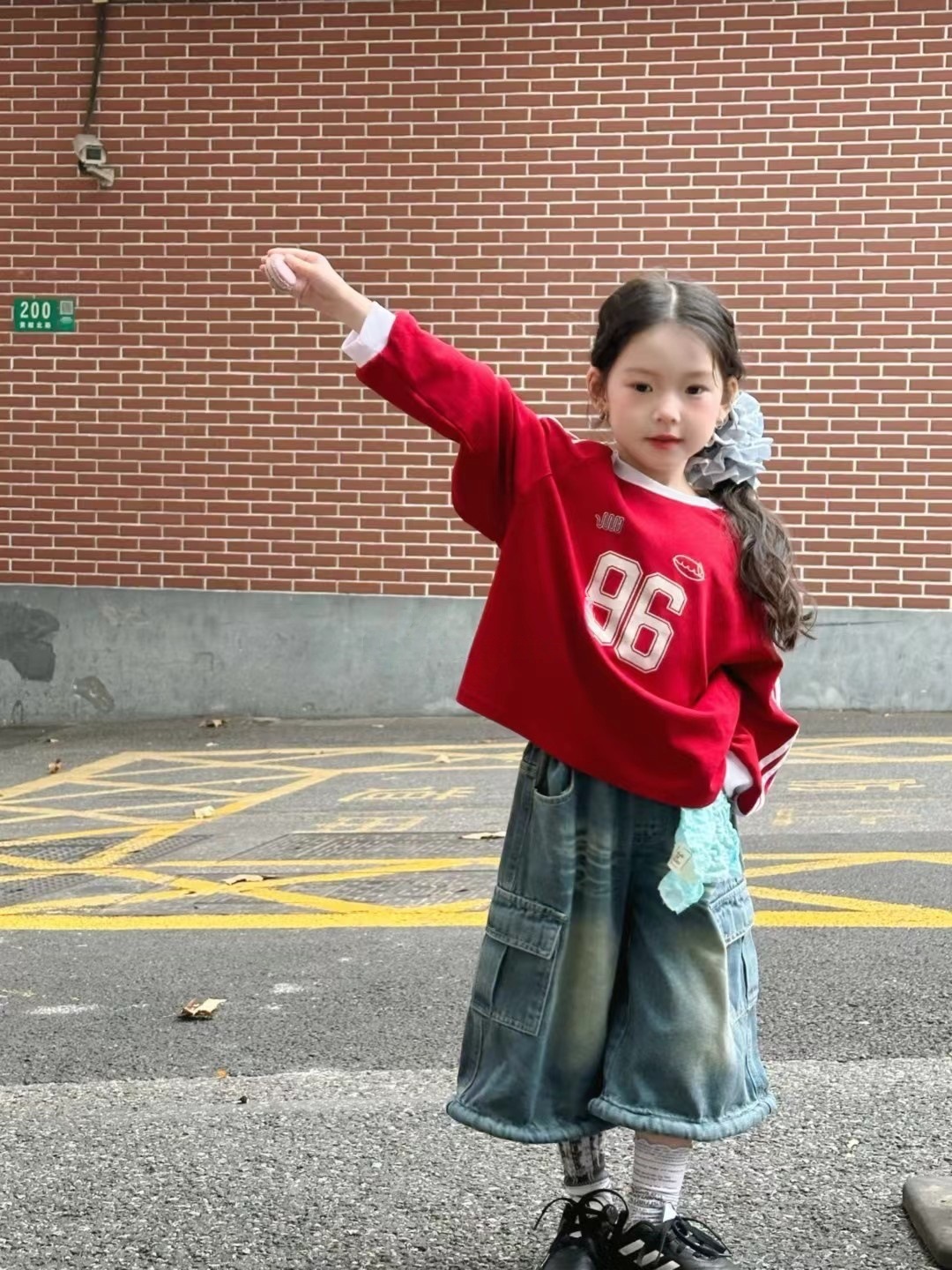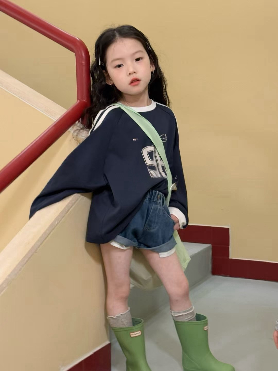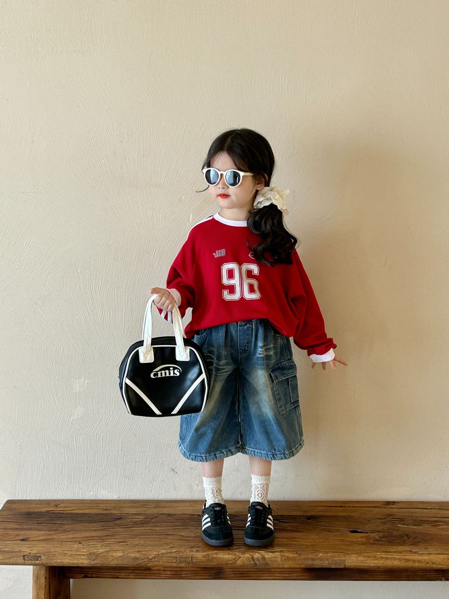 남아용 배색 스웨트셔츠 아동용 25 봄 가을 신상 레드 레터링 이너웨어 여아용 캐주얼 스타일 상의 트렌디