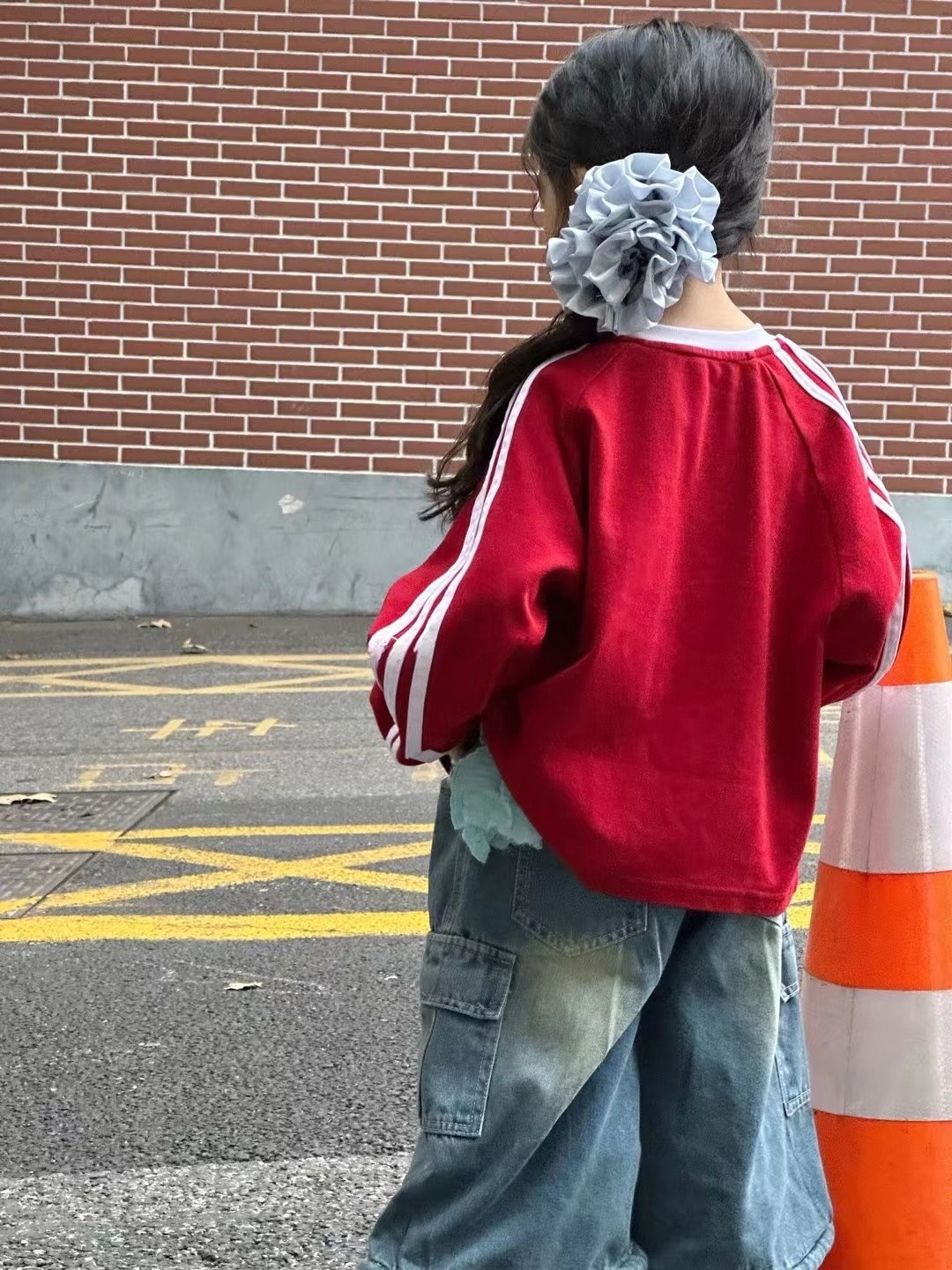 남아용 배색 스웨트셔츠 아동용 25 봄 가을 신상 레드 레터링 이너웨어 여아용 캐주얼 스타일 상의 트렌디스토어 가기