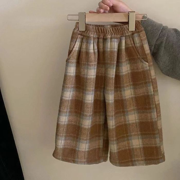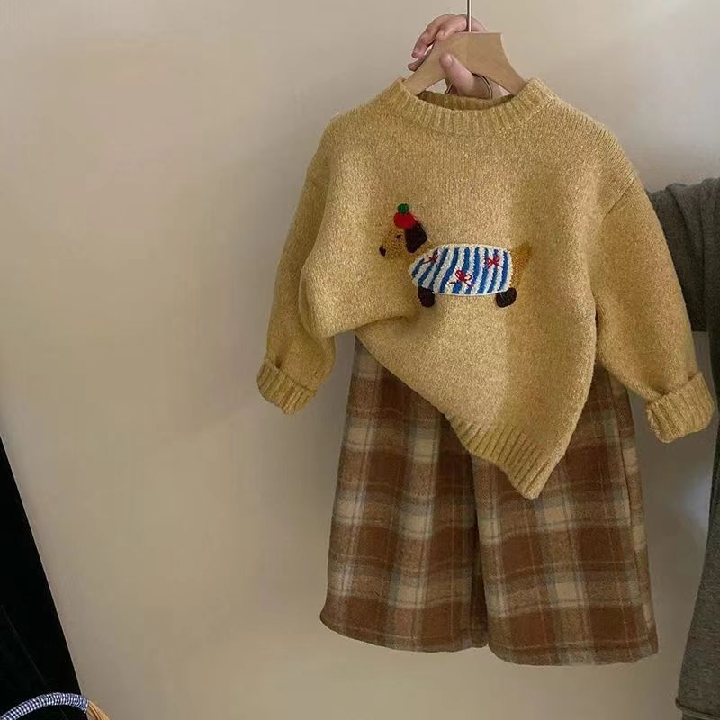 소녀 아기 한국식 캐주얼 세트 중 · 빅 키즈 가을과 겨울 새로운 서양식 만화 풀오버 격자 무늬 바지 투피스 세트스토어 가기