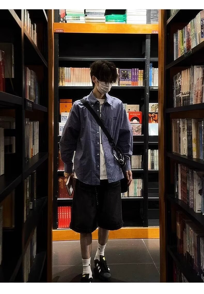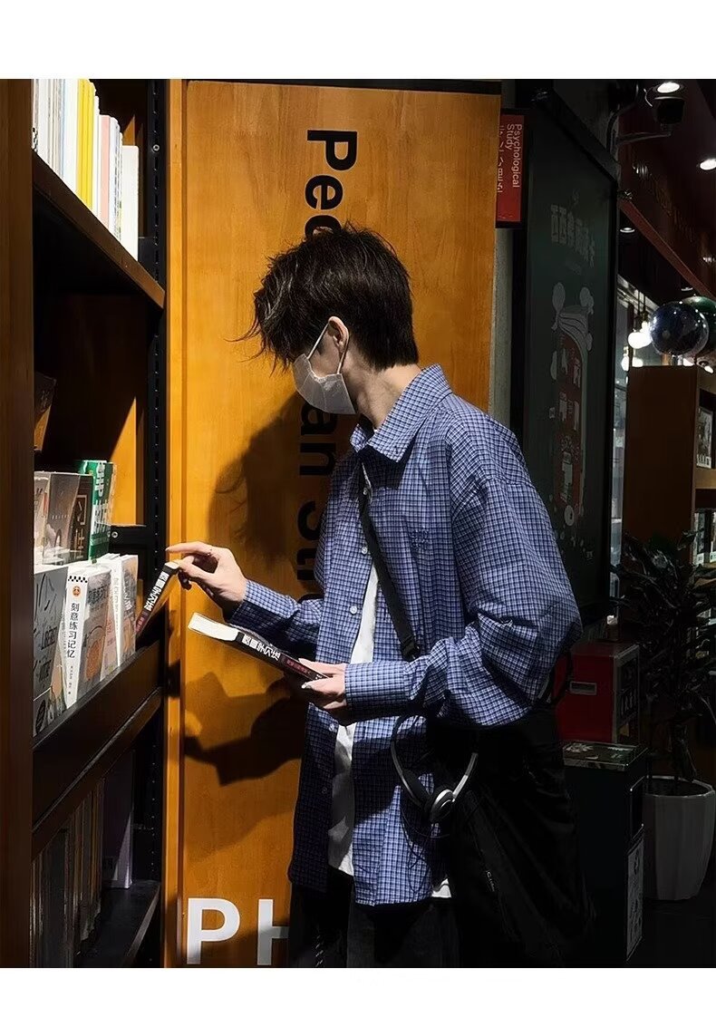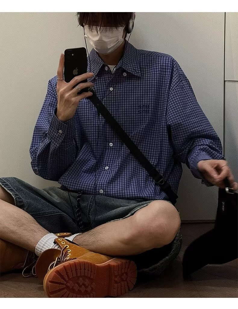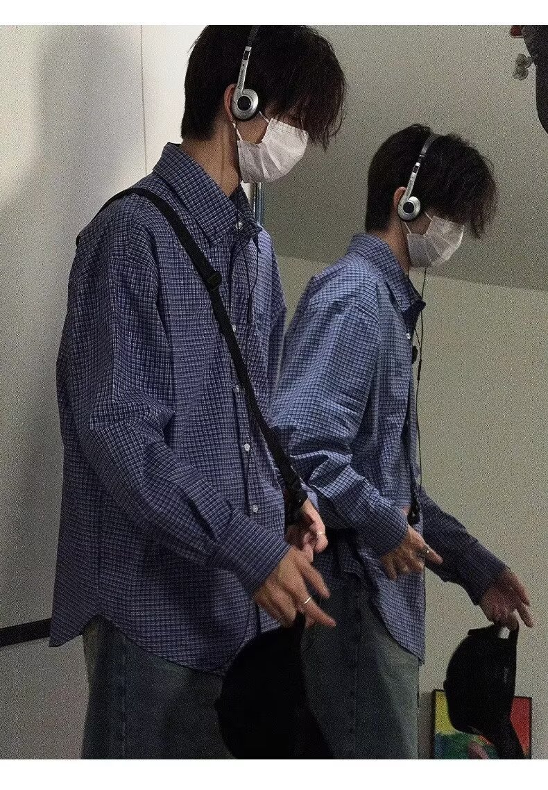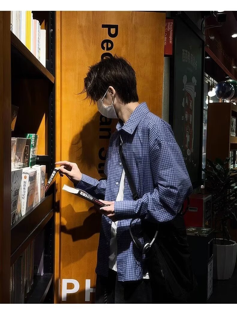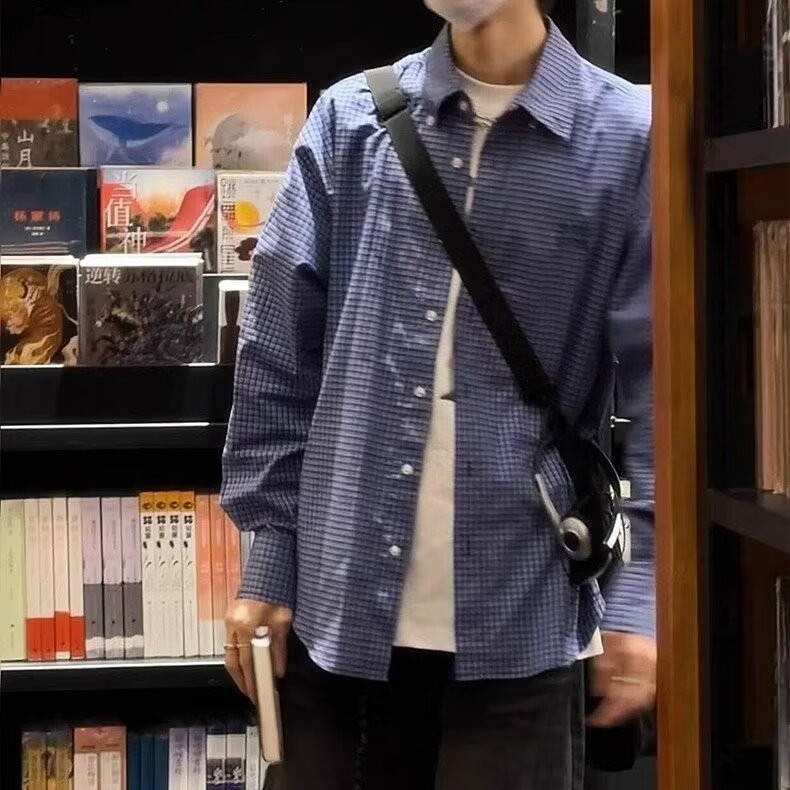 국경 간 미국 레트로 하이 엔드 센스 고급 긴팔 셔츠 남자 루즈 캐주얼 올 매치 체크 셔츠 재킷 대외 무역스토어 가기