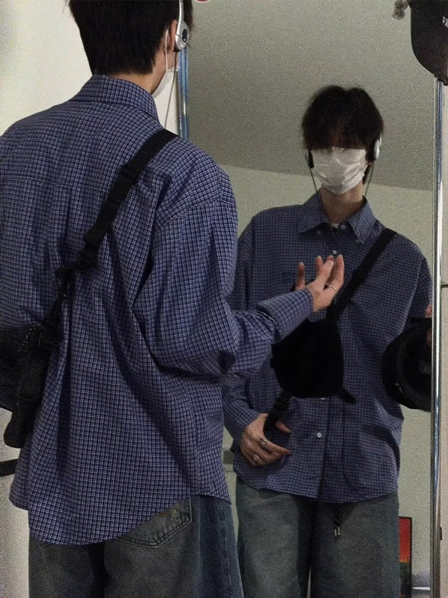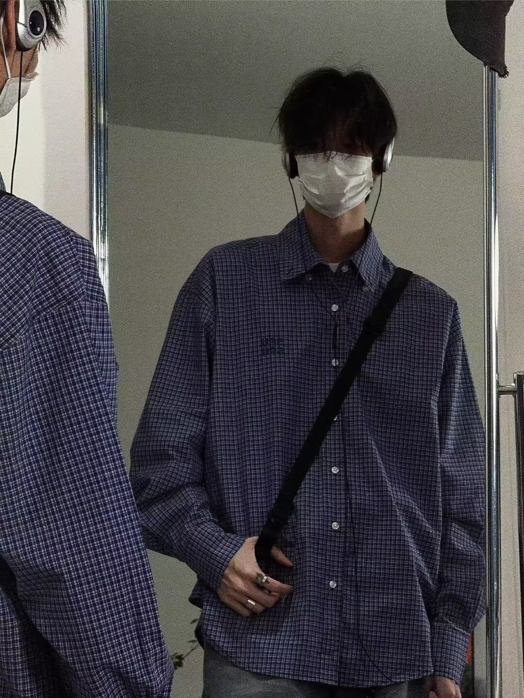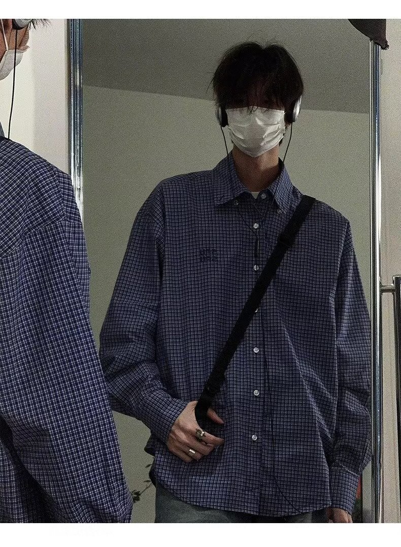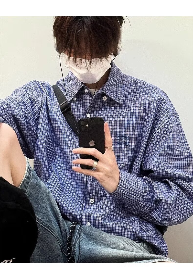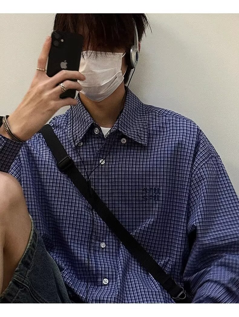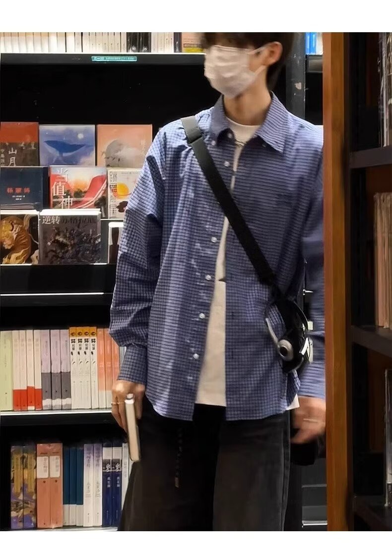 국경 간 미국 레트로 하이 엔드 센스 고급 긴팔 셔츠 남자 루즈 캐주얼 올 매치 체크 셔츠 재킷 대외 무역스토어 가기