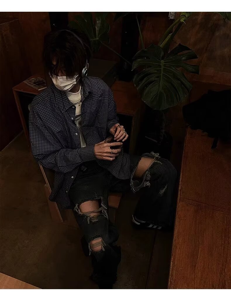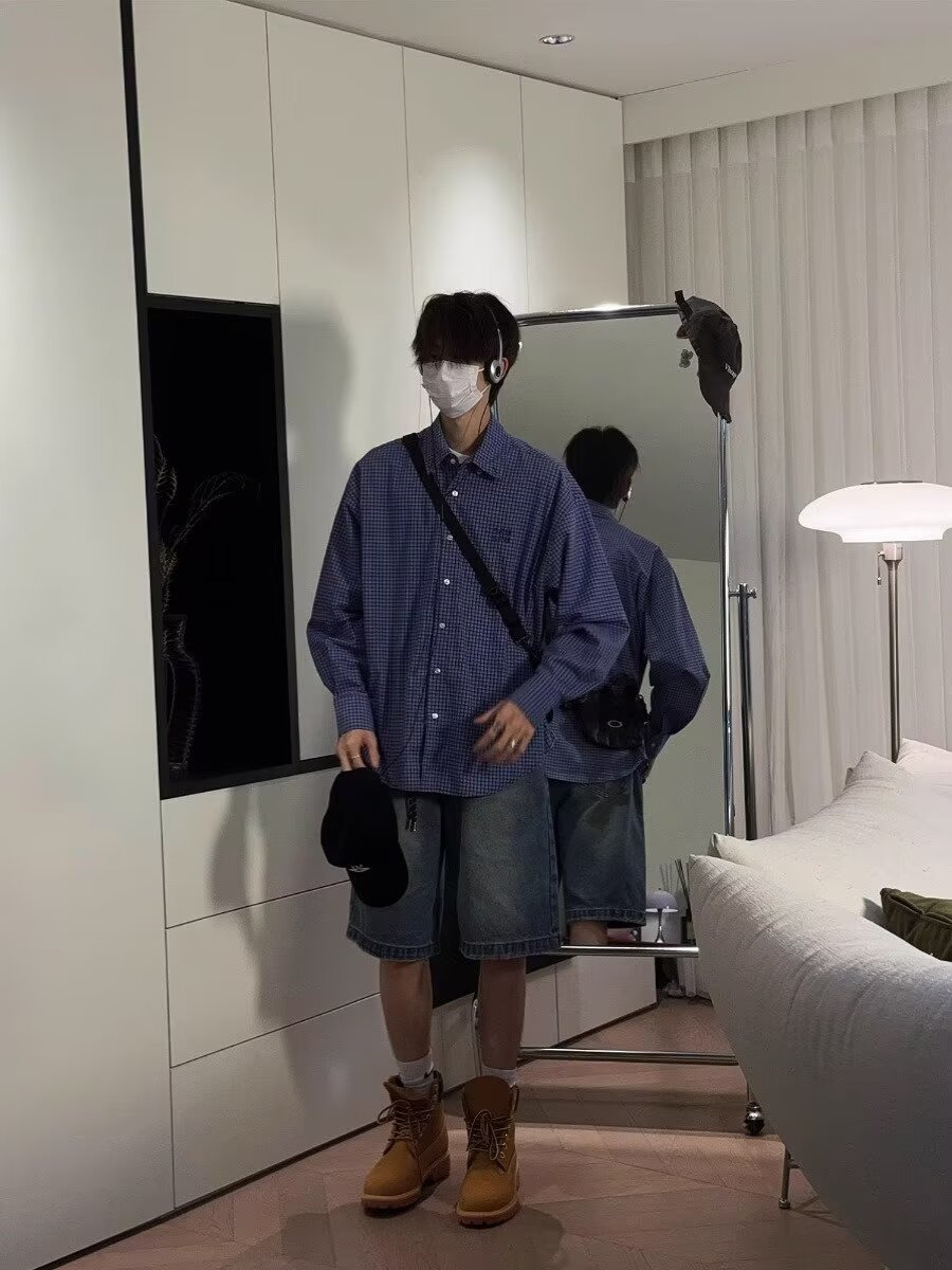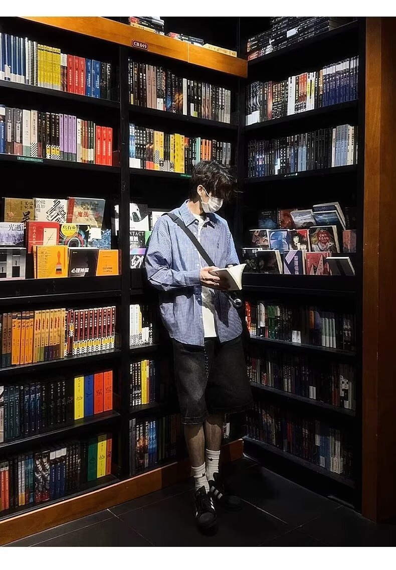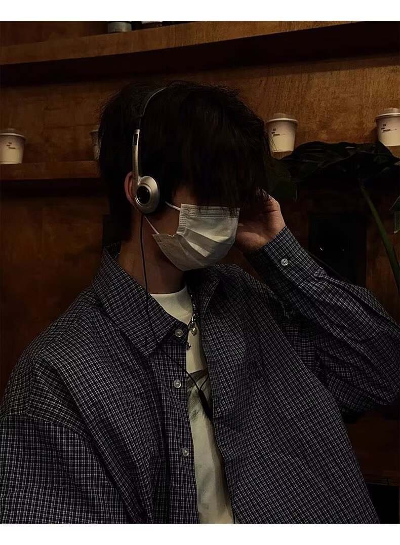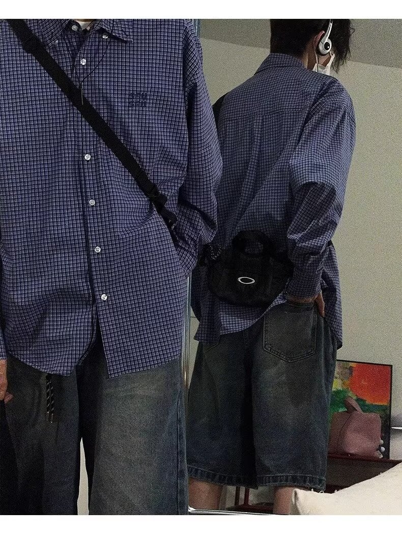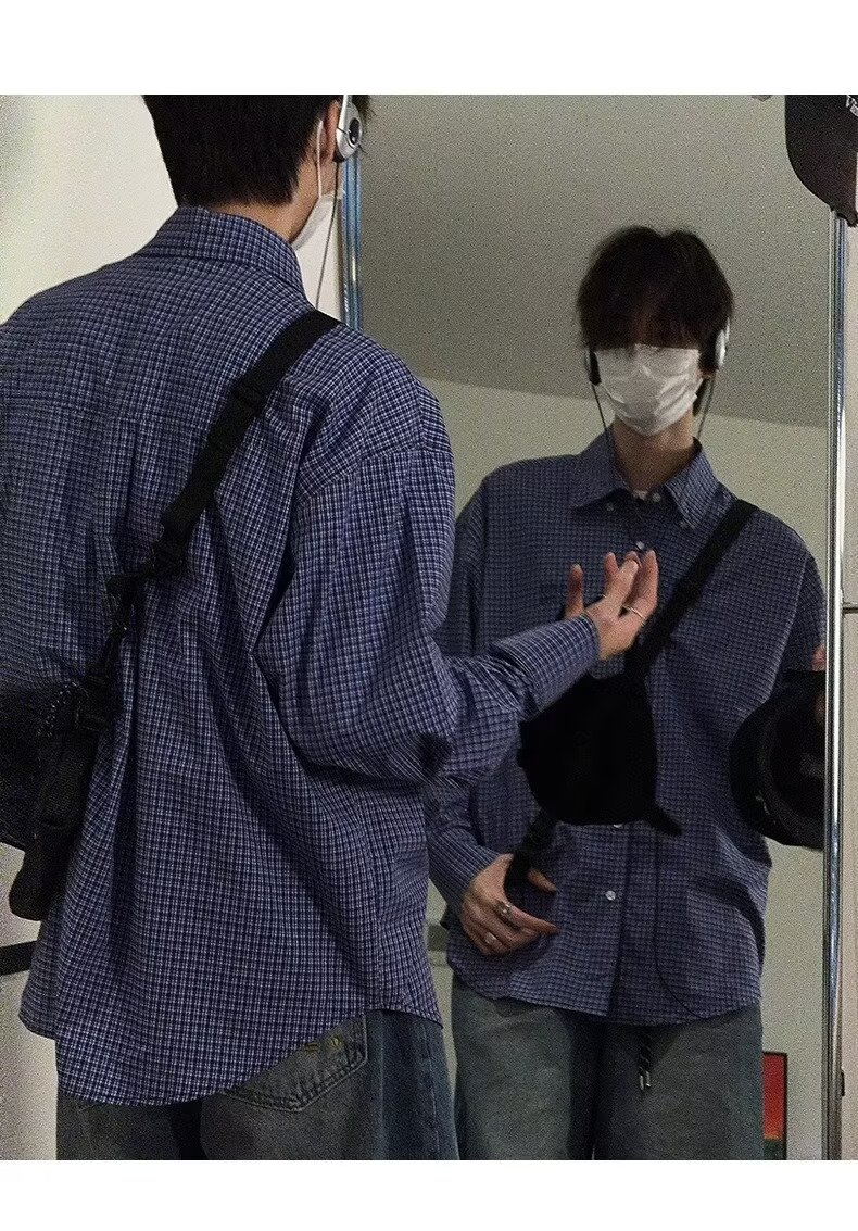 국경 간 미국 레트로 하이 엔드 센스 고급 긴팔 셔츠 남자 루즈 캐주얼 올 매치 체크 셔츠 재킷 대외 무역스토어 가기