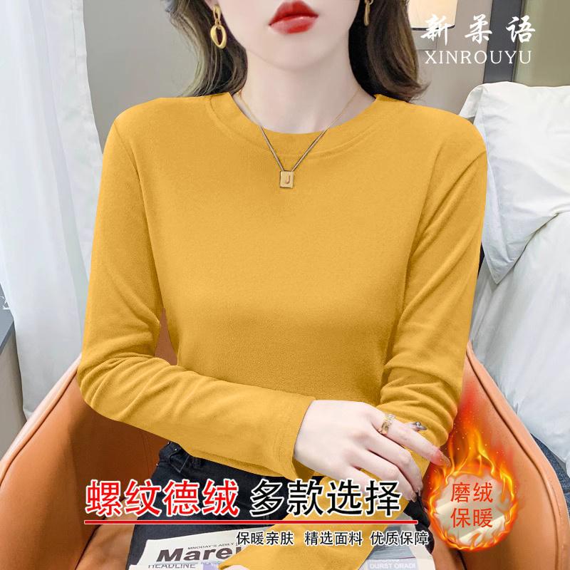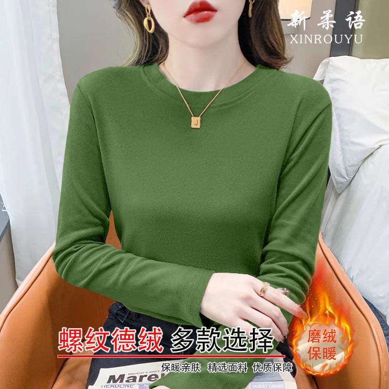 드 벨벳 크루 넥베이스 셔츠 서양식 봄과 가을 새로운 기본 피부 친화적 인 탄성 슬림 핏 여성용 내부 긴팔 티셔츠