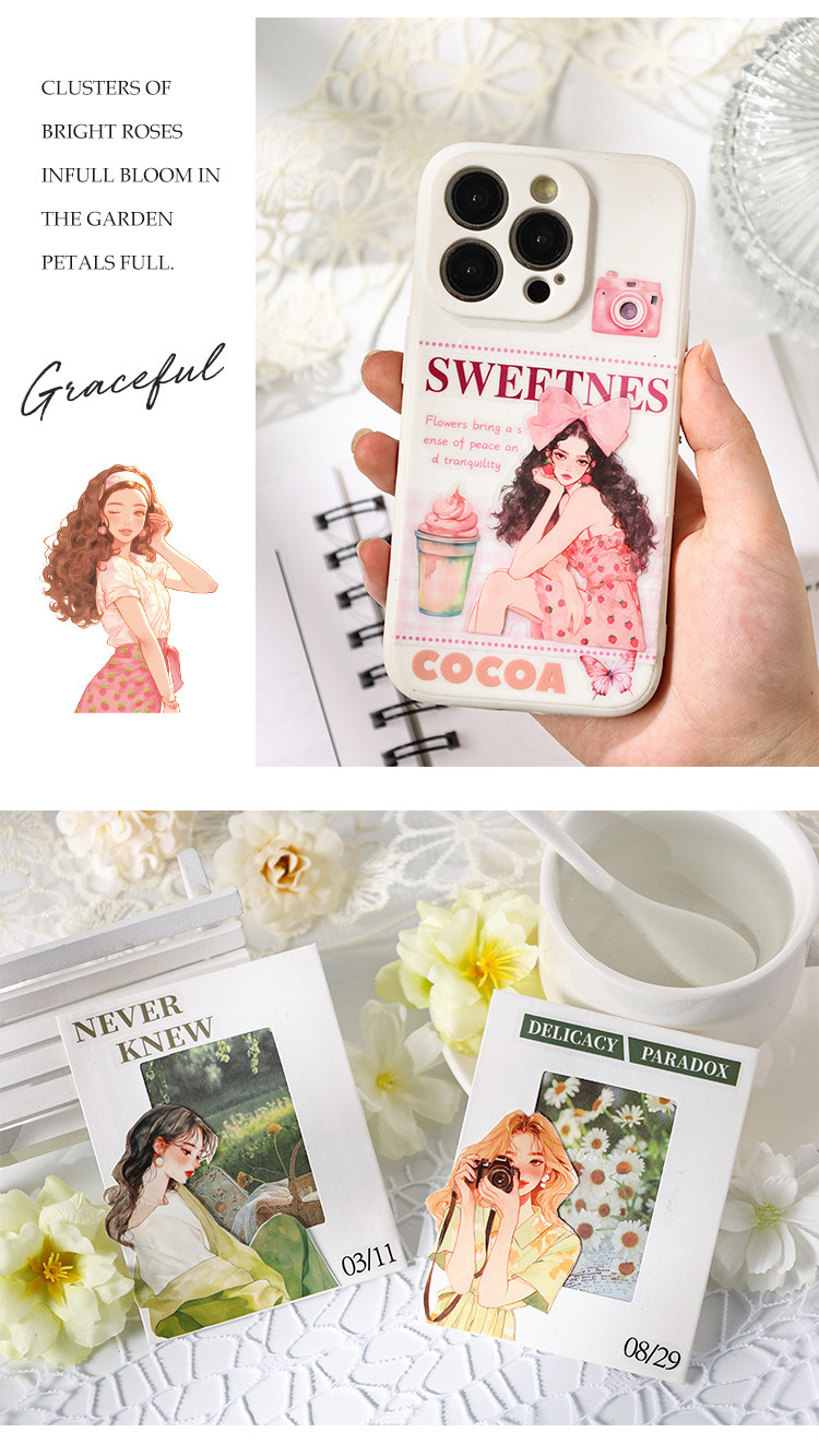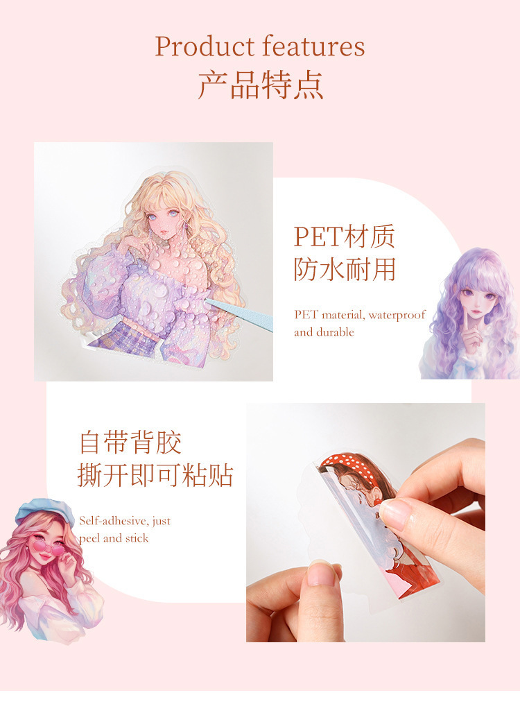 샴페인 Qimeng 시리즈 방수 PET 스티커 애니메이션 만화 캐릭터 스티커 매일 DIY 손 계정 장식 재료 종이
