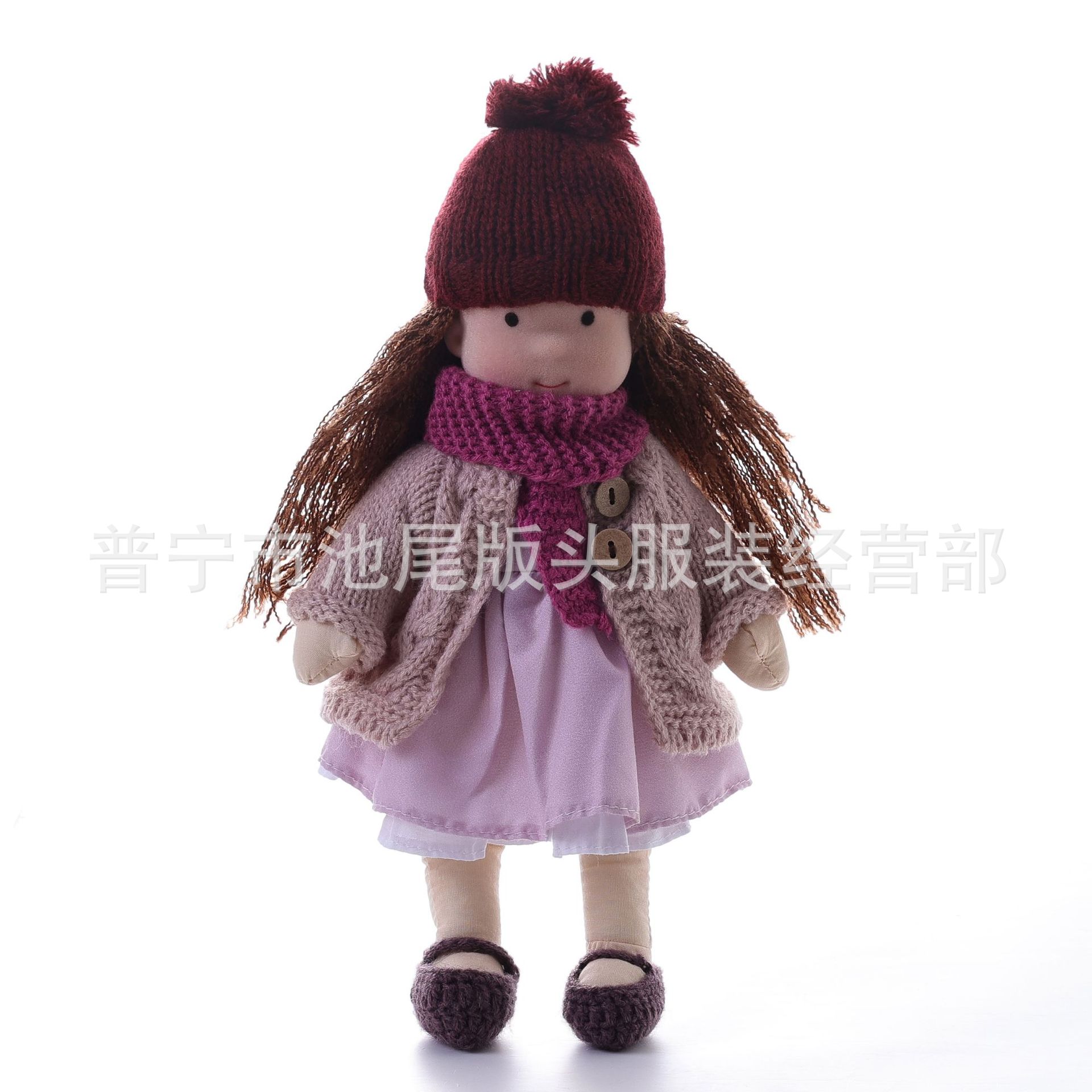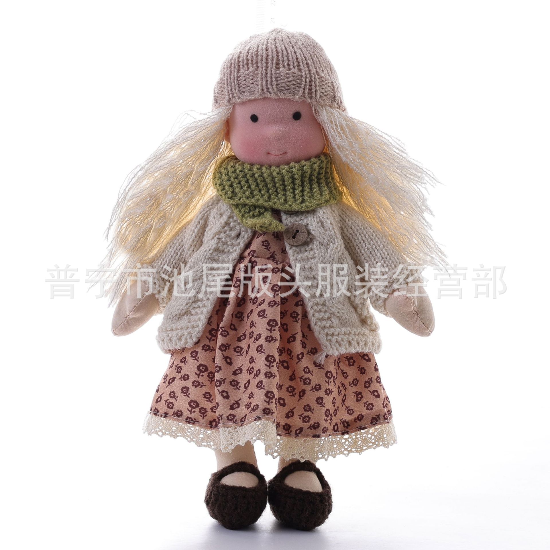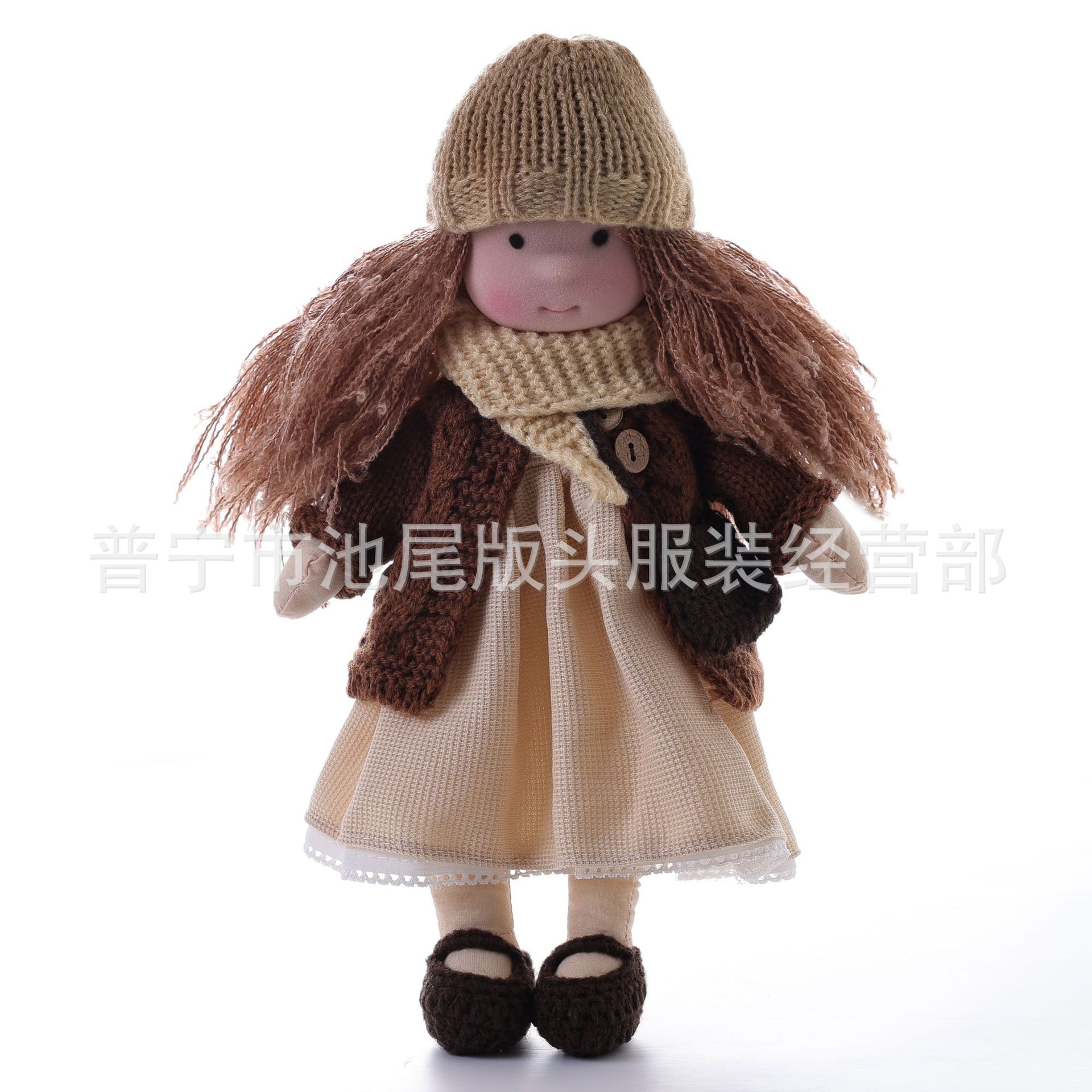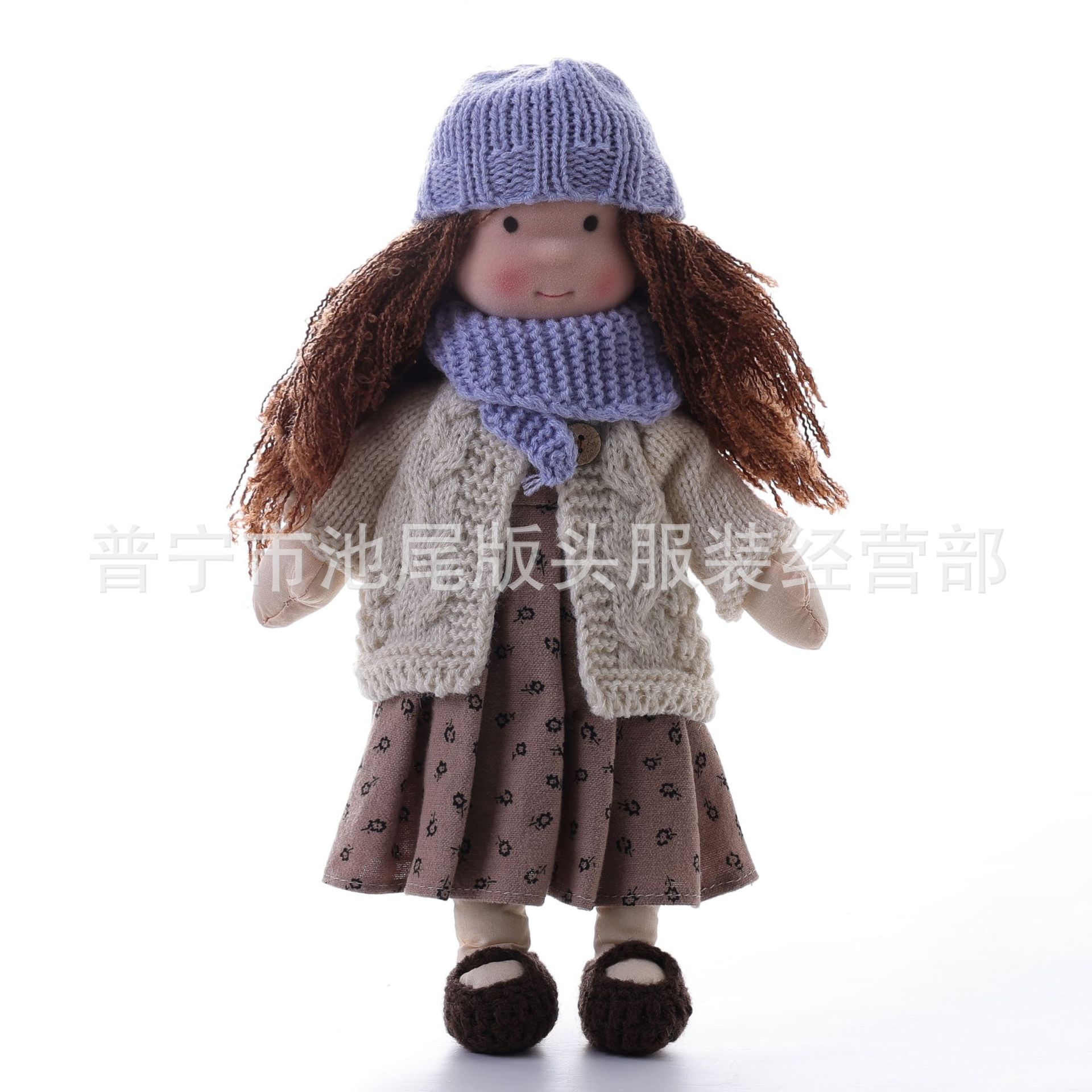 整个成品 (娃娃身子+裙子+头发+鞋子+围巾+开衫+帽子)