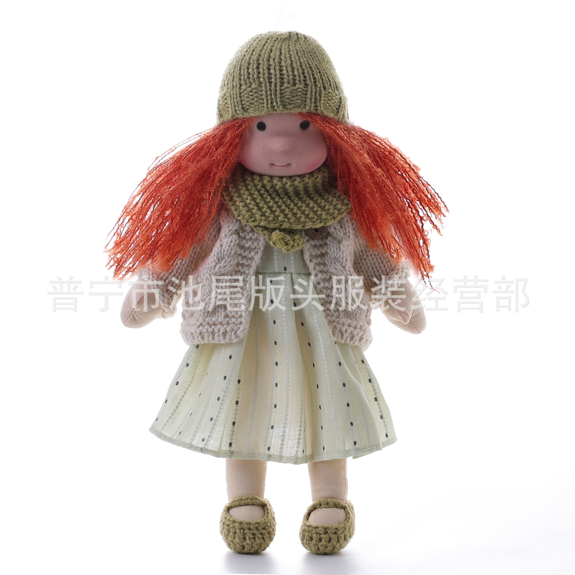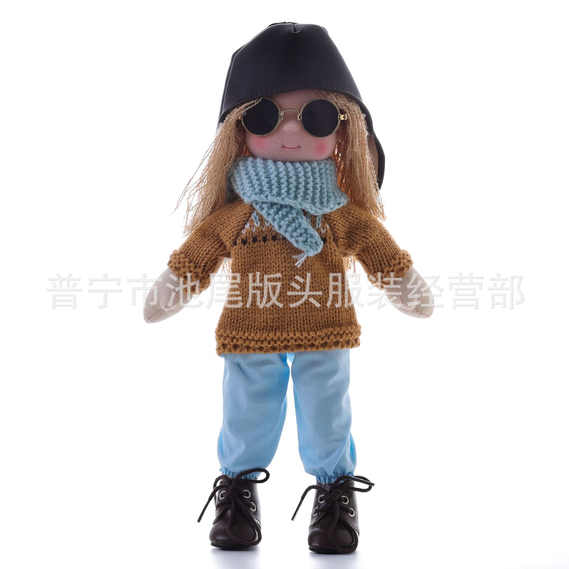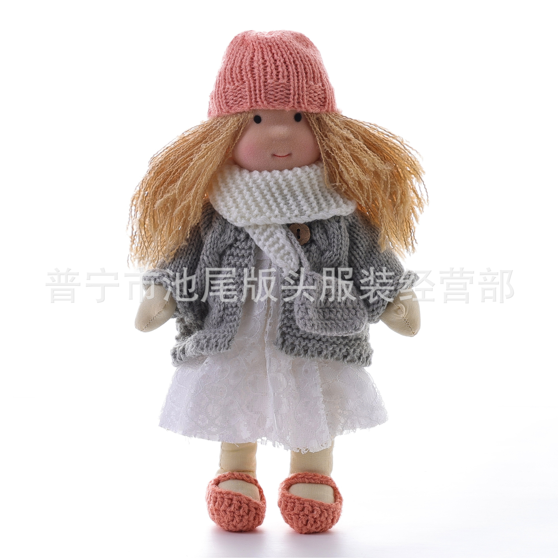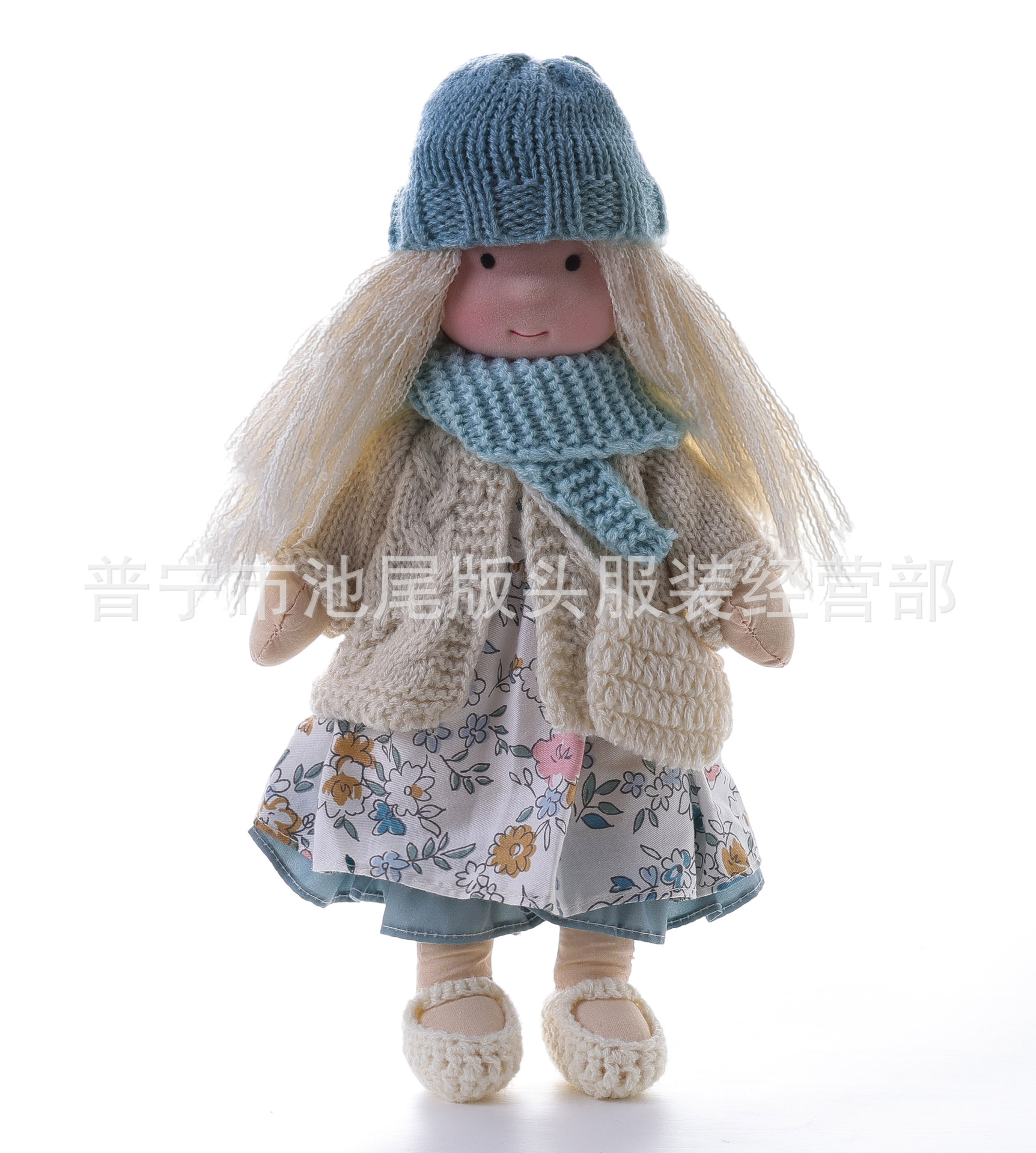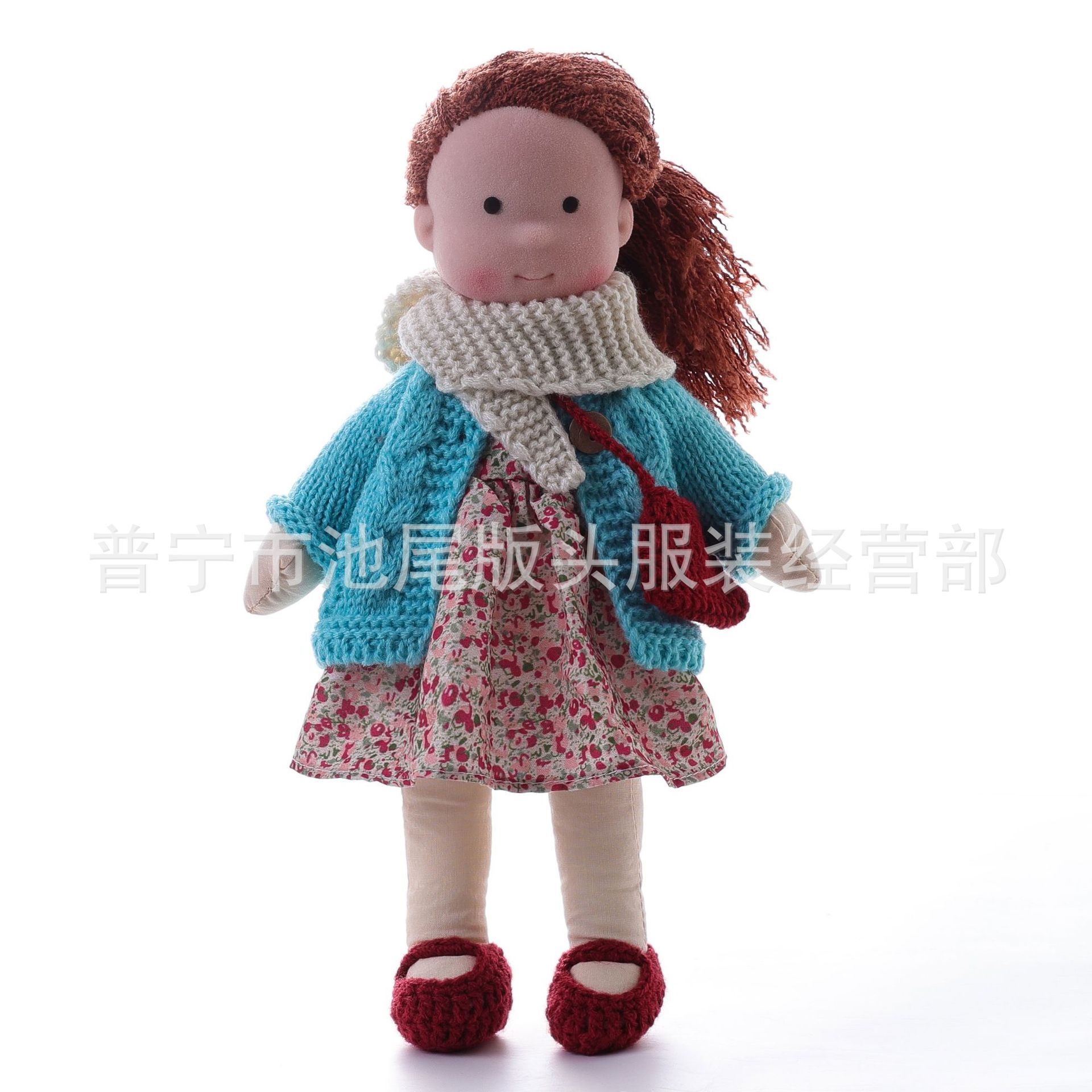 整个成品 (娃娃身子+裙子+头发+鞋子+围巾+开衫+帽子)