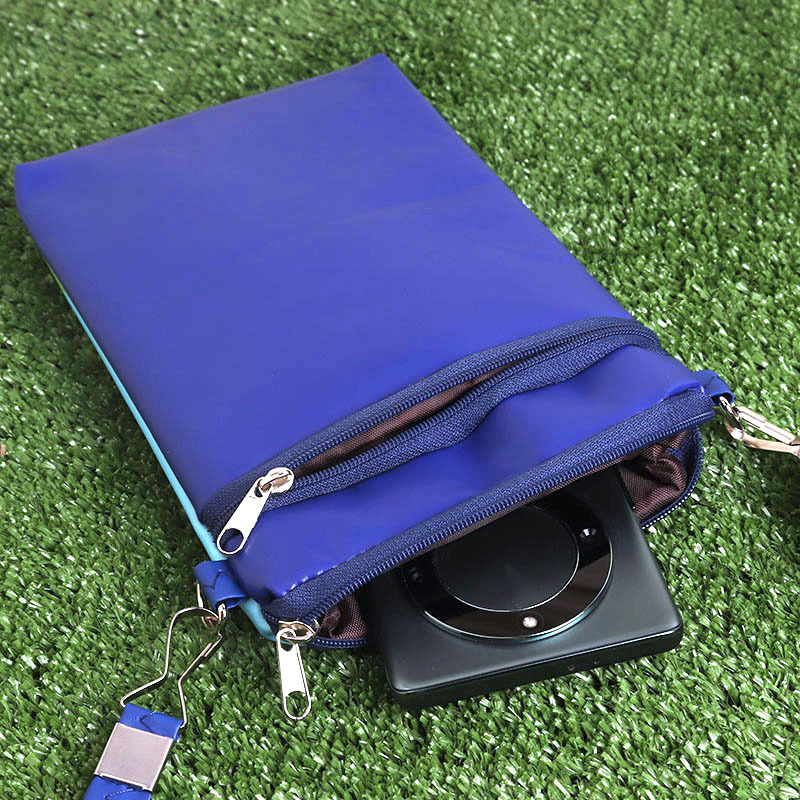• 더블 지퍼 크로스백을 메고 뛰어다니는 소녀