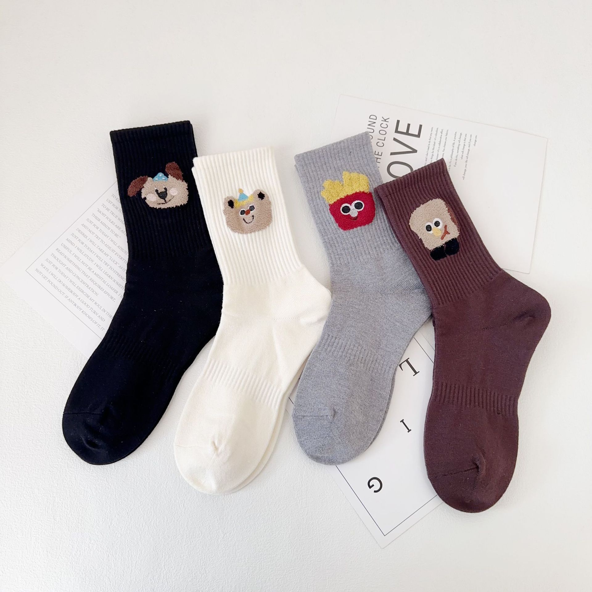 지네 코끼리 양말 여성의 겨울 새 만화 곰 자수 미드 튜브 양말 캐시미어 두꺼운 조개 양말 학생 따뜻한 벨벳 양말
