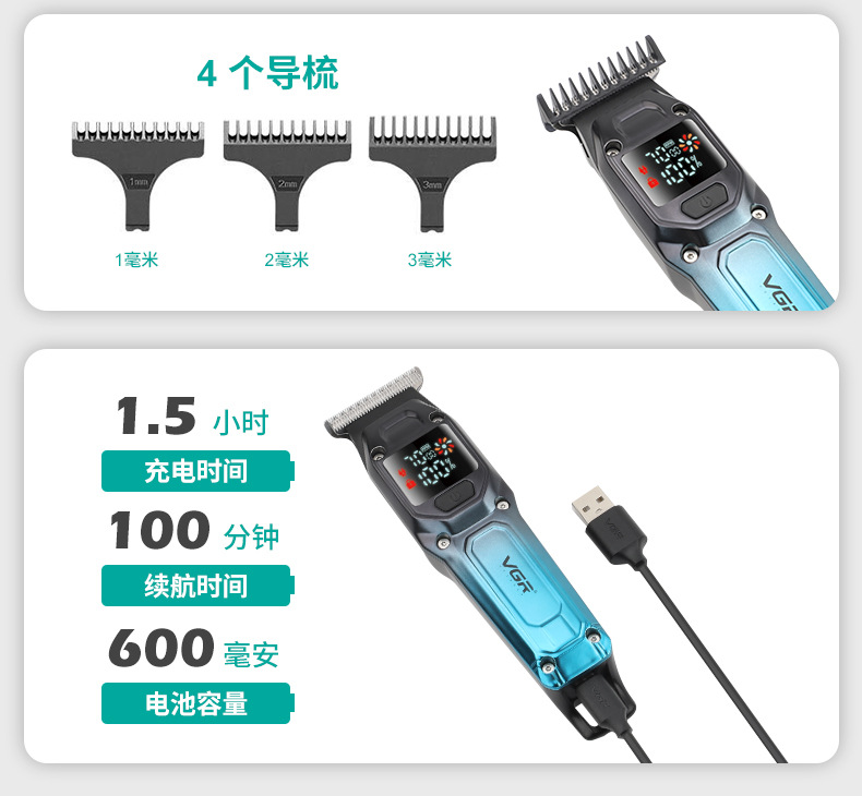VGR964 국경 전기 헤어 클리퍼 그라디언트 컬러 오일 헤드 조각 충전식 남성 디지털 디스플레이 전기 클리퍼