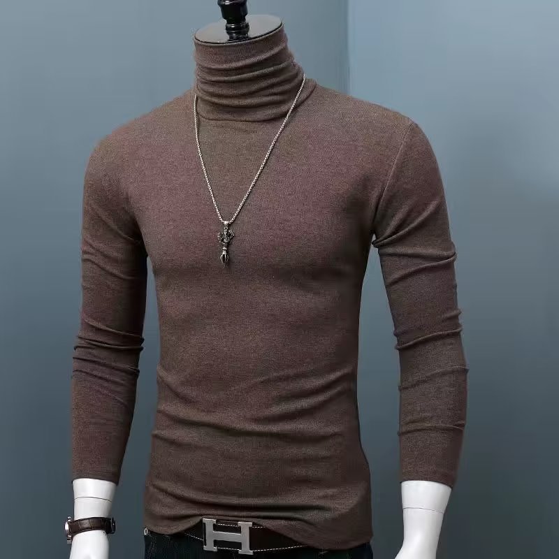 높은 칼라 긴 소매 내부 남성베이스 셔츠 슬림 핏 티셔츠 간단한 가을과 겨울 단색 플러스 사이즈 따뜻한 가을 패션 브랜드스토어 가기