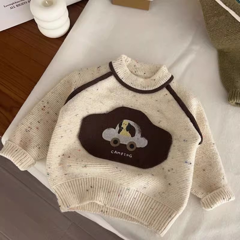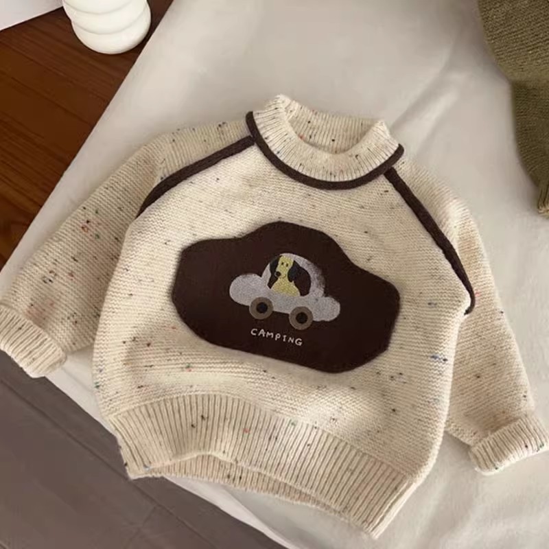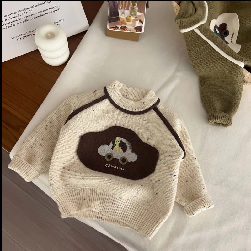 2026 가을 겨울 신상 아동용 스웨터 풀오버 만화 강아지 자동차 니트 따뜻한 남아용 스웨터 드롭쉬핑