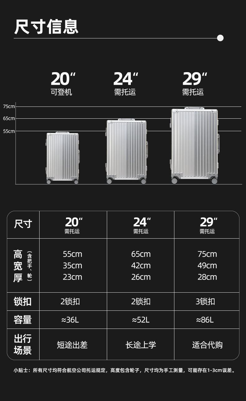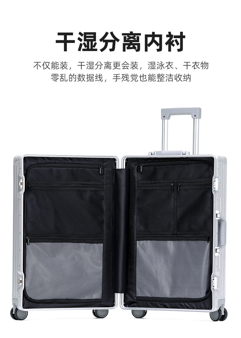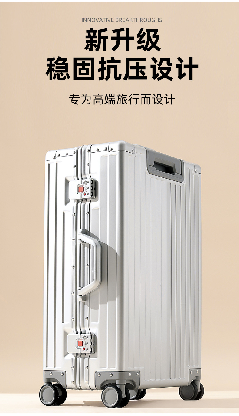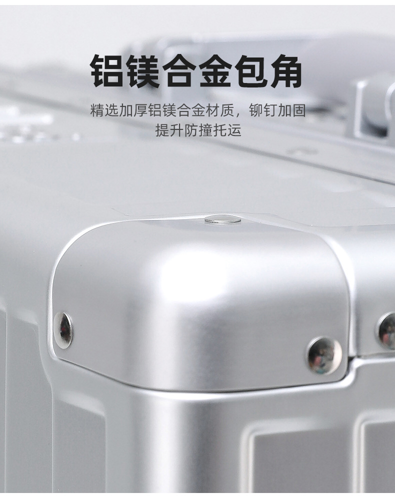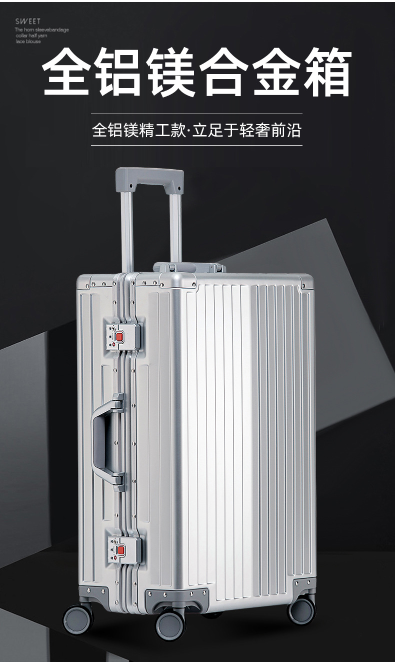 전체 마그네슘 알루미늄 합금 수하물 케이스 20 탑승 케이스 알루미늄 프레임 트롤리 케이스 여행 가방 휴대용 내구성 대용량