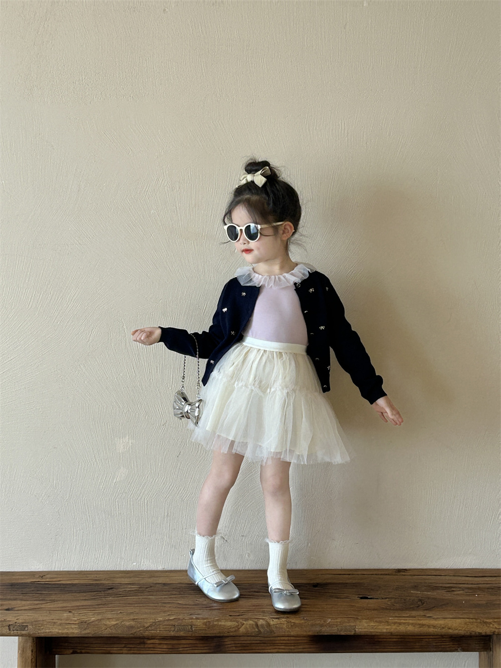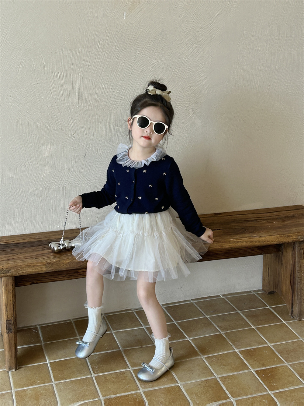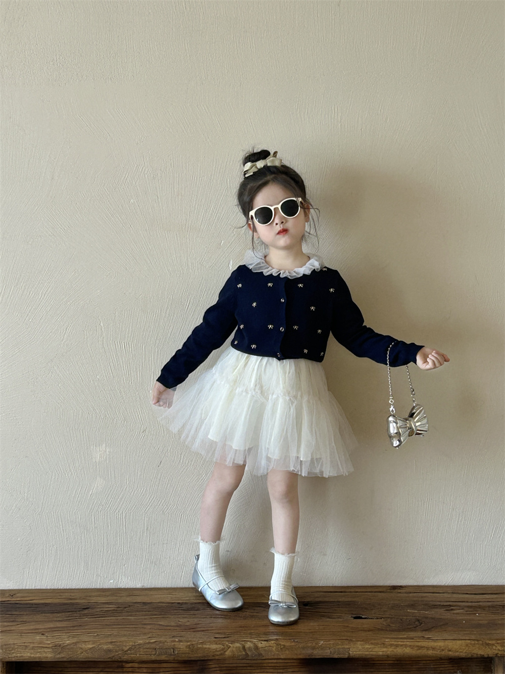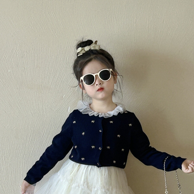 반품/교환 불가~ 여아용 봄 신상 리본 스웨터 가디건, 스팽글 메쉬 패치워크 티셔츠, 싱글 라인 메쉬 스커트스토어 가기